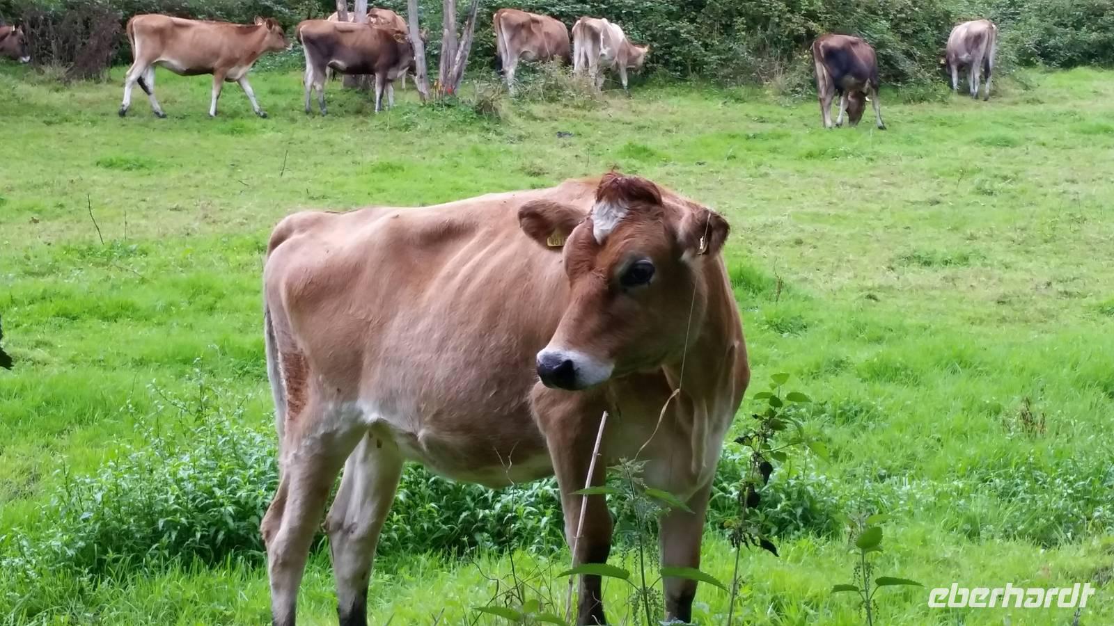 St. Helier und weiter durch das grüne Tal Vallee des Vaux immer nach Norden. Unterwegs haben wir endlich die Chance die charmanten Jersey-Kühe mit ihren langen Wimpern aus der Nähe zu begutachten. Noch am Vormittag erreichen wir das „Hamptonne Country Life Museum" ein Gut dessen Anfänge in das 16 Jh. zurück reichen. Bei einer englischen Führung tauchen wir ein in das Landleben der vergangenen Jahrhunderte, wir lernen wie man den typischen Cider (Apfelbier) herstellte, auch wie man die überall anzutreffenden Apfelpressen tatsächlich nutzte, wie sich der Alltag von Mann und Frau gestaltete und das die Menschen eigentlich alles hatten, was sie tatsächlich benötigten. Die wichtigste Erkenntnis des Tages würde wohl sein, wir möchten alle eine „Toilettenpapier-Pflanze" haben, wofür benötigt man „4-lagiges", wenn man diese Pflanze haben kann! Ein Königreich für diese...