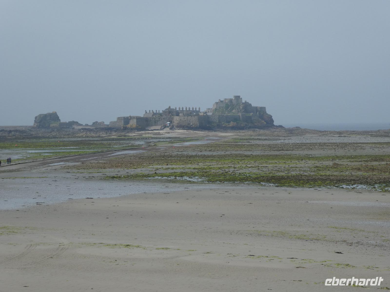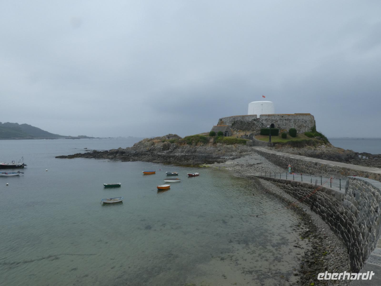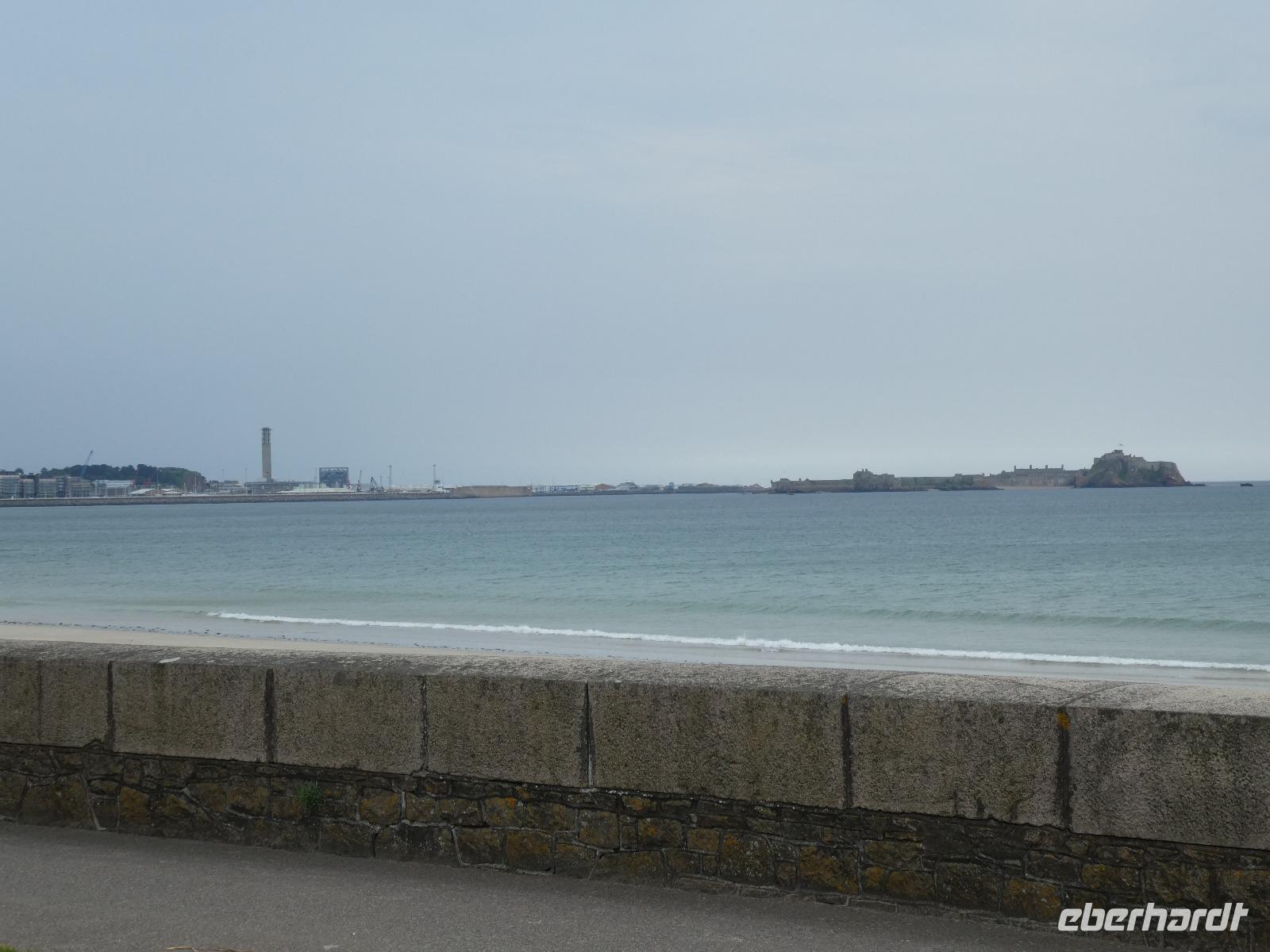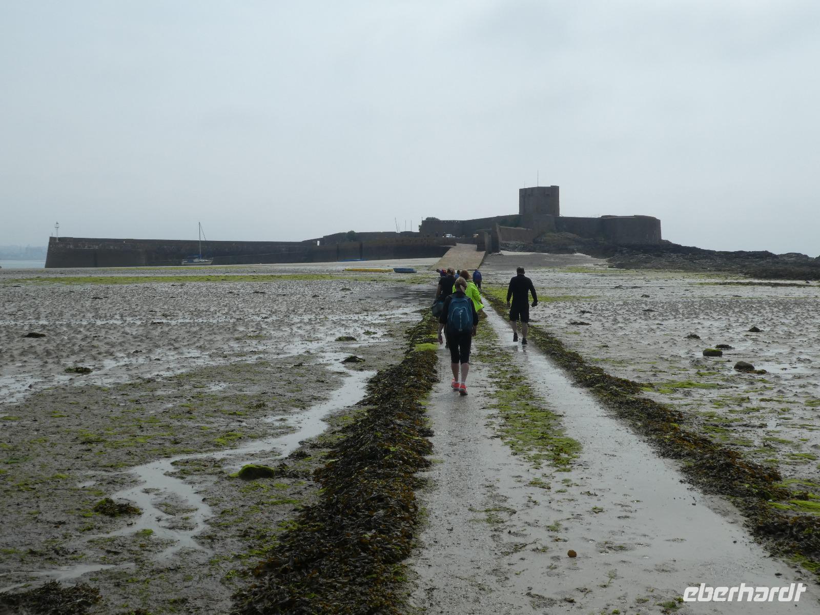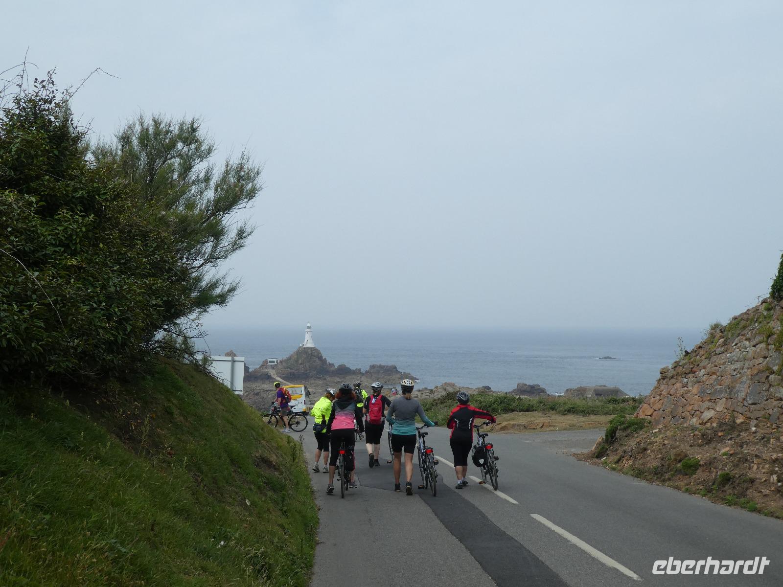 Vom Hotel ging es bei nebliger Sicht durch die Stadt entlang der Promenade nach St. Aubin. Wir hatten das Glück, dass aktuell Ebbe war. So konnten wir einen Spaziergang zum St. Aubin Fort machen. Auf dem Fahrrad wieder weiter ging es zur Südwestküste nach Le Grouet, wo wir den Leuchtturm La Corbiére besichtigten. Die Westküste weiter entlang mit einem Mittagsstopp bogen wir ab landeinwärts nach St. Mary. Als wir in St. Mary angekommen waren, ging es wieder Richtung St. Helier zu unserem Hotel.
