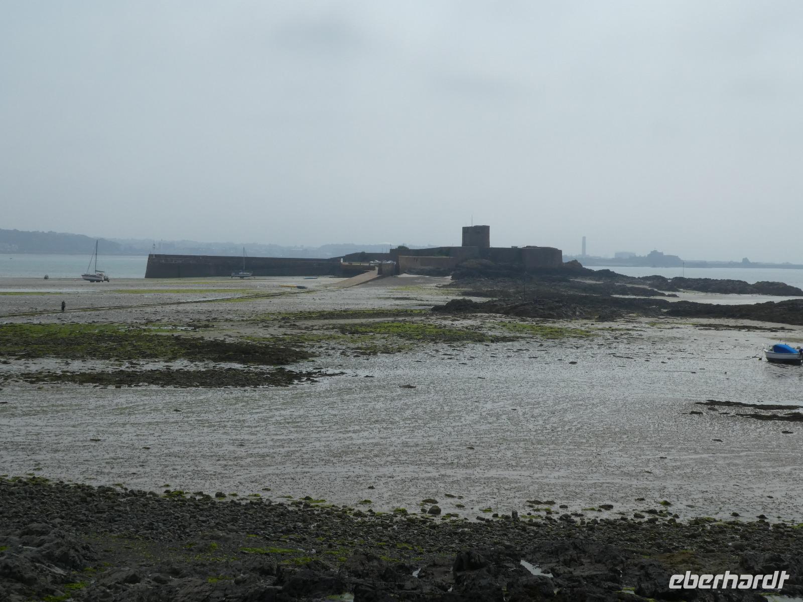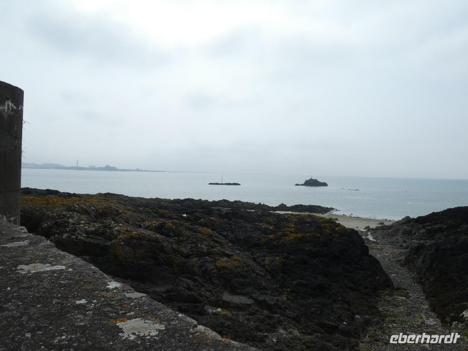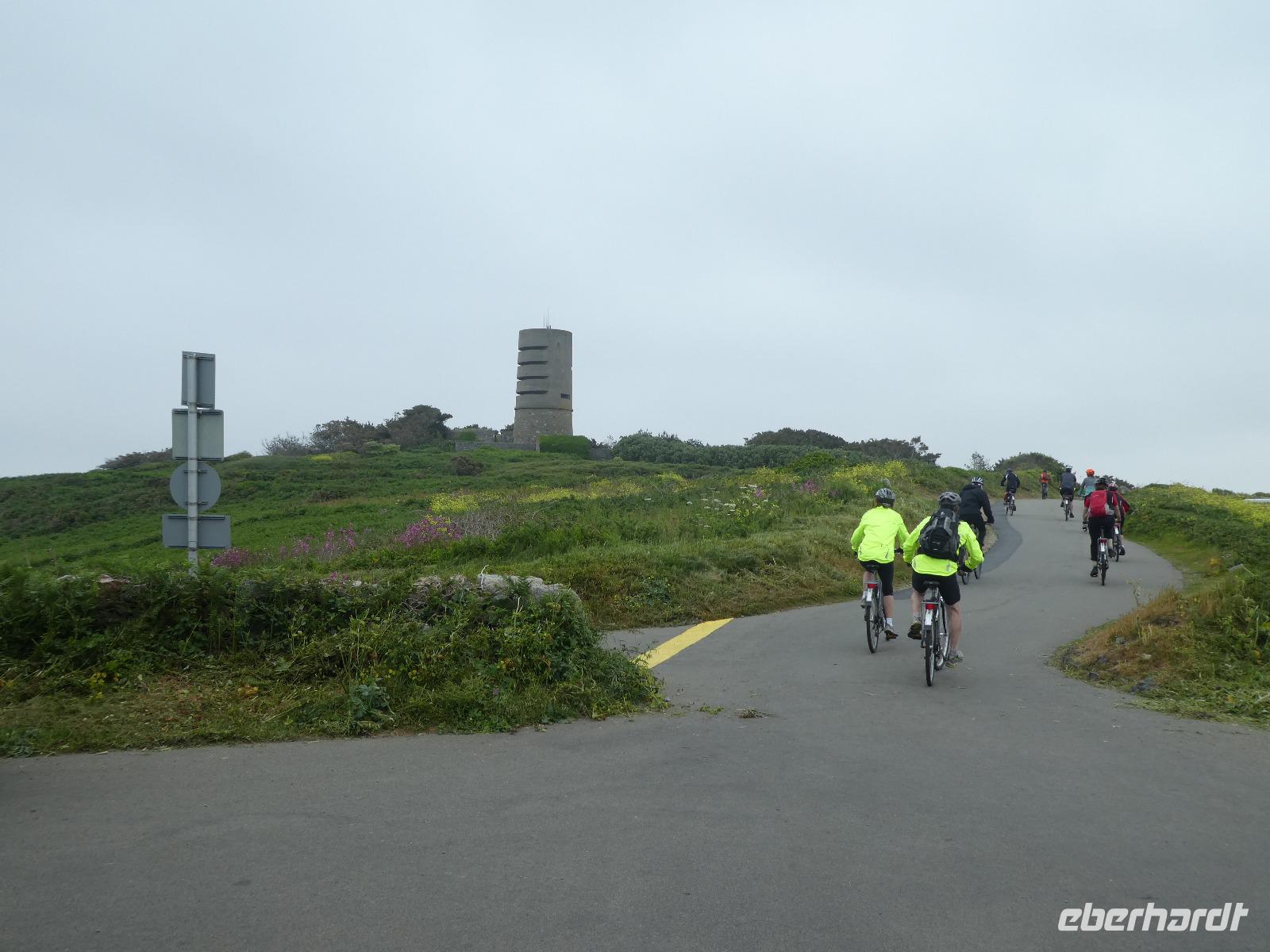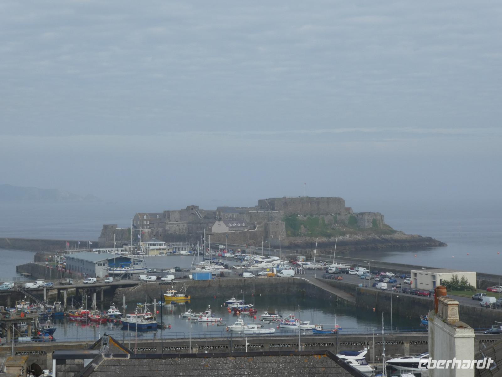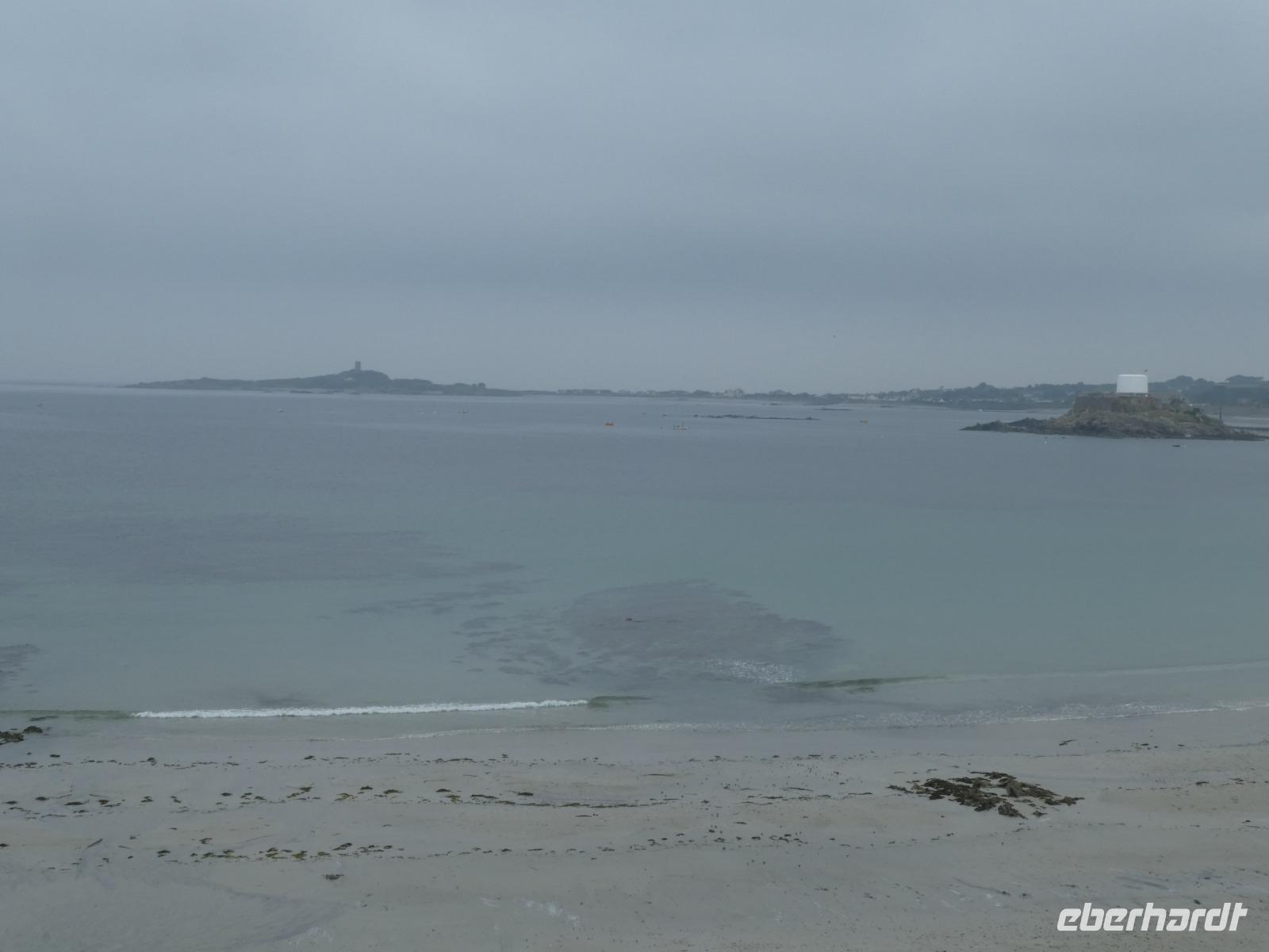 Vom Hotel ging es bei nebliger Sicht durch die Stadt entlang der Promenade nach St. Aubin. Wir hatten das Glück, dass aktuell Ebbe war. So konnten wir einen Spaziergang zum St. Aubin Fort machen. Auf dem Fahrrad wieder weiter ging es zur Südwestküste nach Le Grouet, wo wir den Leuchtturm La Corbiére besichtigten. Die Westküste weiter entlang mit einem Mittagsstopp bogen wir ab landeinwärts nach St. Mary. Als wir in St. Mary angekommen waren, ging es wieder Richtung St. Helier zu unserem Hotel.