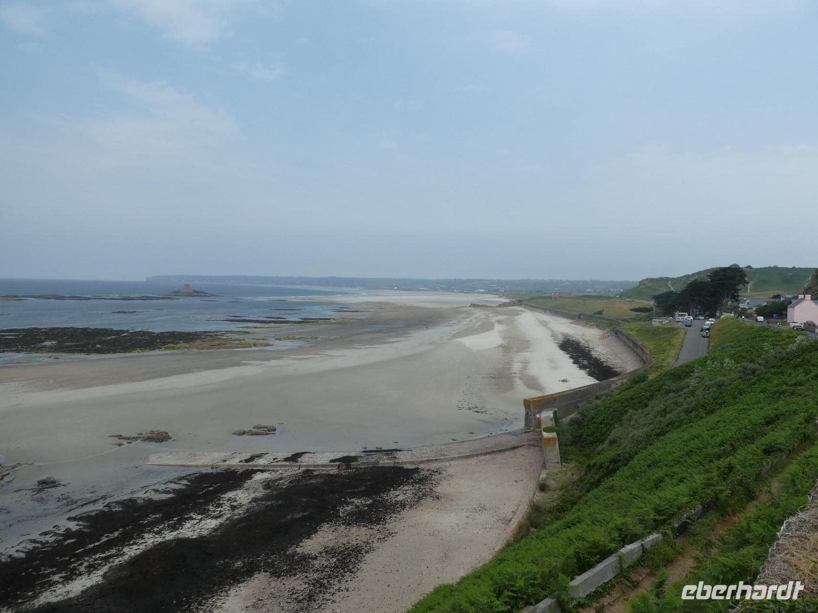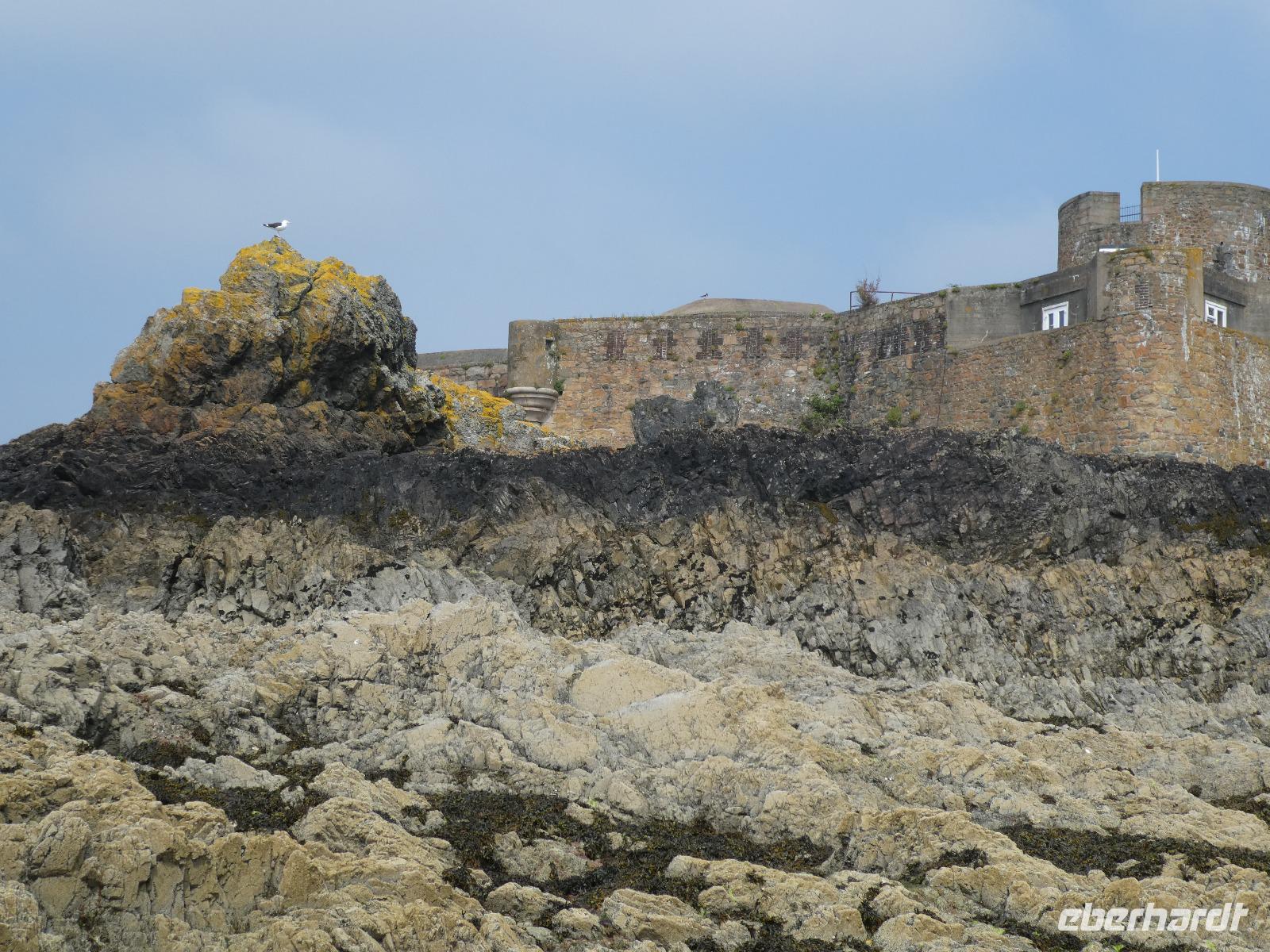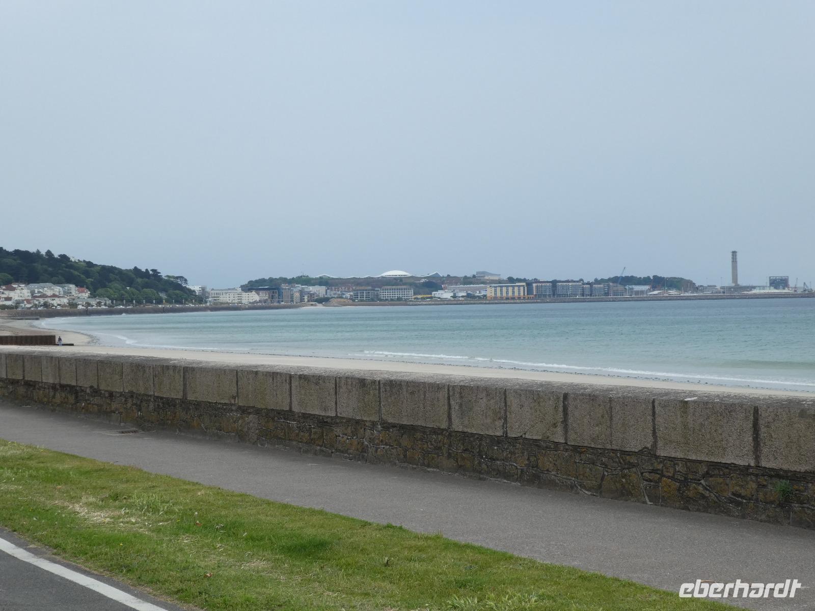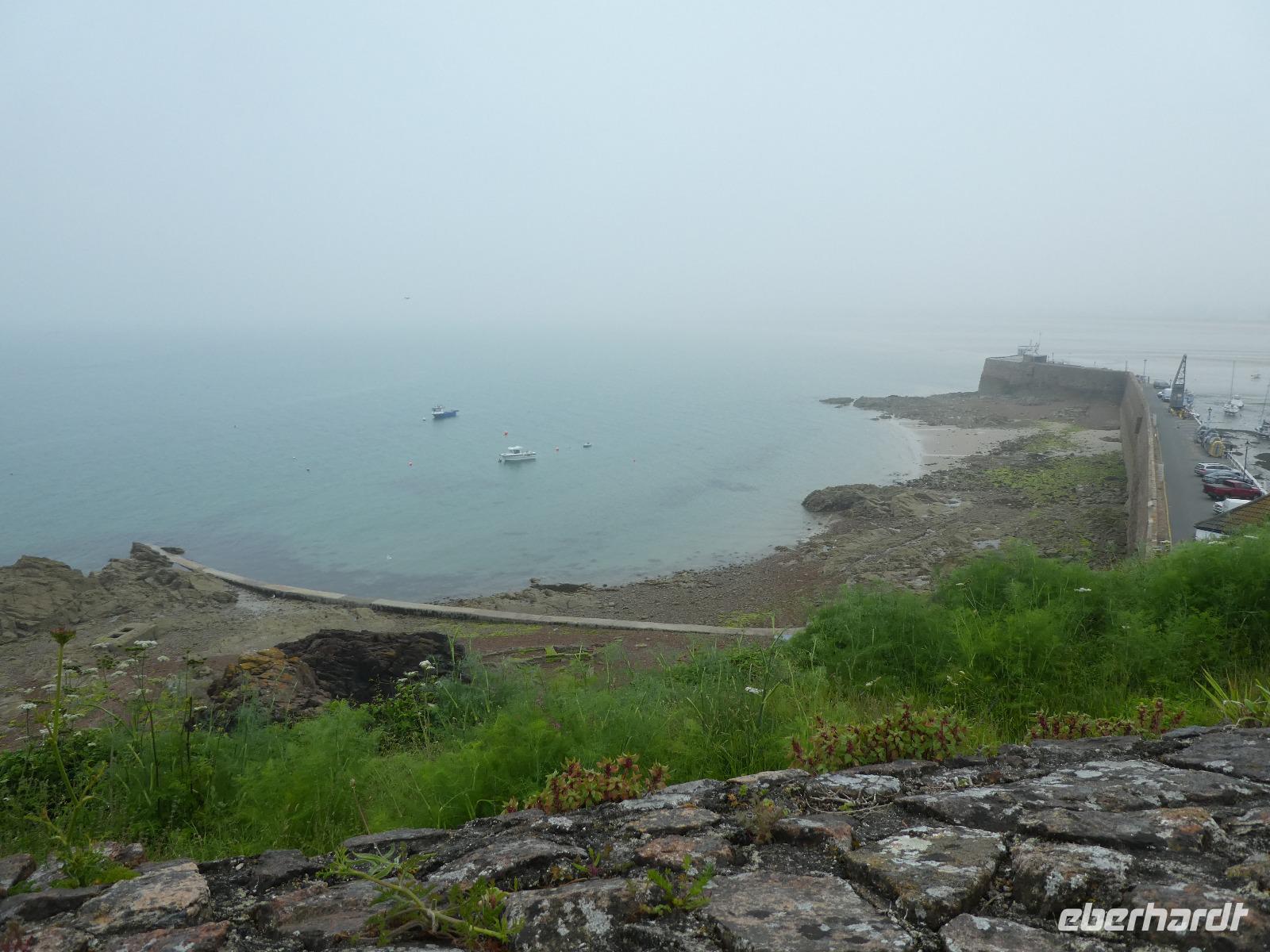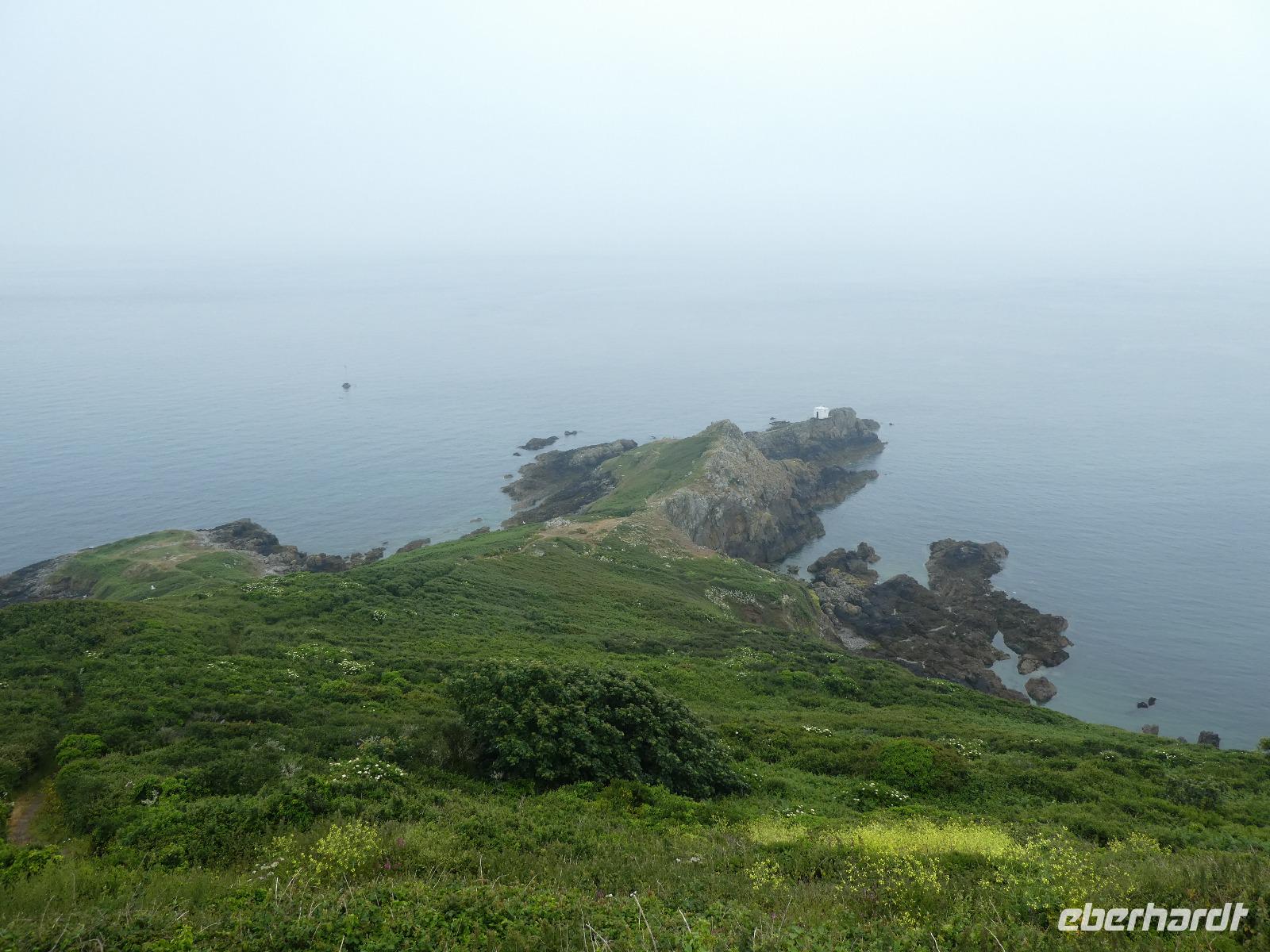 Vom Hotel ging es bei nebliger Sicht durch die Stadt entlang der Promenade nach St. Aubin. Wir hatten das Glück, dass aktuell Ebbe war. So konnten wir einen Spaziergang zum St. Aubin Fort machen. Auf dem Fahrrad wieder weiter ging es zur Südwestküste nach Le Grouet, wo wir den Leuchtturm La Corbiére besichtigten. Die Westküste weiter entlang mit einem Mittagsstopp bogen wir ab landeinwärts nach St. Mary. Als wir in St. Mary angekommen waren, ging es wieder Richtung St. Helier zu unserem Hotel.