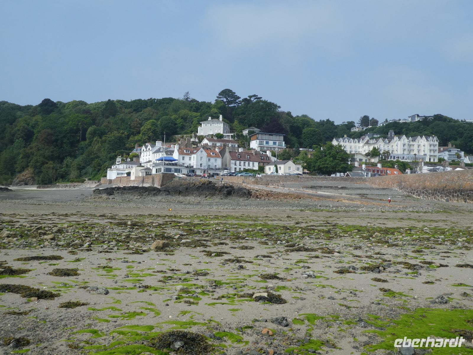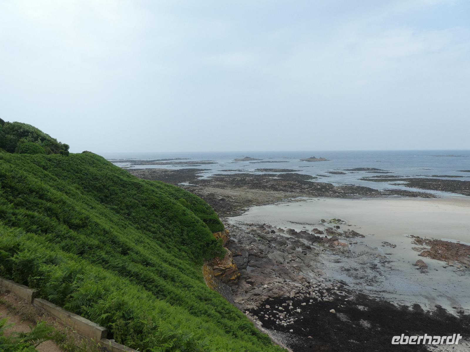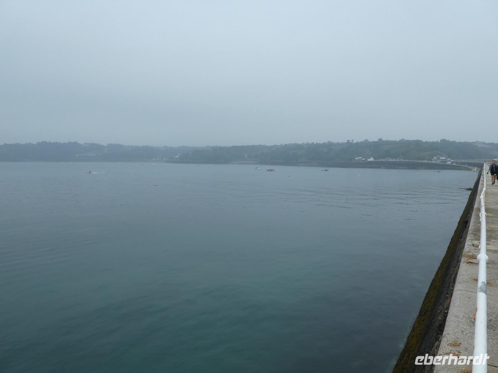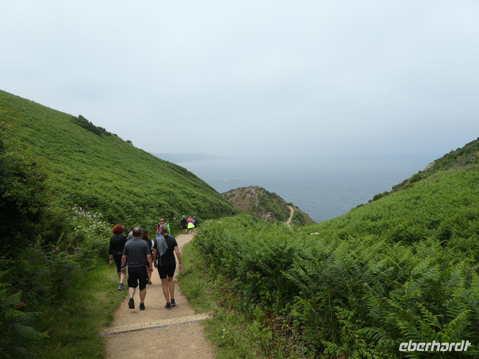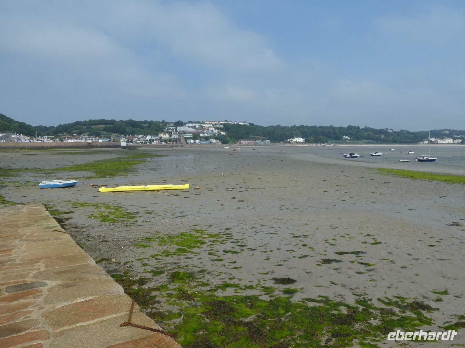 Vom Hotel ging es bei nebliger Sicht durch die Stadt entlang der Promenade nach St. Aubin. Wir hatten das Glück, dass aktuell Ebbe war. So konnten wir einen Spaziergang zum St. Aubin Fort machen. Auf dem Fahrrad wieder weiter ging es zur Südwestküste nach Le Grouet, wo wir den Leuchtturm La Corbiére besichtigten. Die Westküste weiter entlang mit einem Mittagsstopp bogen wir ab landeinwärts nach St. Mary. Als wir in St. Mary angekommen waren, ging es wieder Richtung St. Helier zu unserem Hotel.