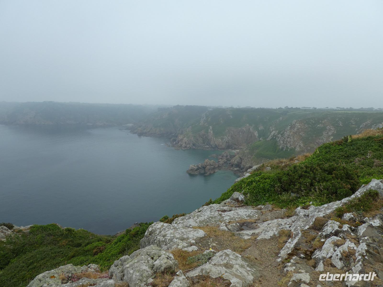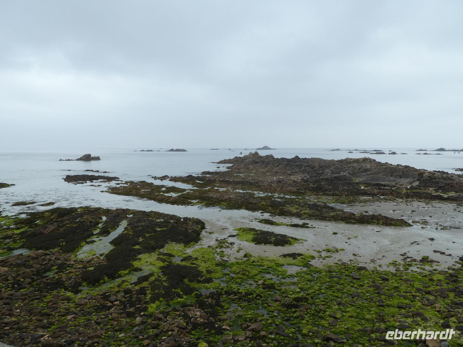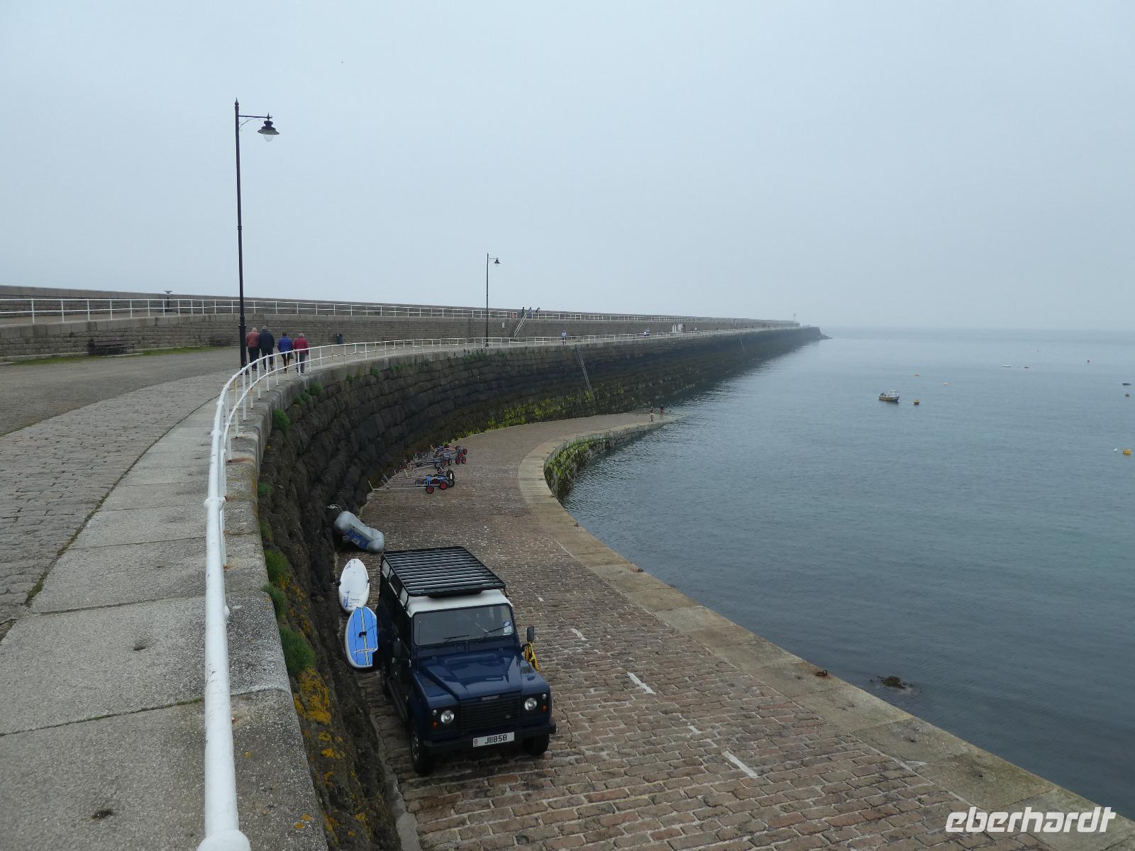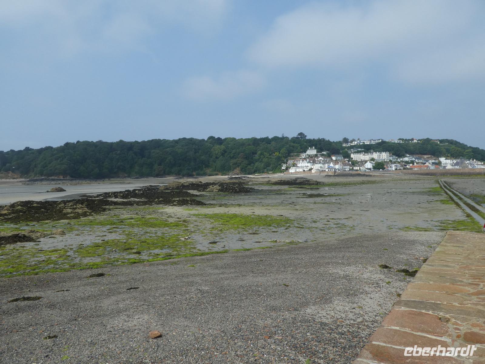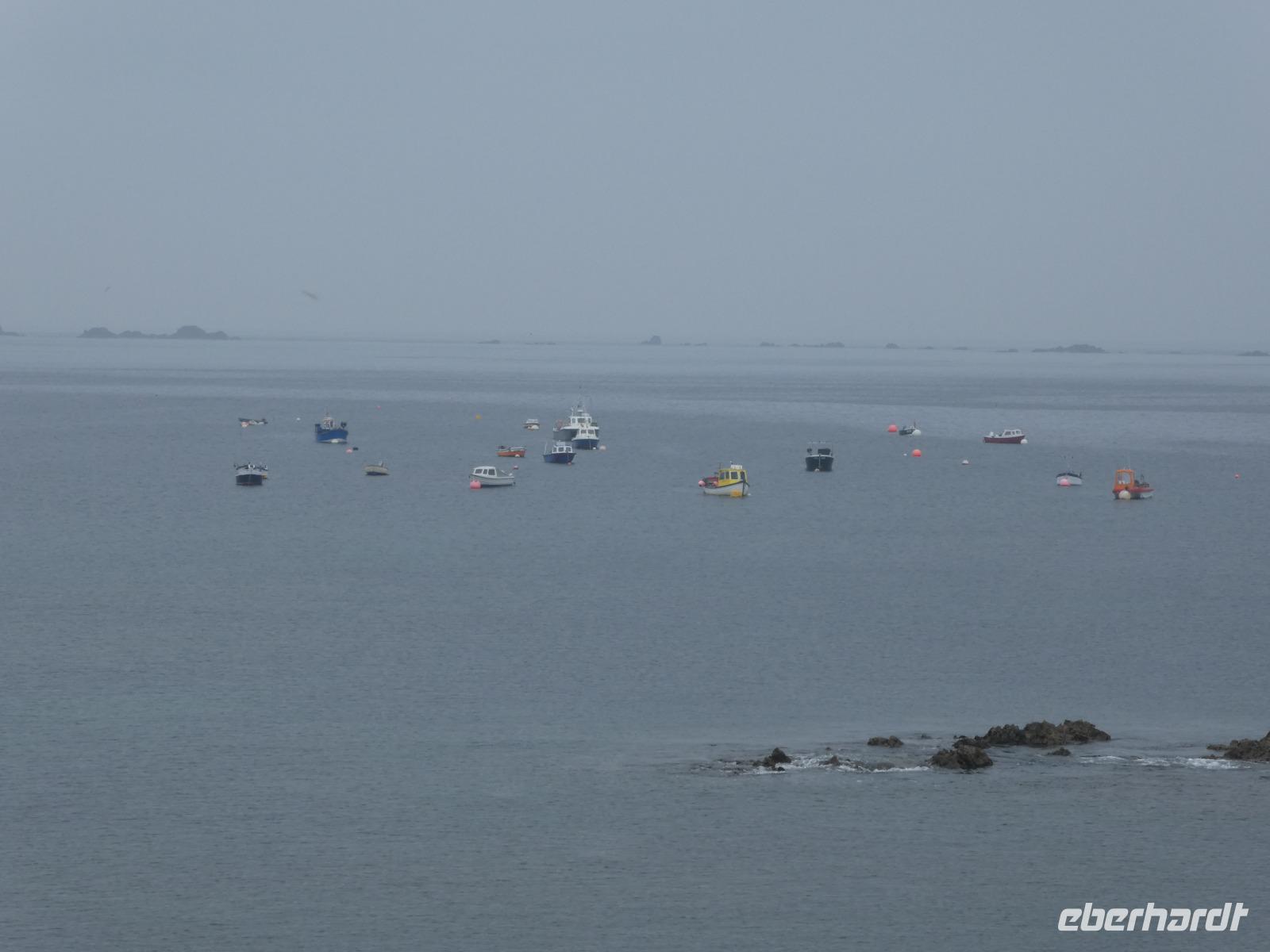 Vom Hotel ging es bei nebliger Sicht durch die Stadt entlang der Promenade nach St. Aubin. Wir hatten das Glück, dass aktuell Ebbe war. So konnten wir einen Spaziergang zum St. Aubin Fort machen. Auf dem Fahrrad wieder weiter ging es zur Südwestküste nach Le Grouet, wo wir den Leuchtturm La Corbiére besichtigten. Die Westküste weiter entlang mit einem Mittagsstopp bogen wir ab landeinwärts nach St. Mary. Als wir in St. Mary angekommen waren, ging es wieder Richtung St. Helier zu unserem Hotel.