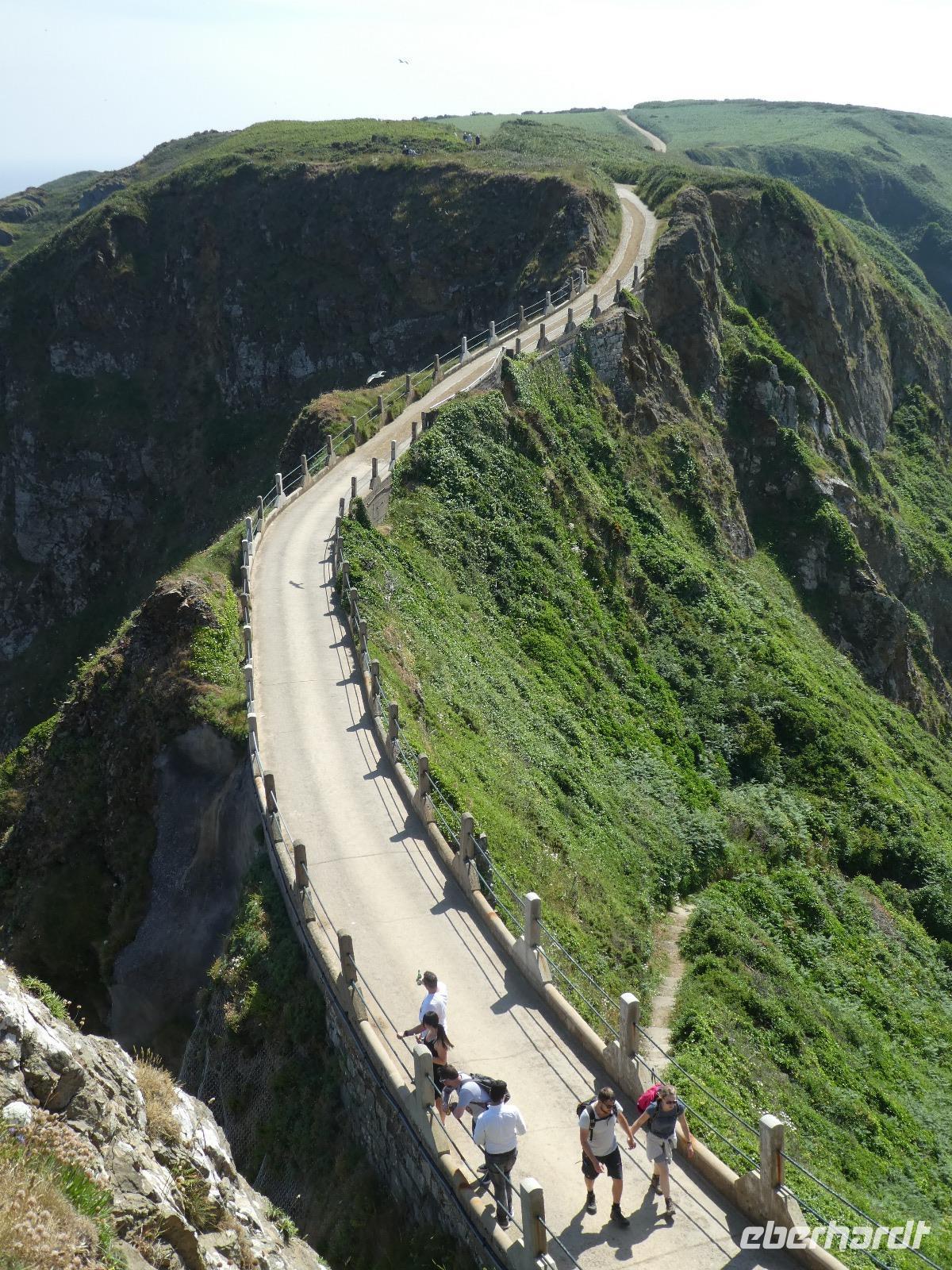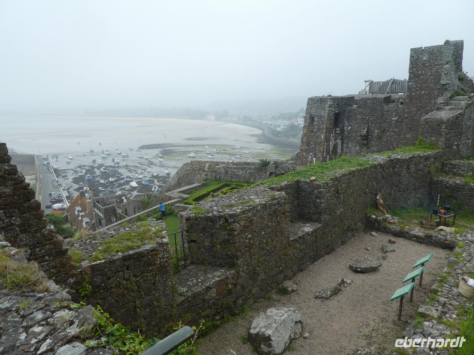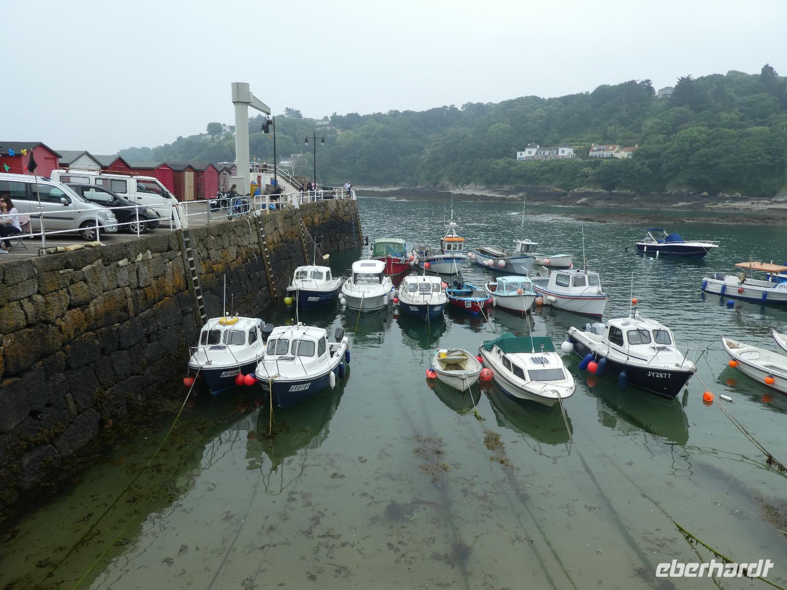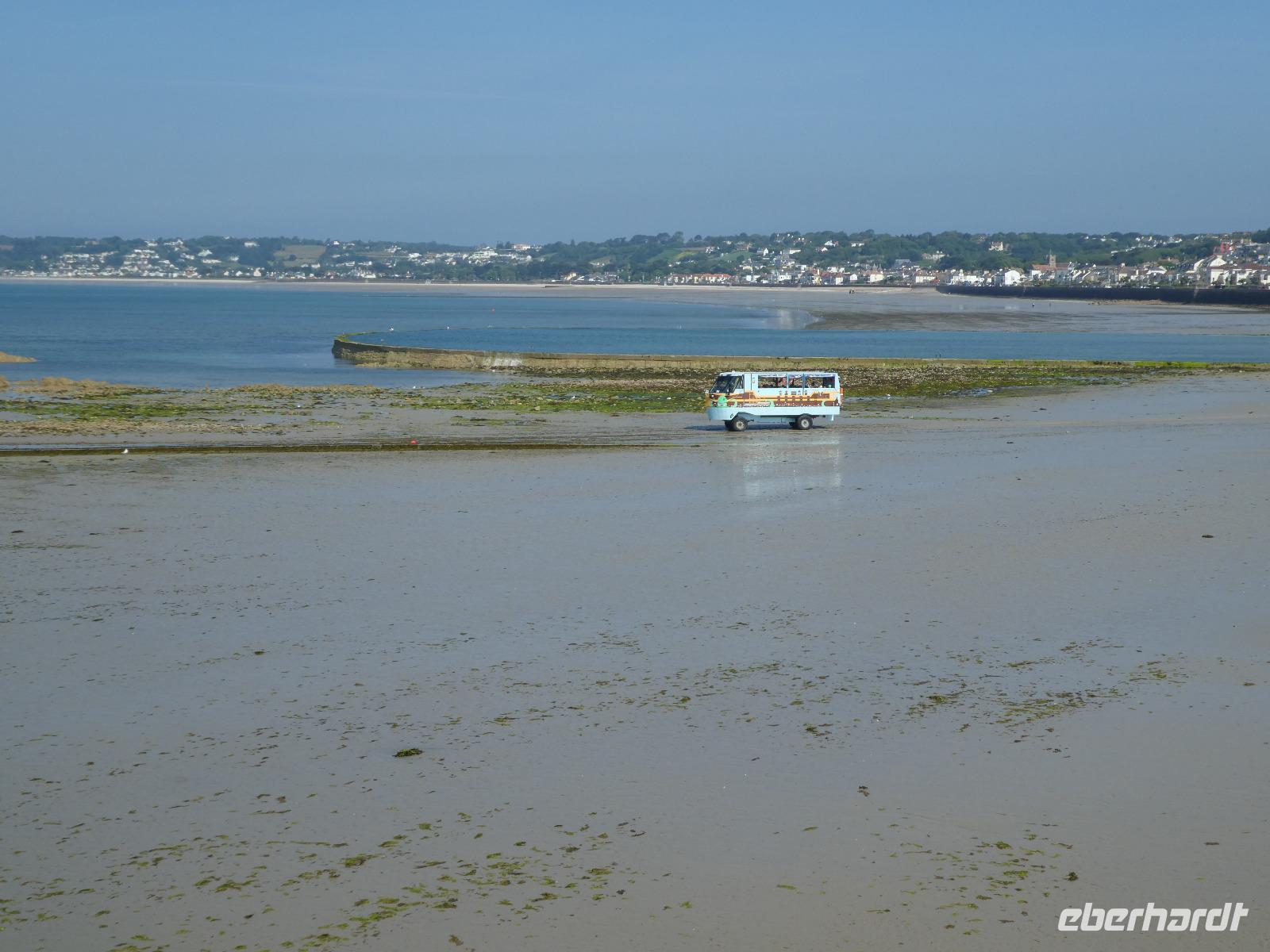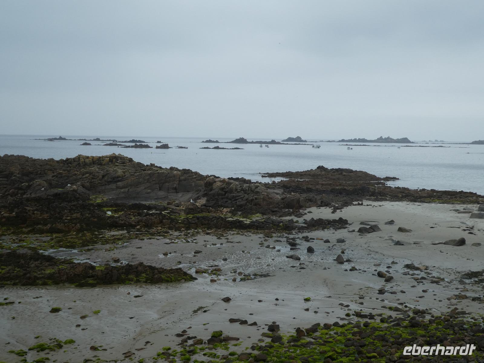 Vom Hotel ging es bei nebliger Sicht durch die Stadt entlang der Promenade nach St. Aubin. Wir hatten das Glück, dass aktuell Ebbe war. So konnten wir einen Spaziergang zum St. Aubin Fort machen. Auf dem Fahrrad wieder weiter ging es zur Südwestküste nach Le Grouet, wo wir den Leuchtturm La Corbiére besichtigten. Die Westküste weiter entlang mit einem Mittagsstopp bogen wir ab landeinwärts nach St. Mary. Als wir in St. Mary angekommen waren, ging es wieder Richtung St. Helier zu unserem Hotel.