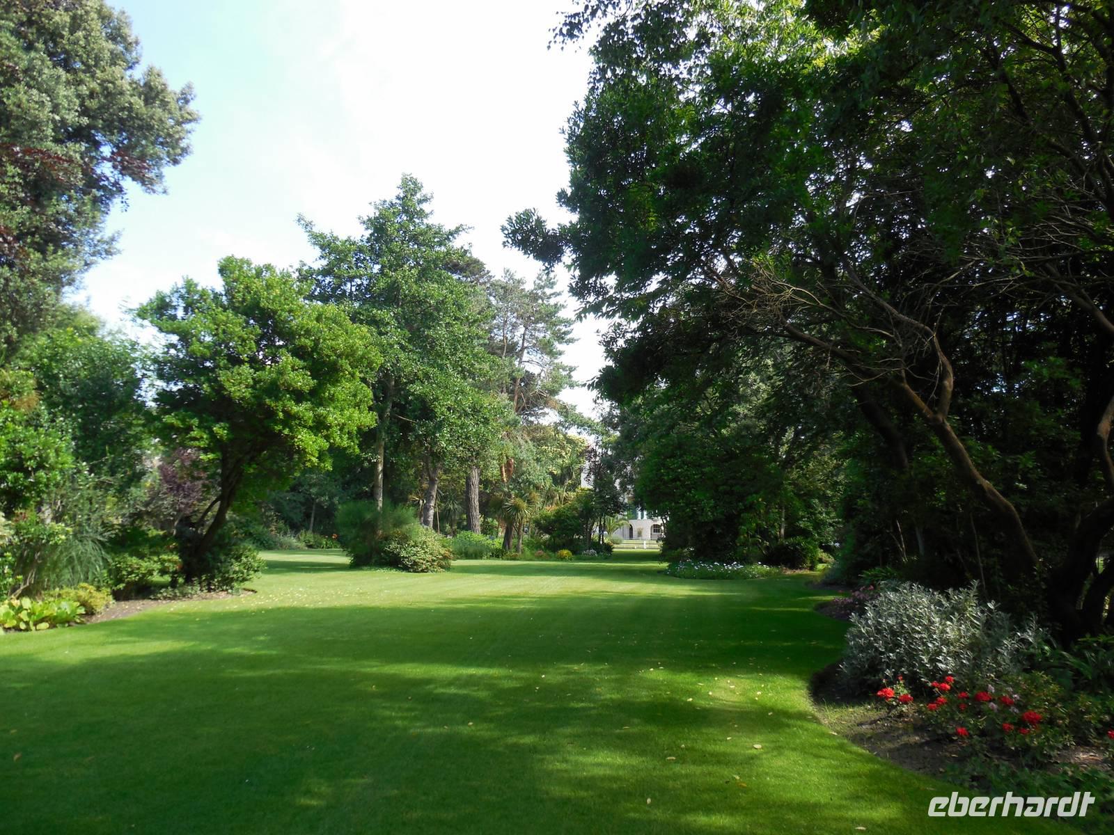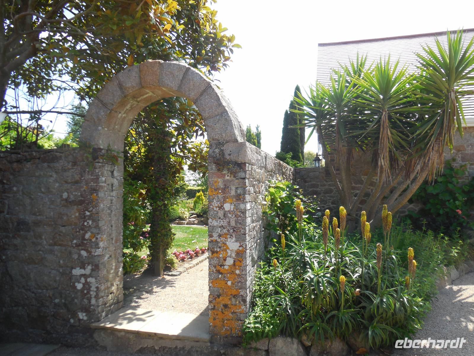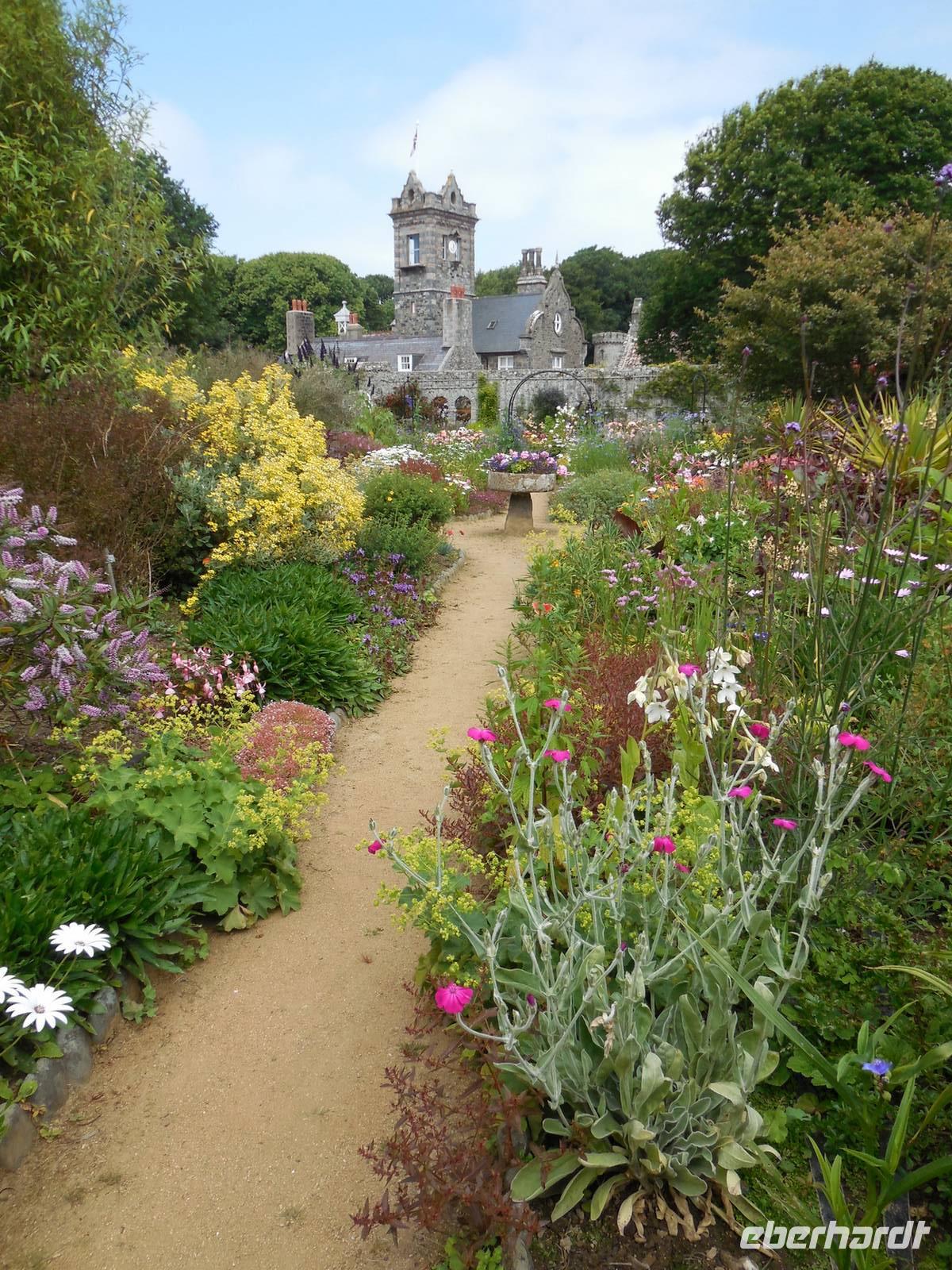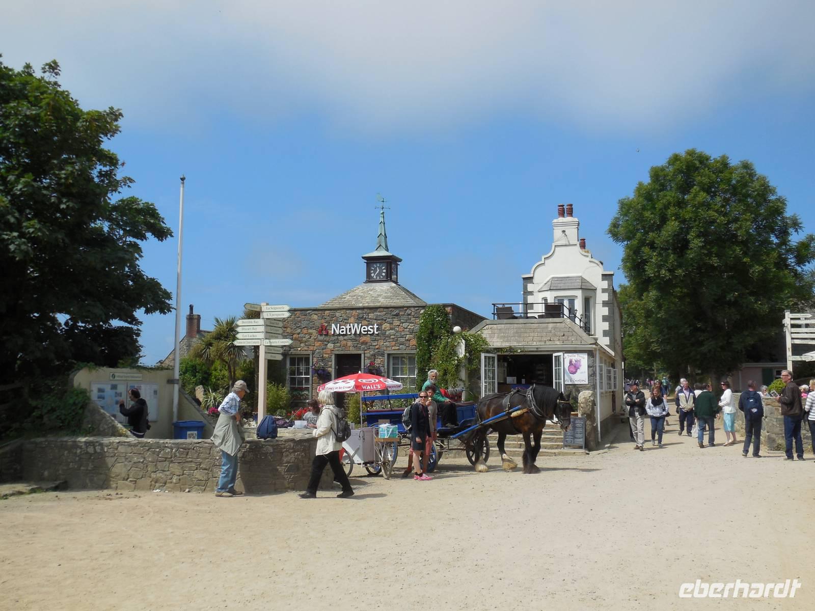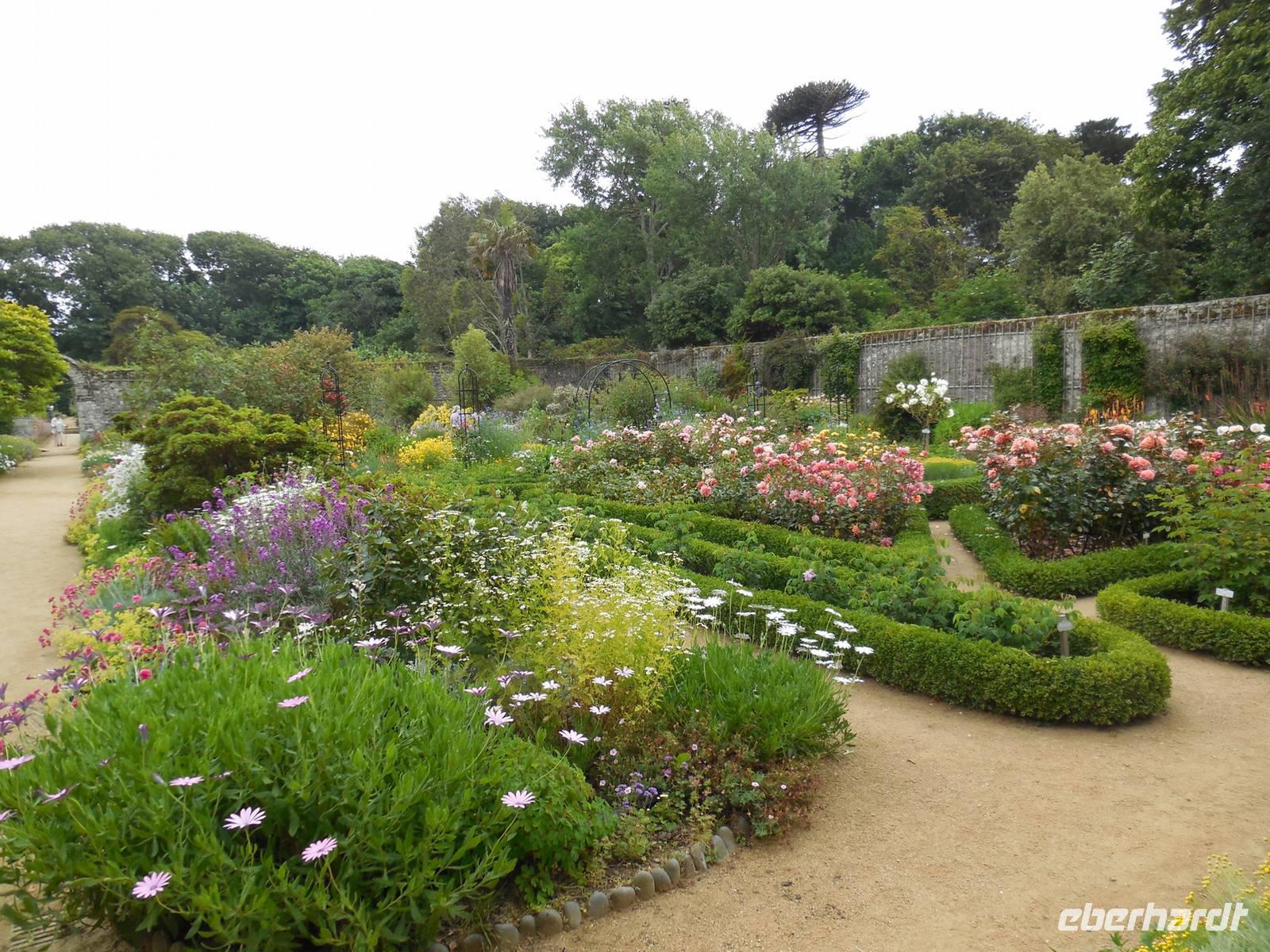 Sark, die zweitkleinste der fünf Kanalinseln, ist heute unser Ziel. Die nur 5,5 km² große Insel, auf der niemand (nicht einmal der Arzt) mit dem Auto unterwegs ist, besticht durch sein einzigartig beruhigendes Flair. Da ist die ca. einstündige, recht holprige Fährüberfahrt, auf der viele Reisekaugummis gekaut und Tabletten gegen Seekrankheit geschluckt werden mussten, direkt wieder vergessen. Da hier nur einige Traktoren und eine Menge Pferdekutschen und Fahrräder unterwegs sind, fühlt man sich direkt bei der Ankunft wie in einer anderen Welt. Ein Traktor bringt uns den steilen, staubigen Weg hinauf ins Dorf. Kaum ausgestiegen, können wir schon die ersten Gärten bestaunen, die in uns die Vorfreude auf die Blütenpracht, der wir in den nächsten Tagen begegnen werden, wecken. Teils mit der Pferdekutsche, teils zu Fuß erreichen wir La Seigneurie. Der Garten des Anwesens blüht ganz wunderbar! Auf dem Weg zurück besichtigen wir die St. Peter Kirche. Jede Familie hat hier ihr eigenes Sitzabteil mit individuell bestickten Kissen. Sogar für die Gefängnisinsassen ist eine Bank reserviert. Das kleine Gefängnis der Insel sehen wir auch nach unserer Mittagspause. Gut gestärkt wandern wir zu La Coupée, dem schmalen Übergang von Sark zu Little Sark. Andere fahren mit einer der Pferdekutschen zu dem Aussichtspunkt, von dem aus man auf die Brücke sehen kann. Bevor wir durch den Wald zurück zur Fähre spazieren, genießen wir noch ein leckeres, selbstgemachtes Eis in der Sonne auf dem Dorfplatz. Dieses wird aus der Milch der Guernseykühe hergestellt, welche durch ihren hohen Fettgehalt besonders gut schmeckt. Die Rückfahrt mit der Fähre ist zum Glück wesentlich ruhiger als die Hinfahrt. Den wunderschönen sonnigen Tag lassen wir bei einem guten Abendessen ausklingen.