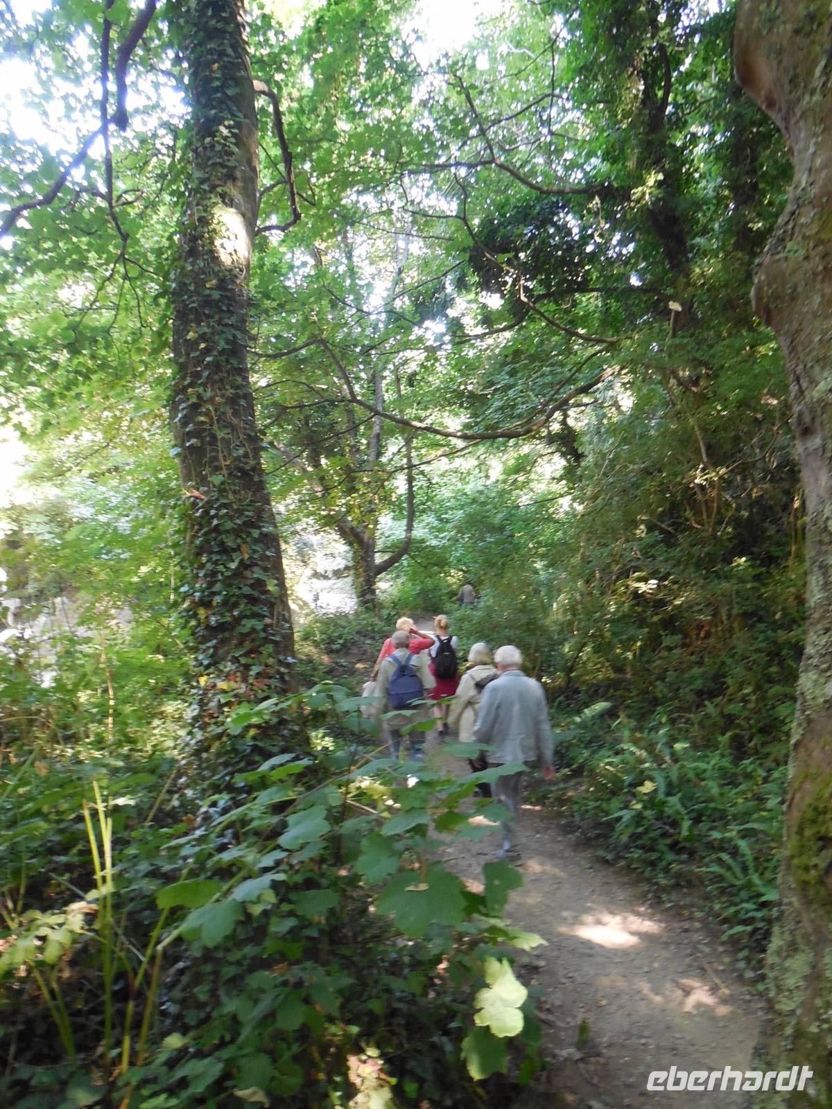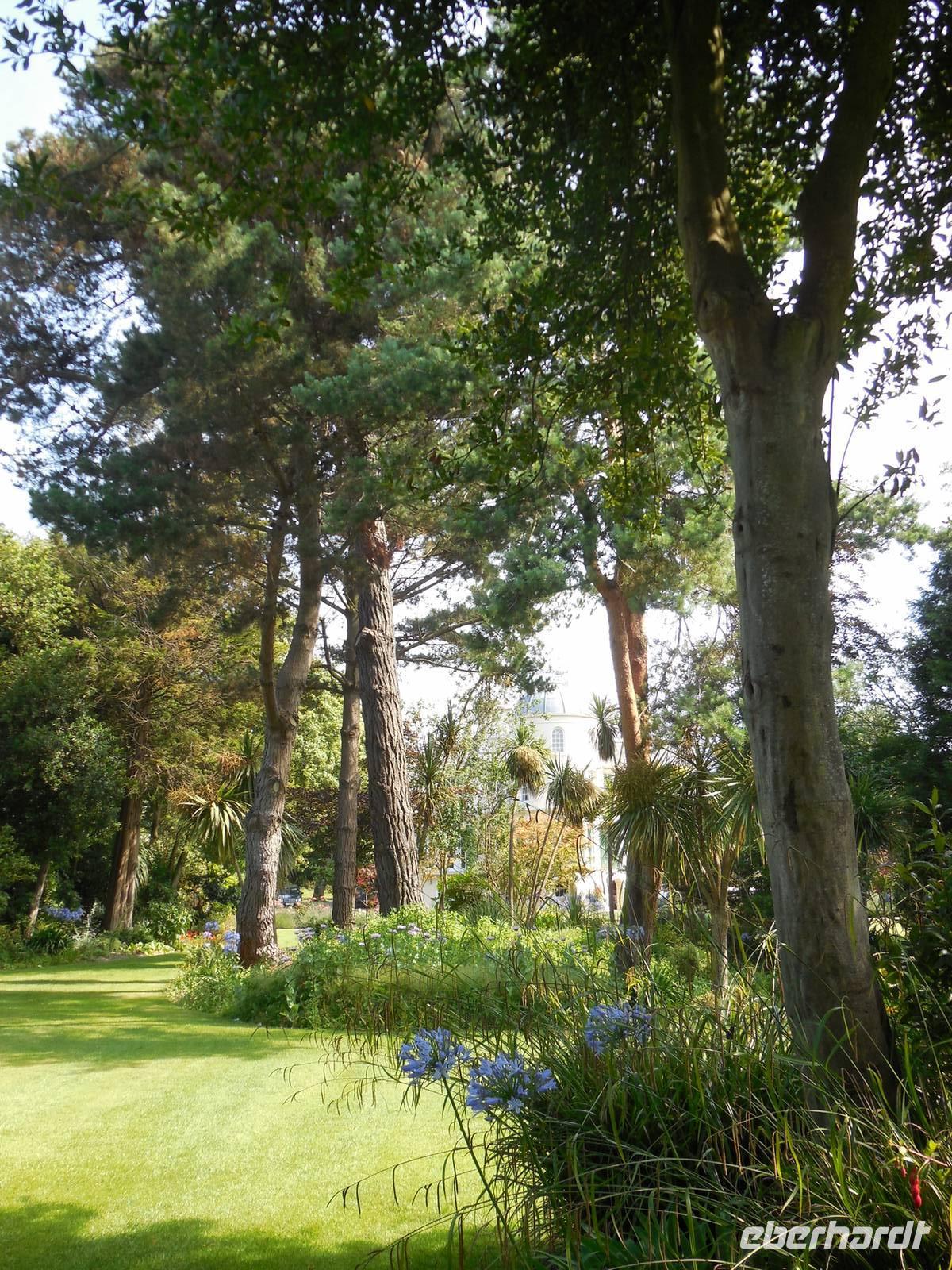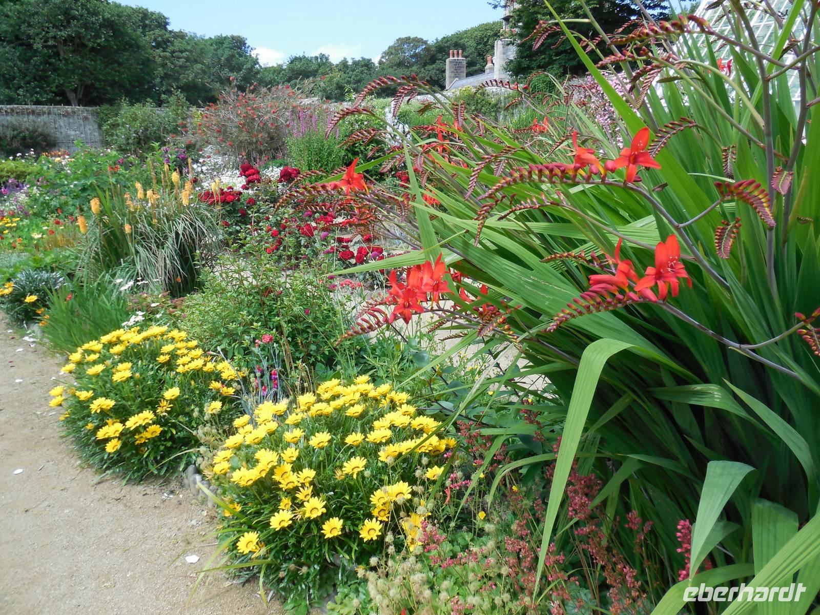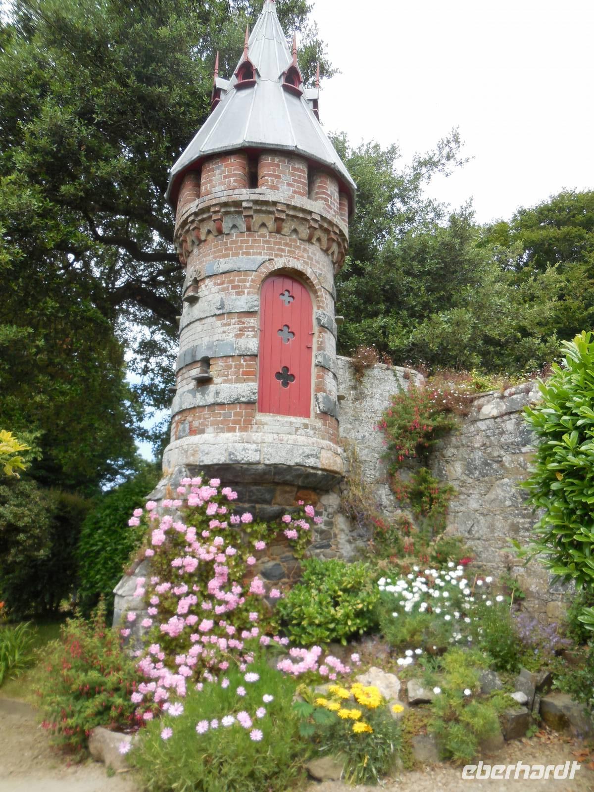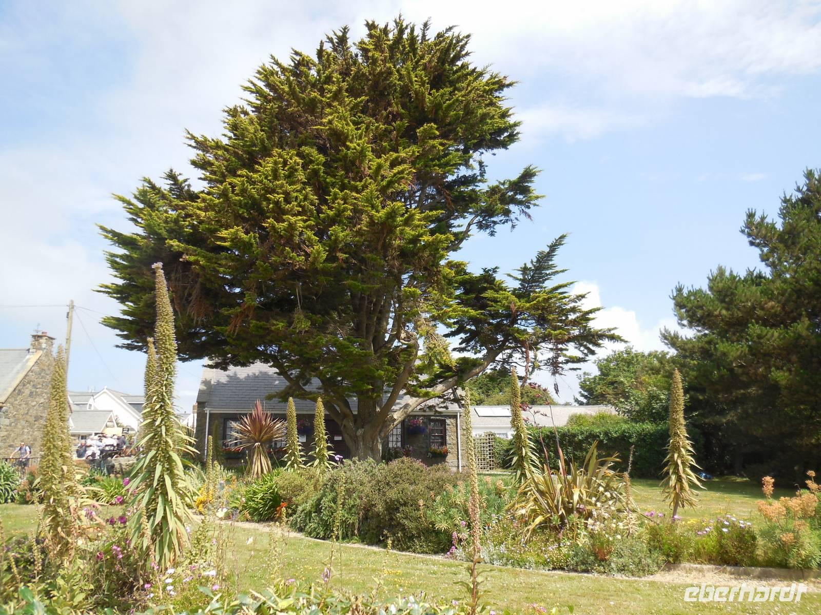Sark, die zweitkleinste der fünf Kanalinseln, ist heute unser Ziel. Die nur 5,5 km² große Insel, auf der niemand (nicht einmal der Arzt) mit dem Auto unterwegs ist, besticht durch sein einzigartig beruhigendes Flair. Da ist die ca. einstündige, recht holprige Fährüberfahrt, auf der viele Reisekaugummis gekaut und Tabletten gegen Seekrankheit geschluckt werden mussten, direkt wieder vergessen. Da hier nur einige Traktoren und eine Menge Pferdekutschen und Fahrräder unterwegs sind, fühlt man sich direkt bei der Ankunft wie in einer anderen Welt. Ein Traktor bringt uns den steilen, staubigen Weg hinauf ins Dorf. Kaum ausgestiegen, können wir schon die ersten Gärten bestaunen, die in uns die Vorfreude auf die Blütenpracht, der wir in den nächsten Tagen begegnen werden, wecken. Teils mit der Pferdekutsche, teils zu Fuß erreichen wir La Seigneurie. Der Garten des Anwesens blüht ganz wunderbar! Auf dem Weg zurück besichtigen wir die St. Peter Kirche. Jede Familie hat hier ihr eigenes Sitzabteil mit individuell bestickten Kissen. Sogar für die Gefängnisinsassen ist eine Bank reserviert. Das kleine Gefängnis der Insel sehen wir auch nach unserer Mittagspause. Gut gestärkt wandern wir zu La Coupée, dem schmalen Übergang von Sark zu Little Sark. Andere fahren mit einer der Pferdekutschen zu dem Aussichtspunkt, von dem aus man auf die Brücke sehen kann. Bevor wir durch den Wald zurück zur Fähre spazieren, genießen wir noch ein leckeres, selbstgemachtes Eis in der Sonne auf dem Dorfplatz. Dieses wird aus der Milch der Guernseykühe hergestellt, welche durch ihren hohen Fettgehalt besonders gut schmeckt. Die Rückfahrt mit der Fähre ist zum Glück wesentlich ruhiger als die Hinfahrt. Den wunderschönen sonnigen Tag lassen wir bei einem guten Abendessen ausklingen.