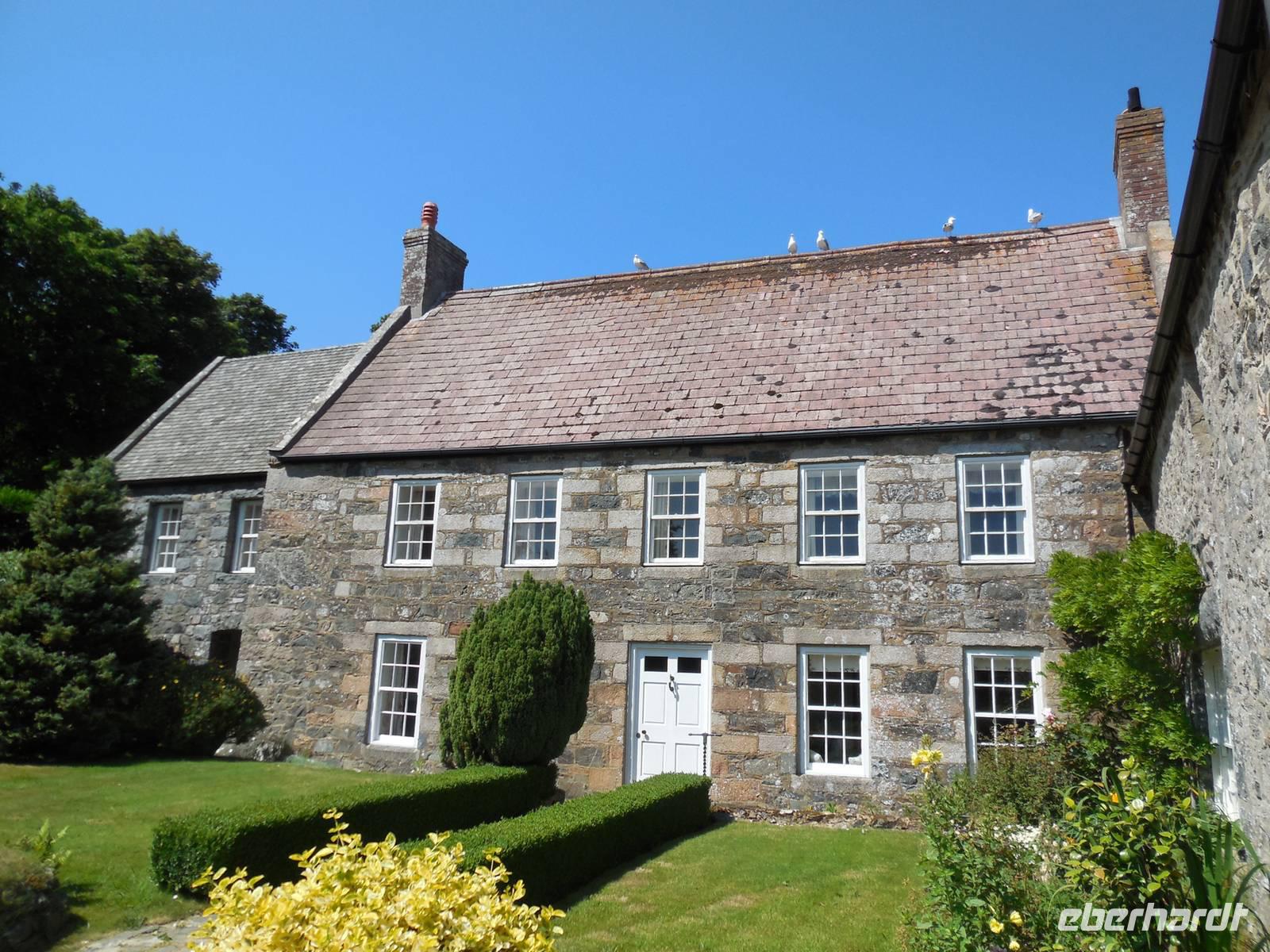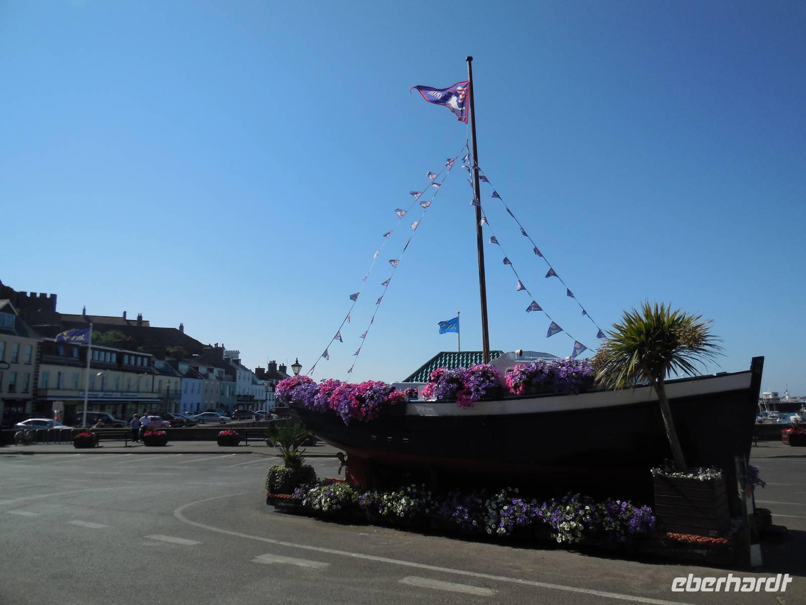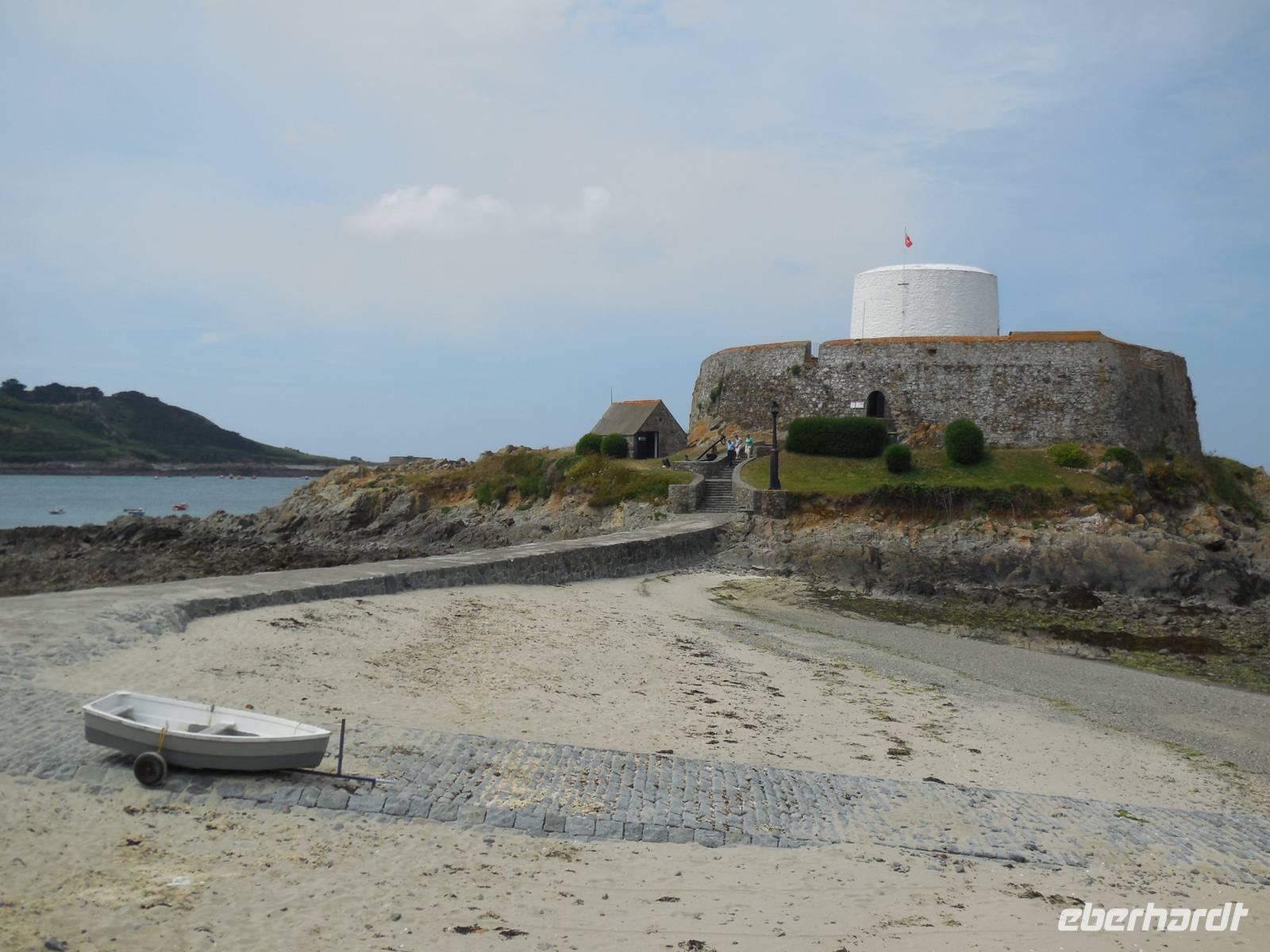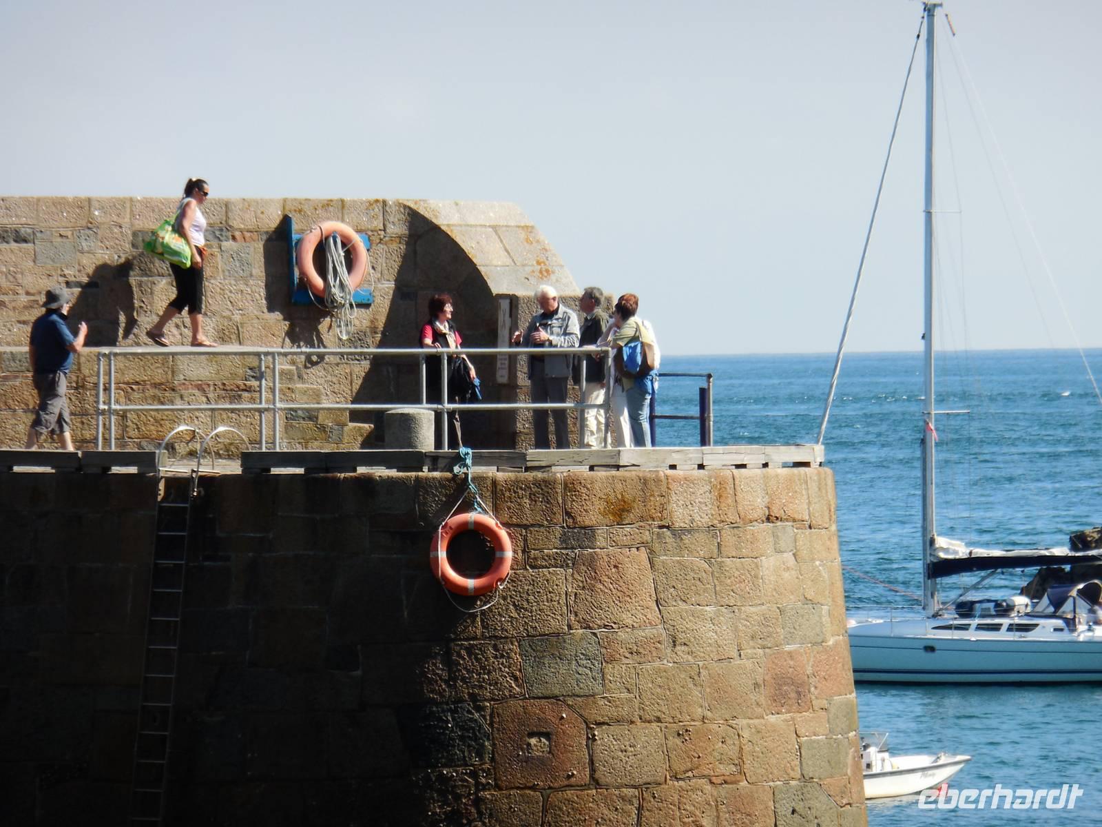 Heute heißt es früh aufstehen, denn 9.00 Uhr legt unsere Fähre nach Guernsey ab. Heidi bringt uns noch zur Fähre, wo uns Christel empfängt. Sie wird uns heute auf Guernsey begleiten. Nach ca. einer Stunde erreichen wir die zweitgrößte Kanalinsel. Diese ist nicht zuletzt durch ihre westliche Lage Wind und Wetter am meisten ausgesetzt, was sich auch in ihren Küstenformationen erkennen lässt. Auf einem halbstündigen Spaziergang zum Icart Point erleben wir das selbst. Die Ruhe der Natur, der Ausblick auf das offene Meer und die vielen Gewächse am Wegesrand sorgen für Tiefenantspannung bei jedem einzelnen. Pete, unser Chauffeur bringt uns anschließend zu einem weiteren Highlight Guernseys - der Little Chapel. Diese winzige Kapelle soll wohl die kleinste der Welt sein und wurde Anfang des 20. Jahrhunderts von Déodat, einem Mitglied der De La Salle Bruderschaft erbaut. Das besondere an ihr ist jedoch nicht nur ihre Größe, sondern ihr Aussehen. Das komplett von Muscheln und Tonscherben bedeckte Gebäude mag für die einen kitschig und für die anderen ein kreatives Meisterwerk sein. Ganz sicher ist die Kapelle aber eine Rarität, die ihres gleichen sucht. Unsere Mittagspause verbringen wir in einem kleinen Restaurant ganz in der Nähe des Fort Saumarez - einem von unzähligen Martello-Türmen, die die Kanalinseln früher beschützten. Unsere Inselrundfahrt geht weiter in Richtung Nord-Osten. Wir halten noch kurz an einem weiteren Schutzturm bevor uns Pete zurück nach St. Peter Port, der Inselhauptstadt bringt. Gemeinsam durch den Park, vorbei an der Statue von Victor Hugo, der selbst lange hier wohnte, schlendern wir ins Zentrum. Dort besuchen einige die Kirche, trinke Kaffee oder spazieren am Hafen entlang bevor unser Tag auf Guernsey sich schon bald dem Ende neigt, denn wir müssen zurück zur Fähre. „Zu Hause" in St. Helier holt Ernst uns ab und bringt uns zurück zum Hotel, wo wir auch Familie Kretzschmar wieder treffen, die Jersey heute auf eigene Faust erkundet hat.
