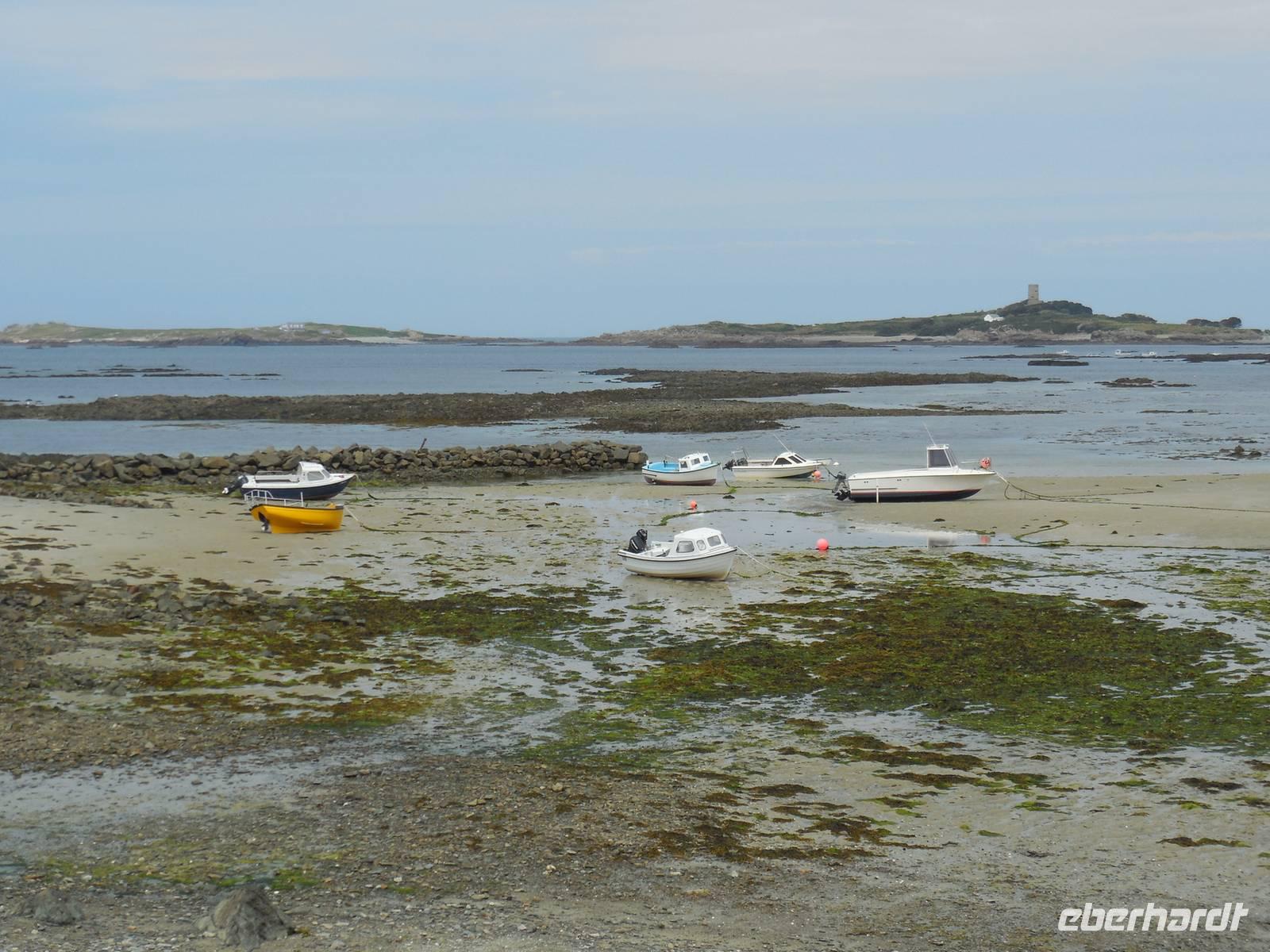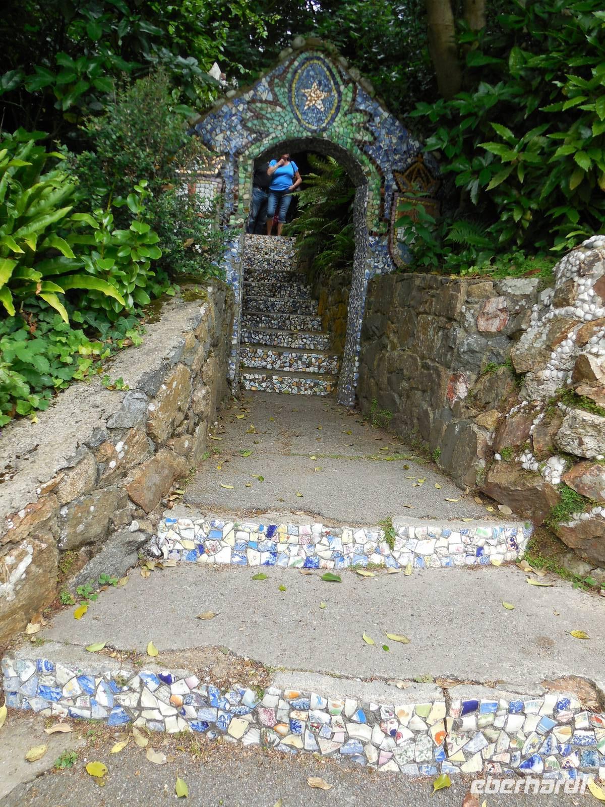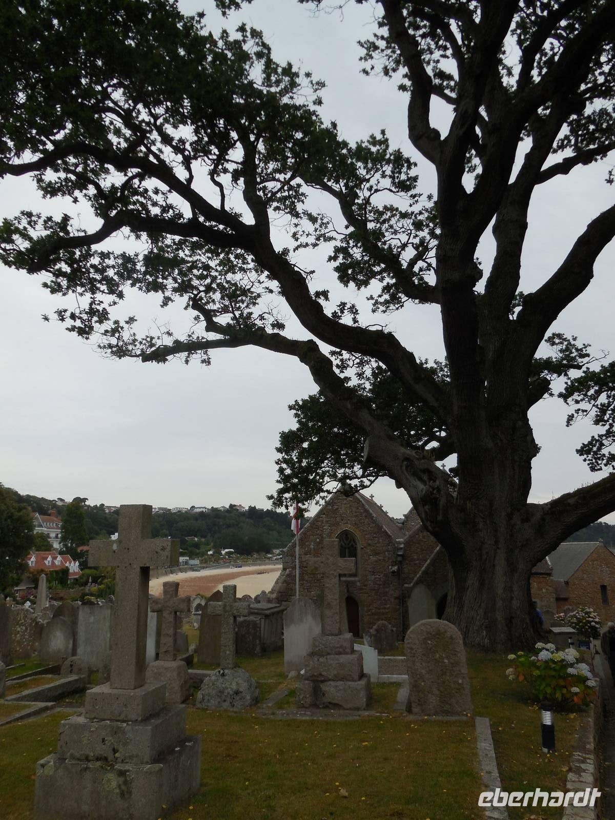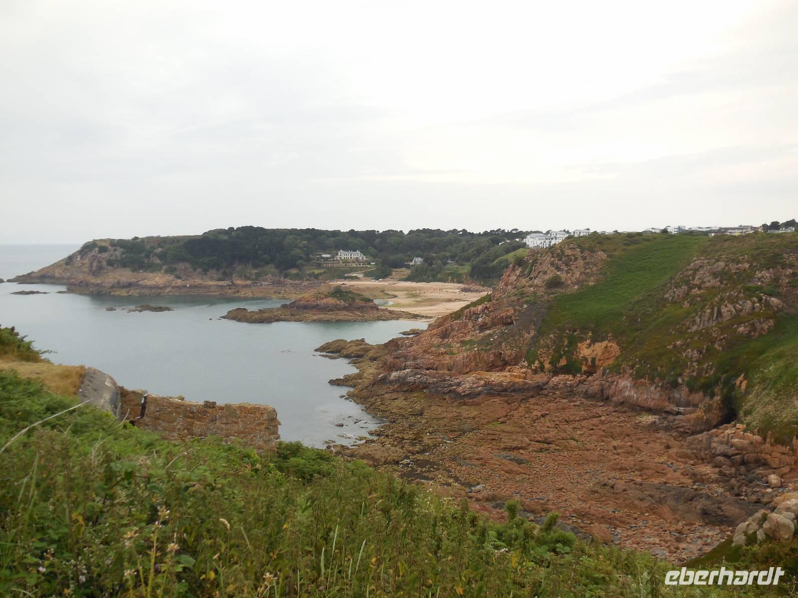 Heute heißt es früh aufstehen, denn 9.00 Uhr legt unsere Fähre nach Guernsey ab. Heidi bringt uns noch zur Fähre, wo uns Christel empfängt. Sie wird uns heute auf Guernsey begleiten. Nach ca. einer Stunde erreichen wir die zweitgrößte Kanalinsel. Diese ist nicht zuletzt durch ihre westliche Lage Wind und Wetter am meisten ausgesetzt, was sich auch in ihren Küstenformationen erkennen lässt. Auf einem halbstündigen Spaziergang zum Icart Point erleben wir das selbst. Die Ruhe der Natur, der Ausblick auf das offene Meer und die vielen Gewächse am Wegesrand sorgen für Tiefenantspannung bei jedem einzelnen. Pete, unser Chauffeur bringt uns anschließend zu einem weiteren Highlight Guernseys - der Little Chapel. Diese winzige Kapelle soll wohl die kleinste der Welt sein und wurde Anfang des 20. Jahrhunderts von Déodat, einem Mitglied der De La Salle Bruderschaft erbaut. Das besondere an ihr ist jedoch nicht nur ihre Größe, sondern ihr Aussehen. Das komplett von Muscheln und Tonscherben bedeckte Gebäude mag für die einen kitschig und für die anderen ein kreatives Meisterwerk sein. Ganz sicher ist die Kapelle aber eine Rarität, die ihres gleichen sucht. Unsere Mittagspause verbringen wir in einem kleinen Restaurant ganz in der Nähe des Fort Saumarez - einem von unzähligen Martello-Türmen, die die Kanalinseln früher beschützten. Unsere Inselrundfahrt geht weiter in Richtung Nord-Osten. Wir halten noch kurz an einem weiteren Schutzturm bevor uns Pete zurück nach St. Peter Port, der Inselhauptstadt bringt. Gemeinsam durch den Park, vorbei an der Statue von Victor Hugo, der selbst lange hier wohnte, schlendern wir ins Zentrum. Dort besuchen einige die Kirche, trinke Kaffee oder spazieren am Hafen entlang bevor unser Tag auf Guernsey sich schon bald dem Ende neigt, denn wir müssen zurück zur Fähre. „Zu Hause" in St. Helier holt Ernst uns ab und bringt uns zurück zum Hotel, wo wir auch Familie Kretzschmar wieder treffen, die Jersey heute auf eigene Faust erkundet hat.
