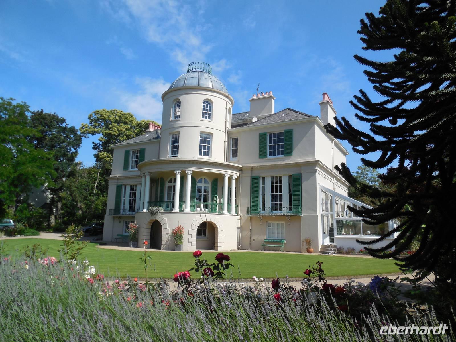 Aus ganz Deutschland reisen wir heute auf die größte der 5 bewohnten Kanalinseln Jersey an. Bei dem köstlichen Begrüßungsabendessen in unserem Hotel „Ommaroo" ist unsere kleine Gruppe von 14 Reisenden komplett und wir lassen und das 3-Gänge Menü schmecken. Das Hotel liegt direkt an der Bucht von St. Helier, der Hauptstadt Jerseys und wird schon seit über 100 Jahren als solches genutzt. Nach dem Abendessen nutzen einige von uns die Gelegenheit, bei einem Verdauungsspaziergang im Sonnenuntergang die nähere Umgebung und seine Mitreisenden kennen zu lernen.