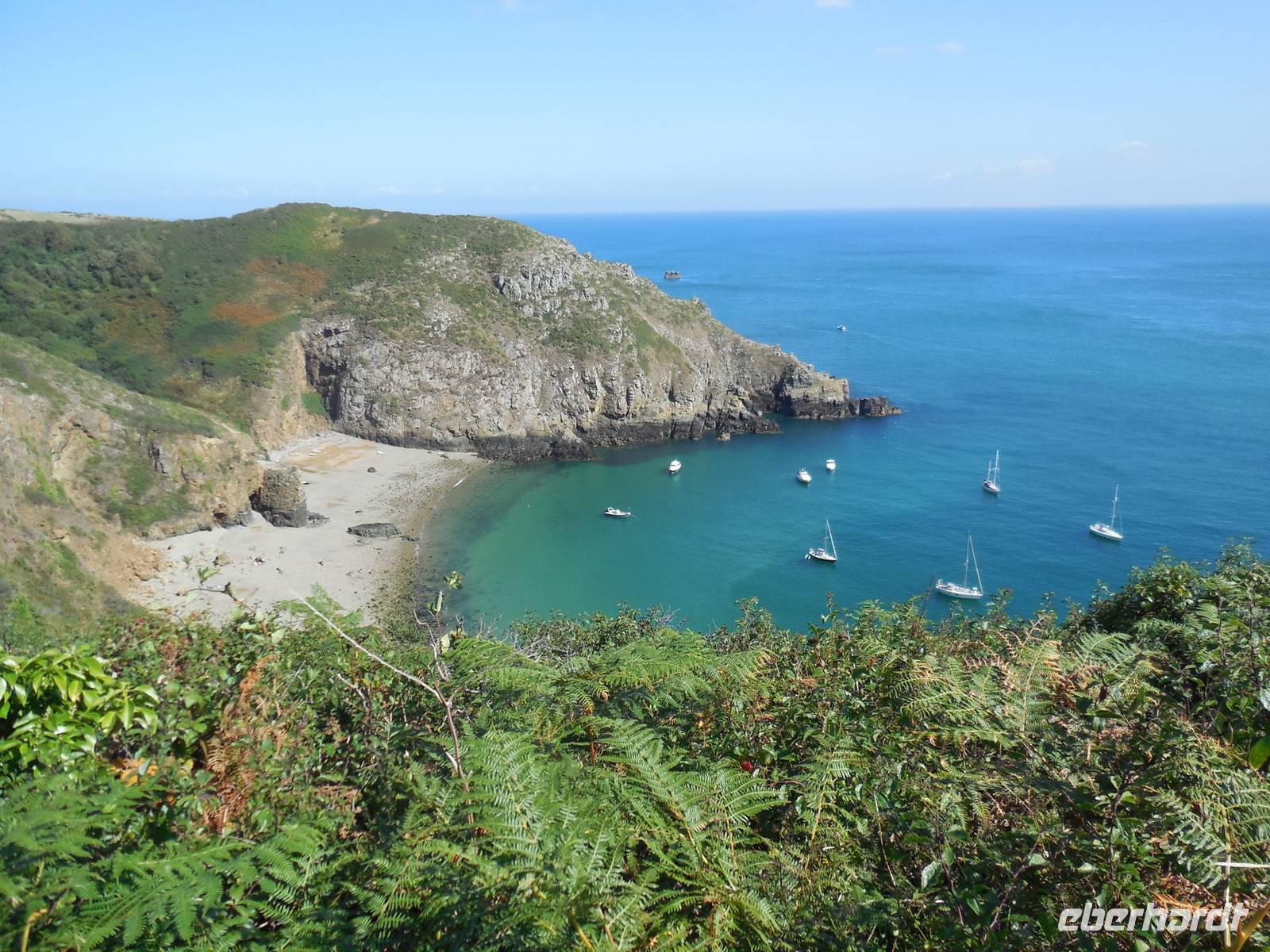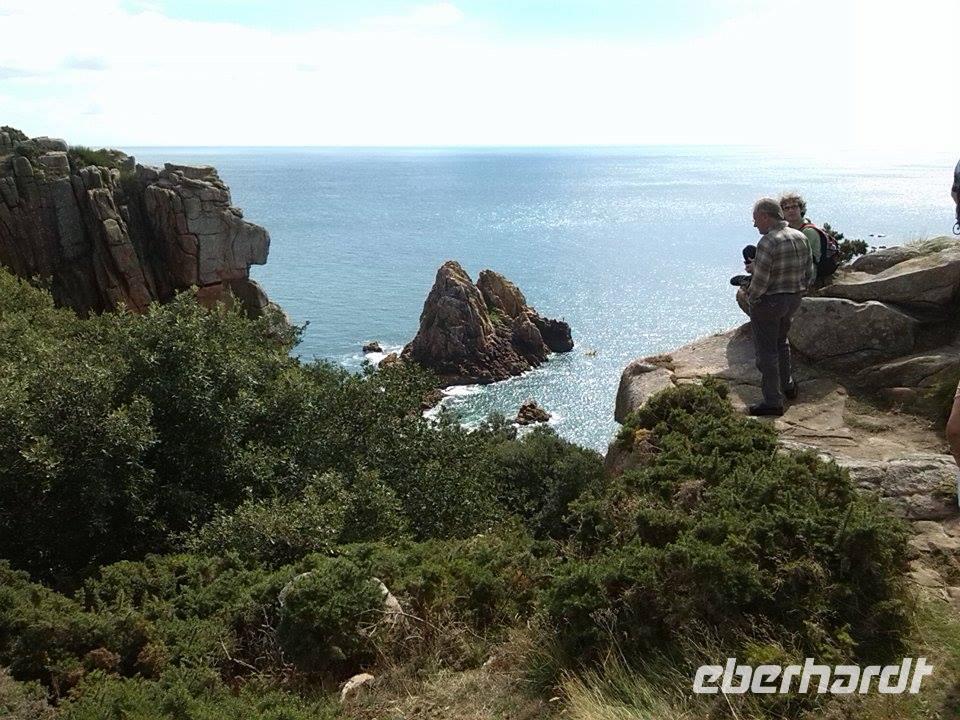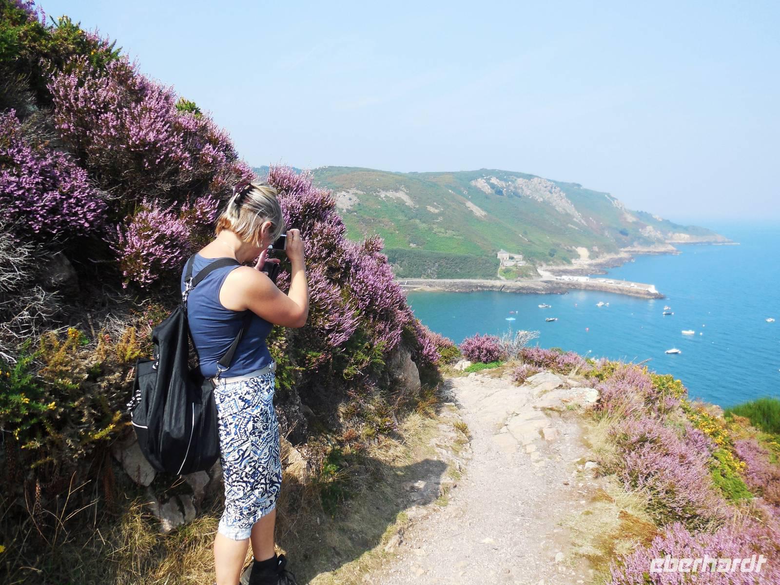 Unserer Weg Richtung Küste führt uns am berühmten Cottage oberhalb der Moulin Huet Bay vorbei. Dieses war Filmkulisse beim Dreh von „Die Rosenzüchterin". Wir begeben uns auf einen kleinen Klippenspaziergang oberhalb der Saint's Bay und gelangen zum südlichsten Punkt der Insel,, dem Icart Point. Ein brombeerumrahmter, grüner Klippenpfad erlaubt uns atemberaubende Blicke auf die tiefblauen Buchten, umrahmt von satten Grün und Bilderbuchstränden.