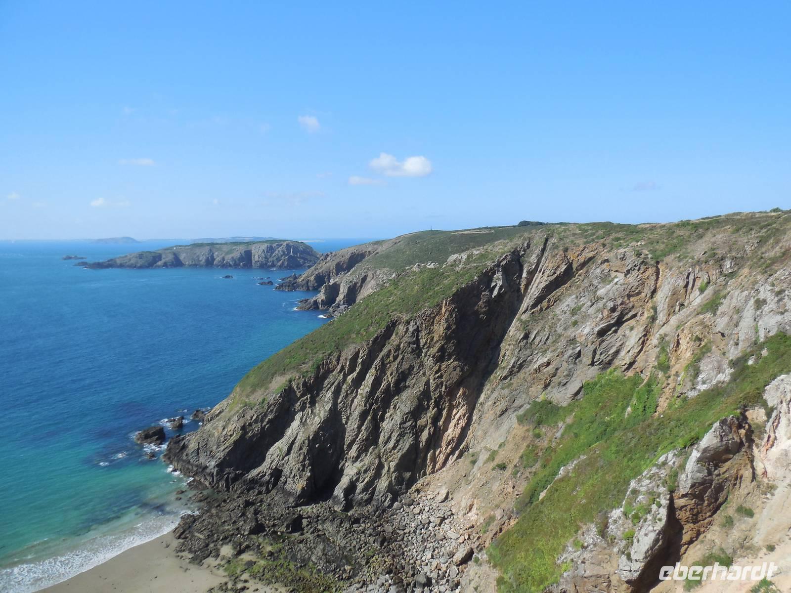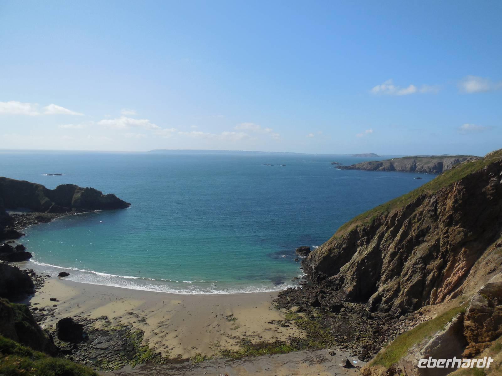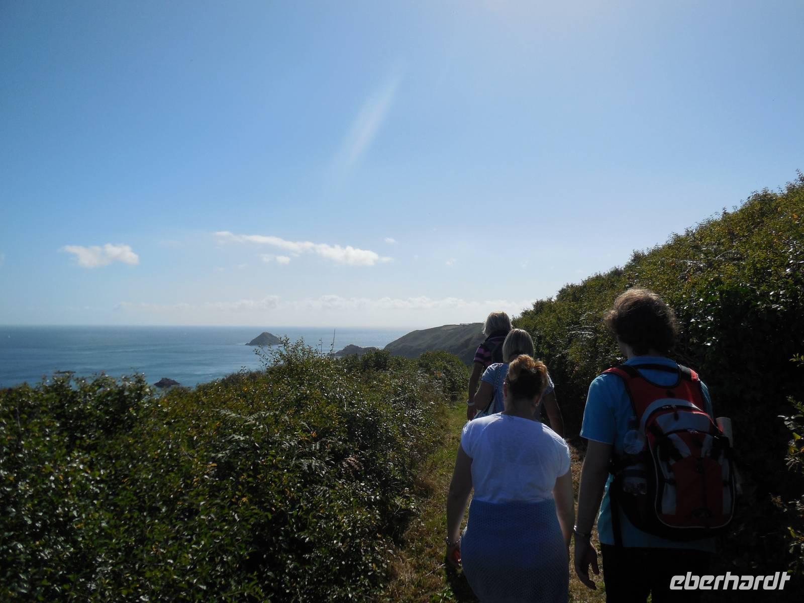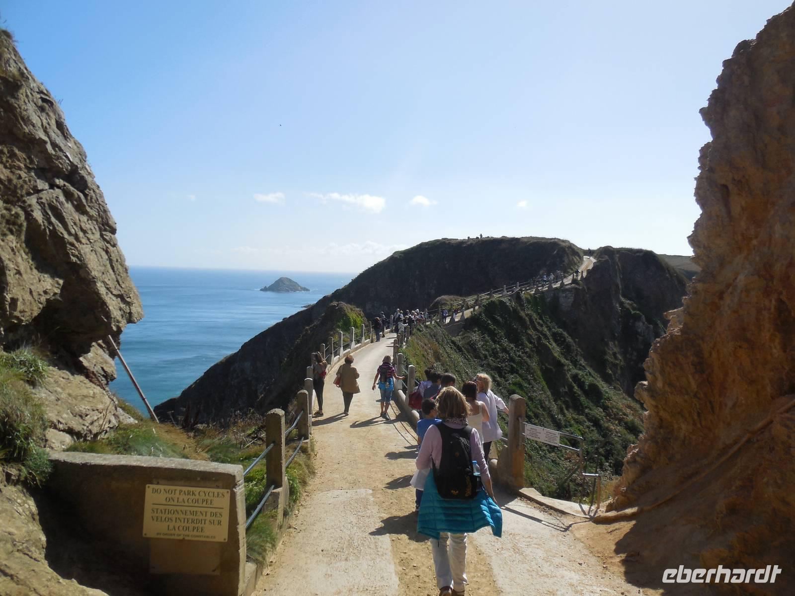 Unserer Weg Richtung Küste führt uns am berühmten Cottage oberhalb der Moulin Huet Bay vorbei. Dieses war Filmkulisse beim Dreh von „Die Rosenzüchterin". Wir begeben uns auf einen kleinen Klippenspaziergang oberhalb der Saint's Bay und gelangen zum südlichsten Punkt der Insel,, dem Icart Point. Ein brombeerumrahmter, grüner Klippenpfad erlaubt uns atemberaubende Blicke auf die tiefblauen Buchten, umrahmt von satten Grün und Bilderbuchstränden.