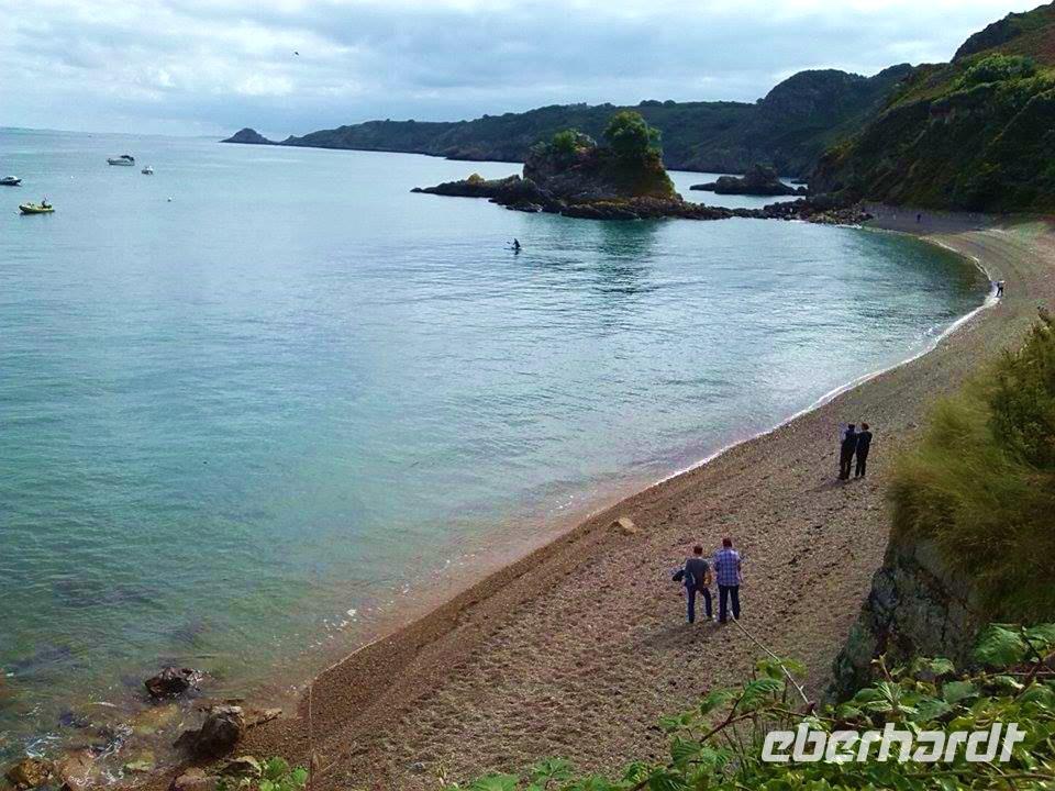 Von unserem Hotel in der Hauptstadt St. Helier geht es entlang der Royal Bay in Richtung Gorey. Hier thront Jerseys älteste Burg, das Mont Orgeuil Castle. Umgeben von einer schroffen Felsküste, einem hübschen kleinen Hafen und dem kleinen Örtchen mit den urigen Pubs, diente diese Burg der Abwehr von Angriffen der Franzosen. Nach einem Fotostopp schlängeln wir die Küstenstraße hinauf und lassen uns von Reiseleiterin Heidi Geschichtchen über die eigenartigen Jerseyaner erzählen. So stammen von Jersey die berühmten Jerseypullover. Früher sollen hier die Männer und Frauen gleichermaßen gestrickt haben und dabei sogar oft die Felder vernachlässigt haben. Eine Frau die ohne zu Stricken durch die Straßen ging, galt als faul. Wir gelangen zur Bouley Bay, einer wunderschönen Bucht an der Nordküste, wo wir eine Pause einlegen. Am Kieselstrand findet man viele Muscheln, einzigartige Steinchen und mit etwas Glück auf mal eine große Jakobsmuschel.