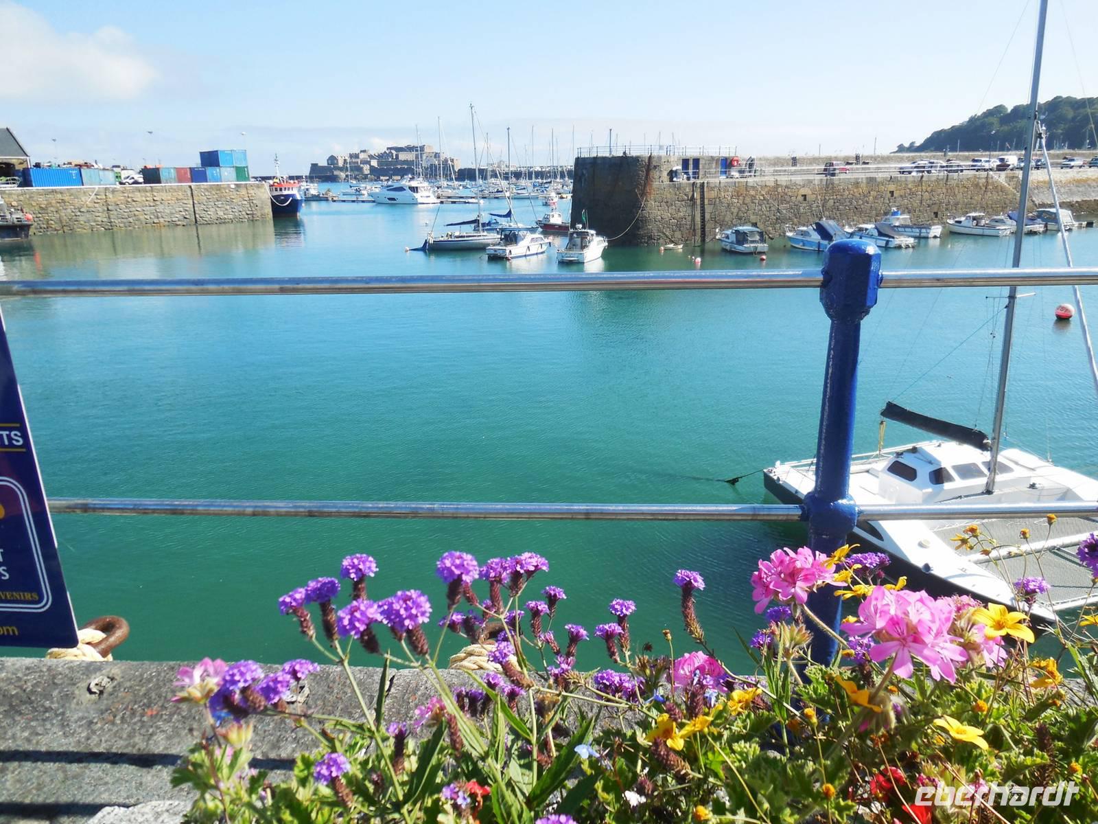 Nach vielen Eindrücken und Erlebnissen lassen wir den Tag auf Guernsey ruhig bei einem Kaffee oder Pimm's in einer Bar mit Blick über den Hafen oder bei einem Stadtbummel ausklingen. Münzsammler versorgen sich hier mit Guernsey Pounds und Briefmarkensammler finden Prachtexemplare von Marken der Inseln Guernsey oder Alderney. Am späten Nachmittag geht es per Schiff zu zurück nach Jersey.