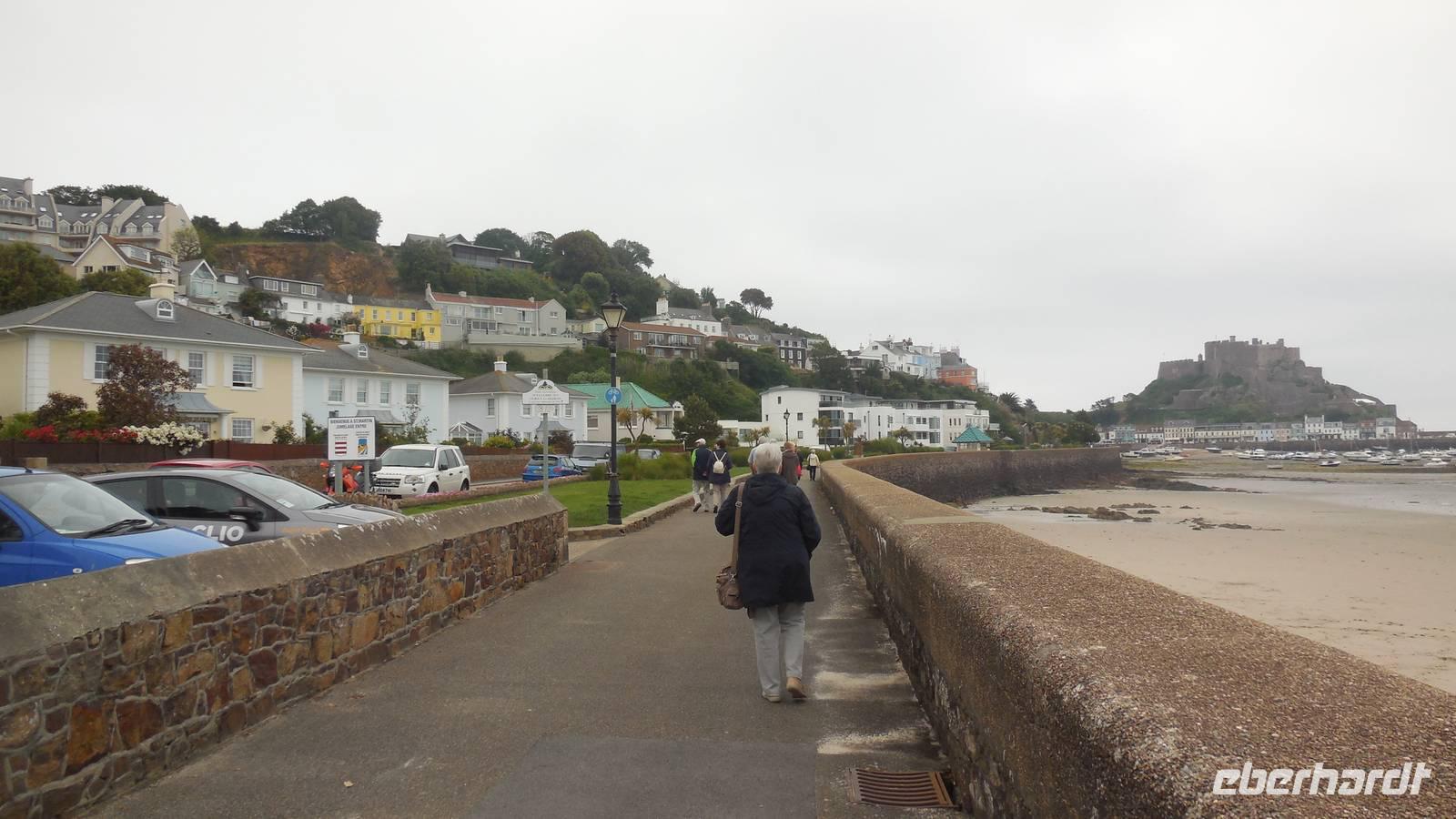 Nach der Ankunft im Hotel begeben wir uns nochmal in die Stadt St. Helier. Wie wir alle feststellen, ist die Stadt St. Helier doch gut überschaubar und so finden wir uns nach einigem Hin und Her zurecht. Man muss erwähnen, dass es für uns alle die erste Reise auf Jersey ist und wir sind positiv überrascht. Besonders beeindruckt uns die Blütenpracht und das Phänomen Ebbe und Flut.