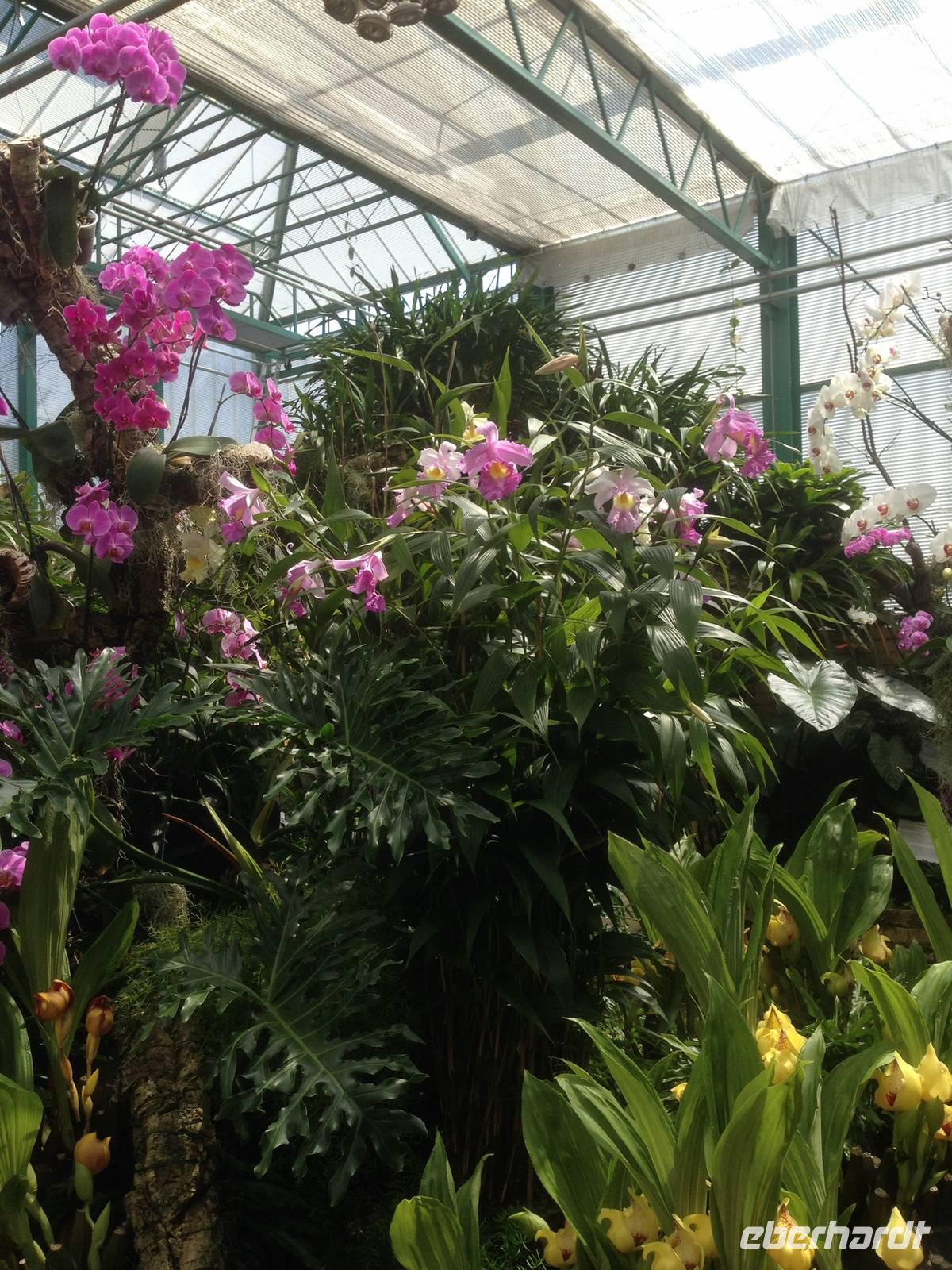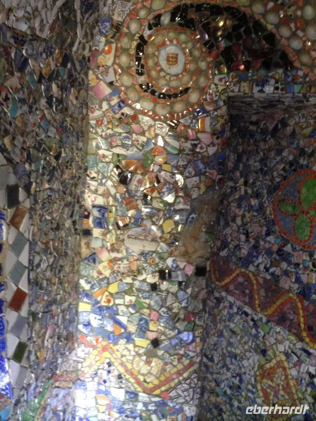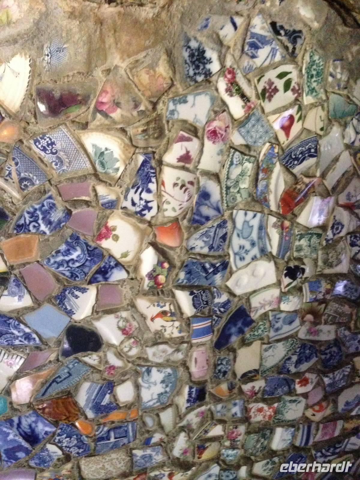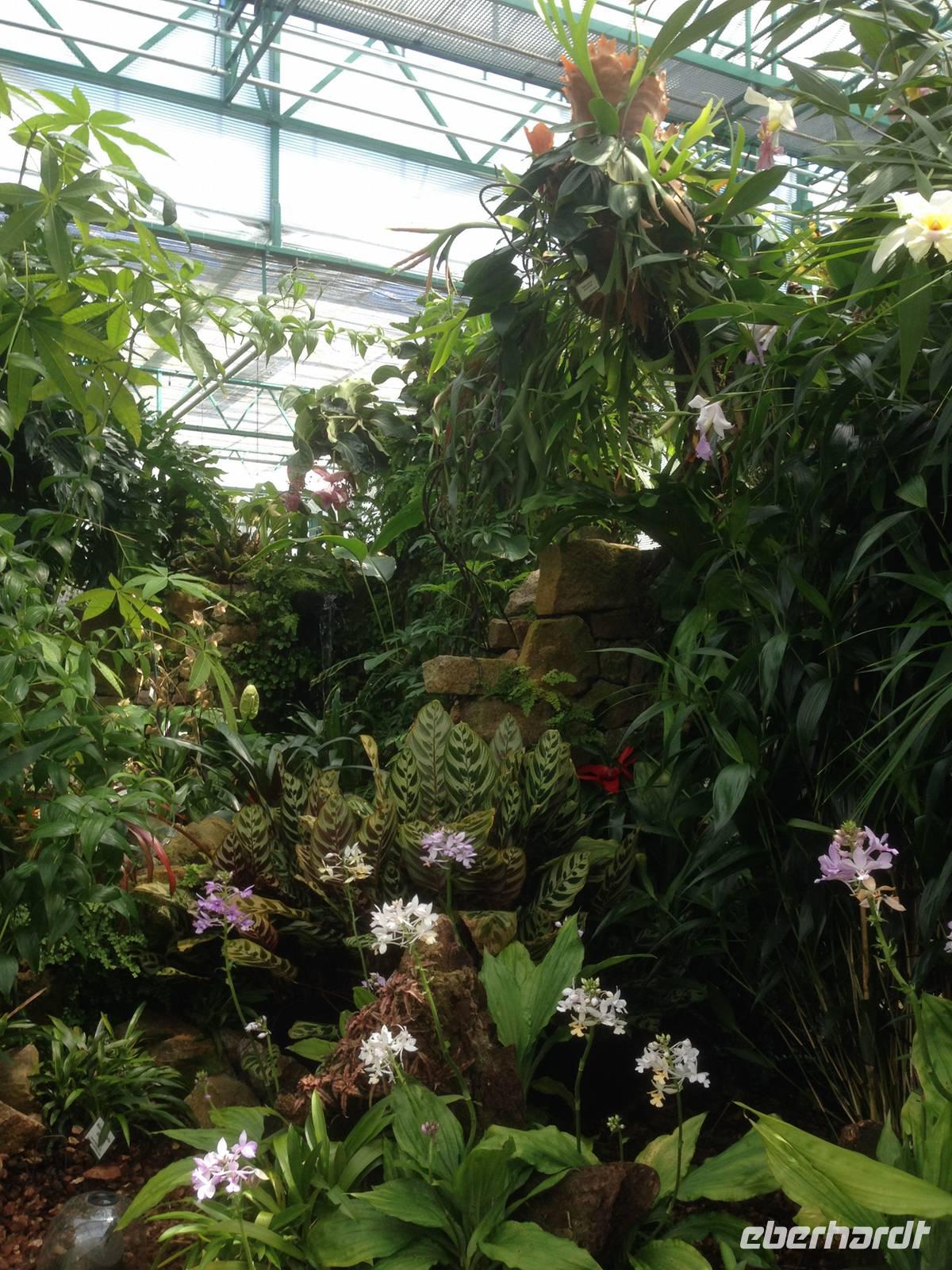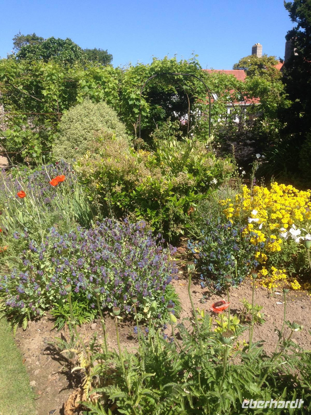 Heute zeigt uns Heidi einige Privatgärten von wohlhabenden Grundbesitzern. Als Erstes fahren wir zum Garten von Mrs. Lie. Voll beeindruckt laufen wir entlang des Cottages hinter in den Garten der Besitzerin. Der Anblick, der sich bietet, fasziniert. Das Anwesen beherbergt Rosen, seltene Baum- und Pflanzenarten. Wir haben noch etwas Zeit und fahren Nach St. Aubin zur Glaskirche St. Matthews Church. Als zweites begrüßt uns in St. Aubin das Anwesen von Mr. Miles. Dieser Herr, ein englischer Gentleman wie wir ihn aus dem Bilderbuch kennen, führt uns durch sein Gärtchen und erklärt uns stolz die seltenen Gewächse und die Geschichte des Hauses. Zwischen Riesenrharbarber, Hortensien, Bananenstauden und Palmen führt er uns auf sattgrünem Rasen zu einem Teich voller Zierfische, welche früher im Winter sogar einen beheizten Pool bekamen.