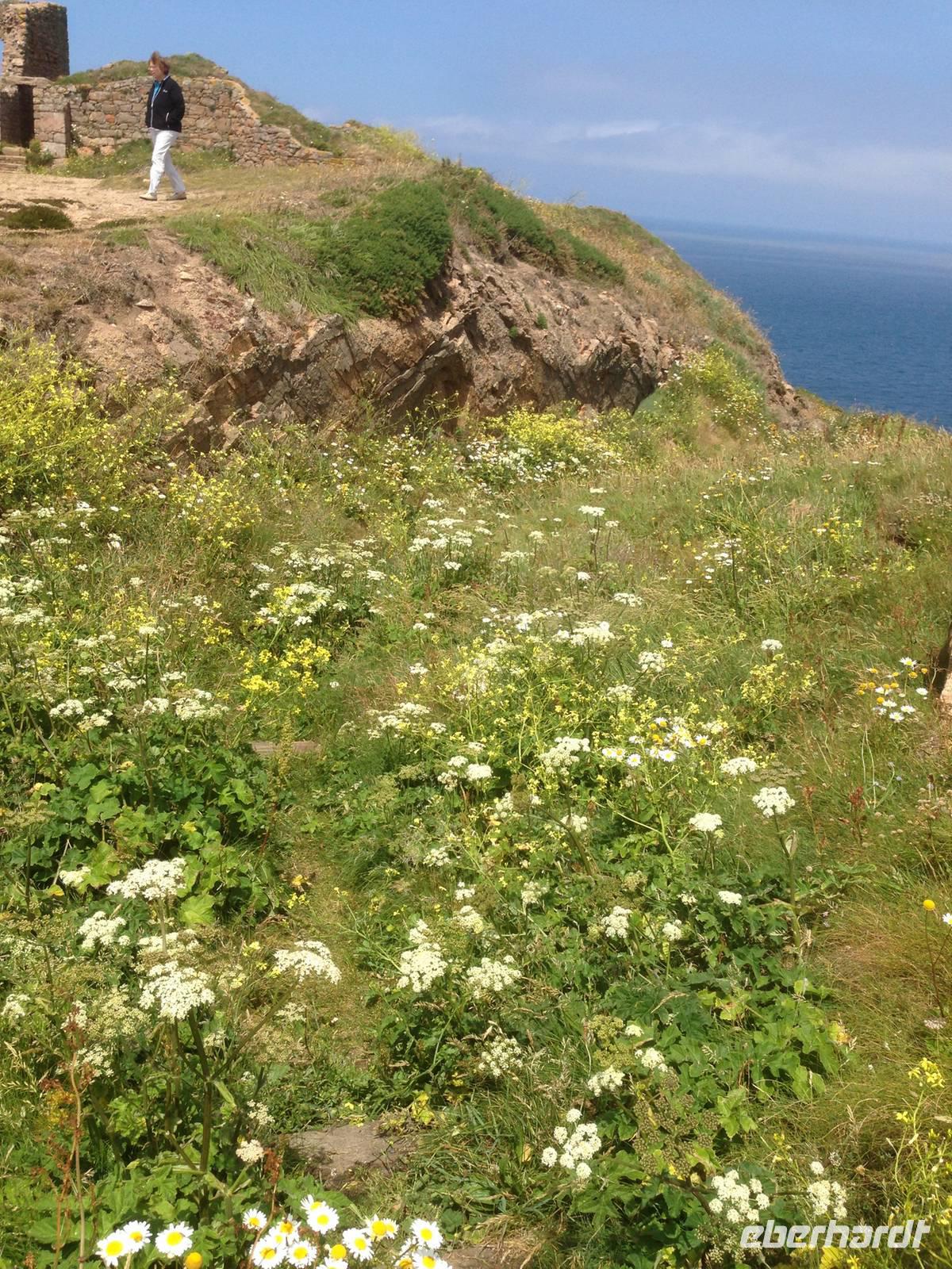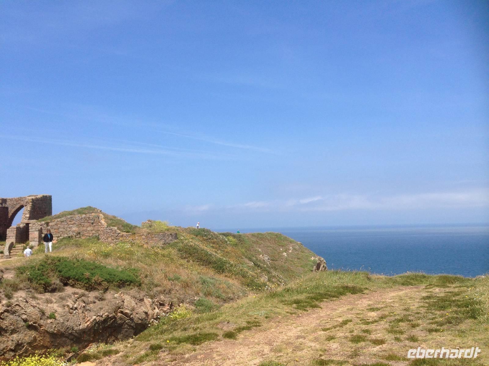 An der Plemont Bay vorbei geht es zum Grosnez Castle, wo wir einen kleinen Spaziergang einlegen. Diese Burg, heute nur noch eine Ruine mit einigen verschonten Mauern, hatte während des hundertjährigen Krieges eine wichtige Schutzfunktion.