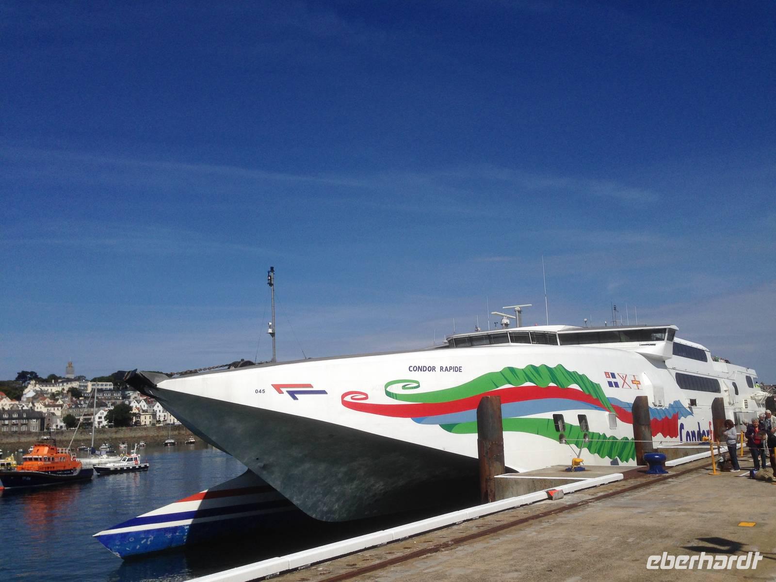 Nach vielen Eindrücken und Erlebnissen lassen wir den Tag auf Guernsey ruhig bei einem Kaffee oder Pimm's in einer Bar oder bei einem Stadtbummel ausklingen. Münzsammler versorgen sich hier mit Guernsey Pounds und Briefmarkensammler finden Prachtexemplare von Marken der Inseln Guernsey oder Alderney. Am späten Nachmittag geht es per Schiff zu zurück nach Jersey.