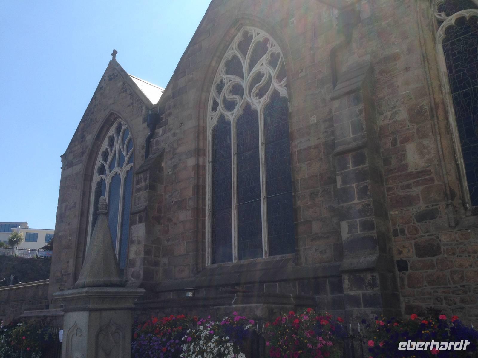 Unser Weg führt uns durch die belebte High Street, mit vielen Banken und Geschäften, hinunter zur Town Church. Diese Kirche besticht durch eine Vielzahl an bunten hochwertigen Glasfenstern.