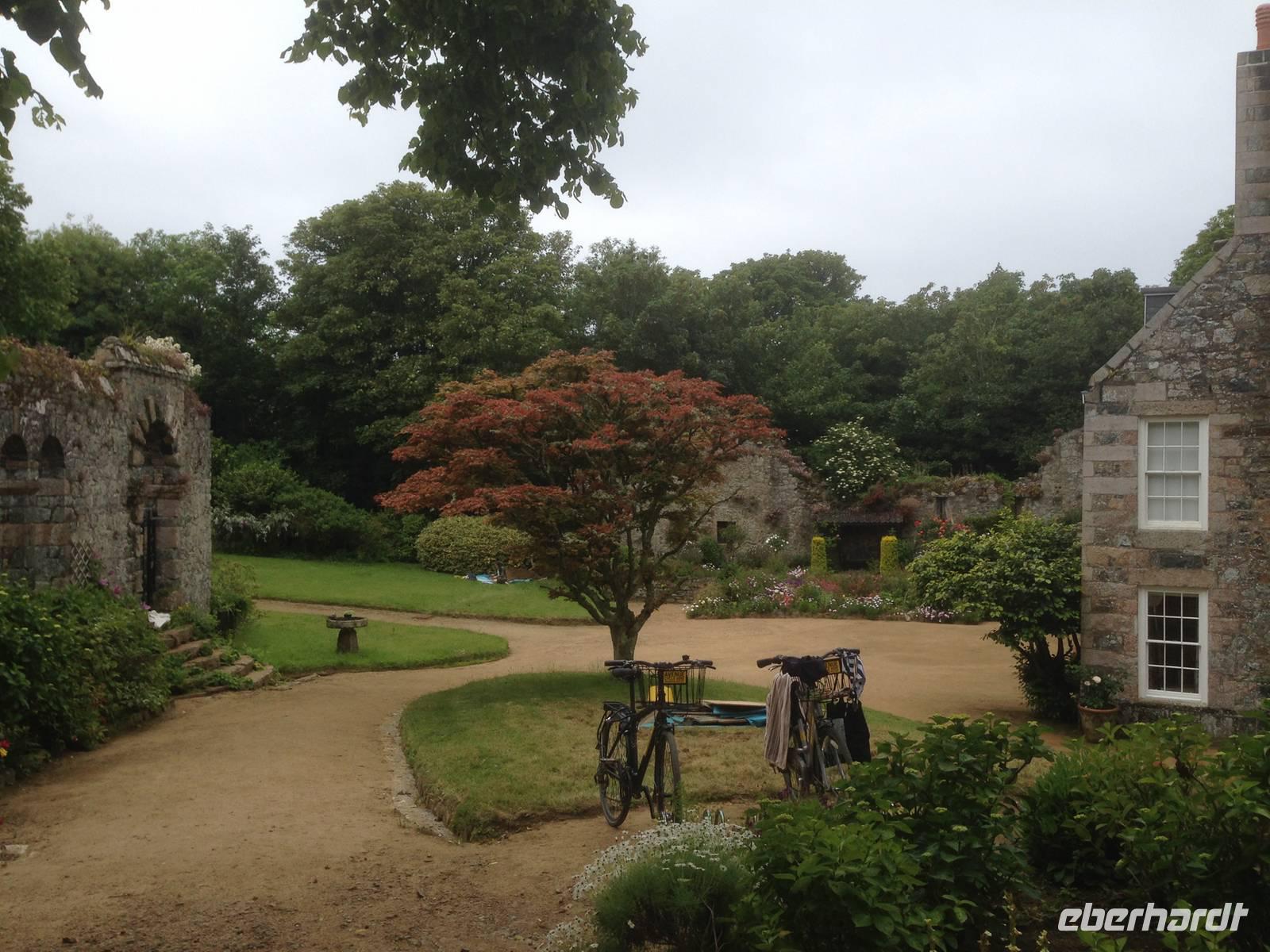 Wir verabschieden uns von dem sympathischen Gentleman und fahren weiter nach Rozel. Hier erwartet uns als kleine Überaschung ein Cream Tea im Garten der zauberhaften Hotelanlage Chauteau La Chaire. „Tea time" ist angesagt und wir genießen ihn traditionell mit Milch, dazu klassischen Scones mit Marmelade und „clotted cream" (Schlagsahne).