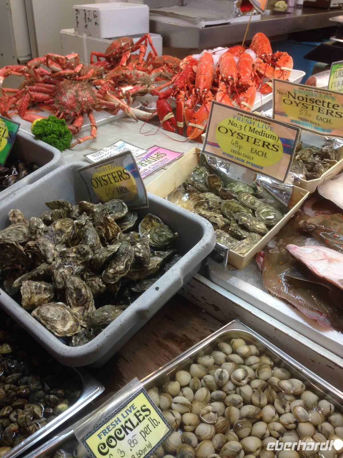 Auch der heutige Tag stellt uns wieder vor schwierige Entscheidungen. Jersey hat einfach zu viele schöne, interessante Eckchen, die zu Erkunden es sich lohnt. Heute stehen eine Inlandsrundfahrt, ein Zoobesuch oder eine Wanderung entlang des Corbiere Walks zur Auswahl. Wieder andere entdecken Geschichtliches, wie den World War Tunnel, einige fahren mit dem Bus durch ganz Jersey und besichtigen die Glaskirche. Einige der Gruppe begeben sich mit mir am Morgen zum Blumen - und Fischmarkt. Hier kaufen die Einheimischen von St. Helier ein. Von modernen Einkaufsboutiquen geht es hier in eine große viktorianische Halle mit vielen Einkaufsständen voller Blumen, Obst, Gemüse und allen Arten von Lebensmitteln. In der Mitte der Halle plätschert ein blumengeschmückter, verzierter Brunnen unter der Glaskuppel. Wir decken uns mit mit Souvenirs ein und begeben uns weiter durch die Einkaufsmeile der Kings Street hinunter zum Busbahnhof. Von dort geht es für einen Teil von uns weiter zum La Corbiere Leuchtturm. Bei Ebbe laufen wir zum Leuchtturm hinüber, leider ist dieser aber nicht mehr für Besichtigungen geöffnet. Unser Weg endet noch lange nicht, entlang des Corbiere Walks laufen wir in Richtung St. Brelade zur Lavendel Farm. Der Weg bringt uns auf völlig andere Gedanken und wir können die Lasten des Alltags etwas vergessen. Nach einer gefühlten Ewigkeit erreichen wir die Lavendel Farm und genießen bei Lavendel-Spezialitäten das schöne Ambiente. Nach eindrucksvollen Ausflügen erzählen wir unser Erlebtes bei leckerem Essen und einem Glas Wein.