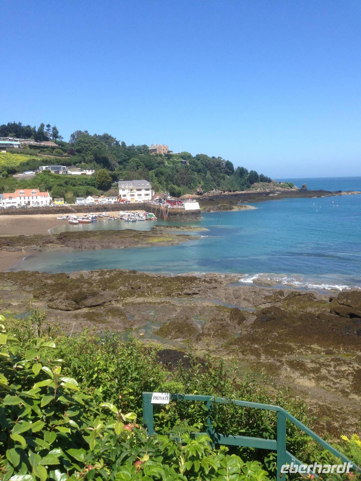 Wir fahren weiter durch St. Quen, der größten Inselgemeinde, vorbei am nicht enden wollenden Strand der St. Quen's Bay. Die Landschaft ist hier geprägt von einem weiten dünnen Streifen. Nächster Stopp ist am Crobiere Leuchtturm. Bei Ebbe kann man zum Leuchtturm hinüberlaufen, doch soll man die Flut immer im Auge behalten sonst kann dies schnell zu einem gefährlichen Unterfangen werden. Der Crobiere Leuchtturm markiert für Schiffe die gefährliche Süd-Westspitze von Jersey. Langsam nähern wir uns St. Helier, doch Heidi bringt uns noch zu einem echten Geheimtipp: ein kleiner Cliffwalk oberhalb der Beauport Bay versetzt uns mit Aussicht auf eine zauberhafte Bucht ins Träumen. Mit solch einem einsamen Traumstrand haben wir hier auf Jersey garantiert nicht gerechnet! Nachdem jeder ein Erinnerungsfoto geschossen hat, führt unser Weg an die St. Brelade's Bay. Wir besichtigen ein hübsches Kirchlein direkt vor der Strandpromenade und fahren dann weiter an den Strand. Am heutigen Nachmittag inspizieren wir die Einkaufsstraßen von St. Helier oder verbringen den Nachmittag am Strand.