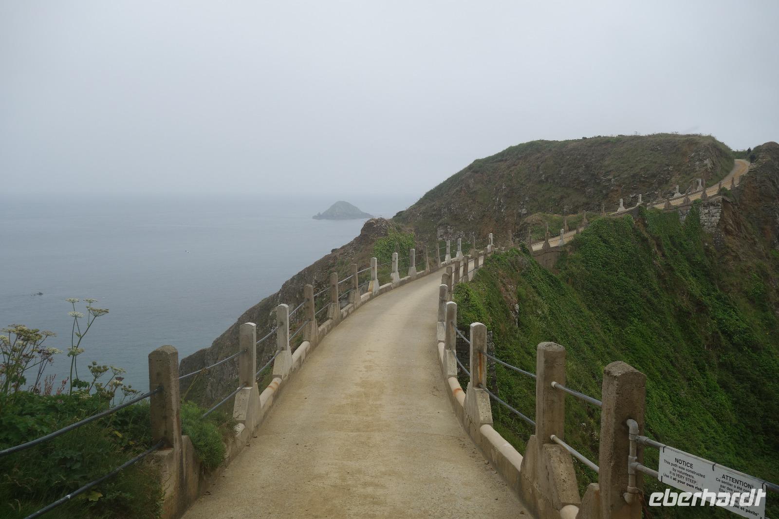 Wir Wanderer hatten Glück, wir waren etwa 20 min vor den anderen Gästen und fremden Touristen an der Brücke und konnten tolle Lanschaftsaufnahmen machen. Auf dem Rückweg sind wir noch etwas durch die geschmückte Stadt spaziert. Heute war auf Sark Vatertag, aber auch ein kleines Stadtfest war in vollem Gange. Die Läden waren also selbst zum Sonntag offen und bunt geschmückt. Auf den Straßen verkauften Händler von Muscheln, über Bücher und selbst genähte Kuscheltiere einfach alles, was das Trödlerherz begehrt.