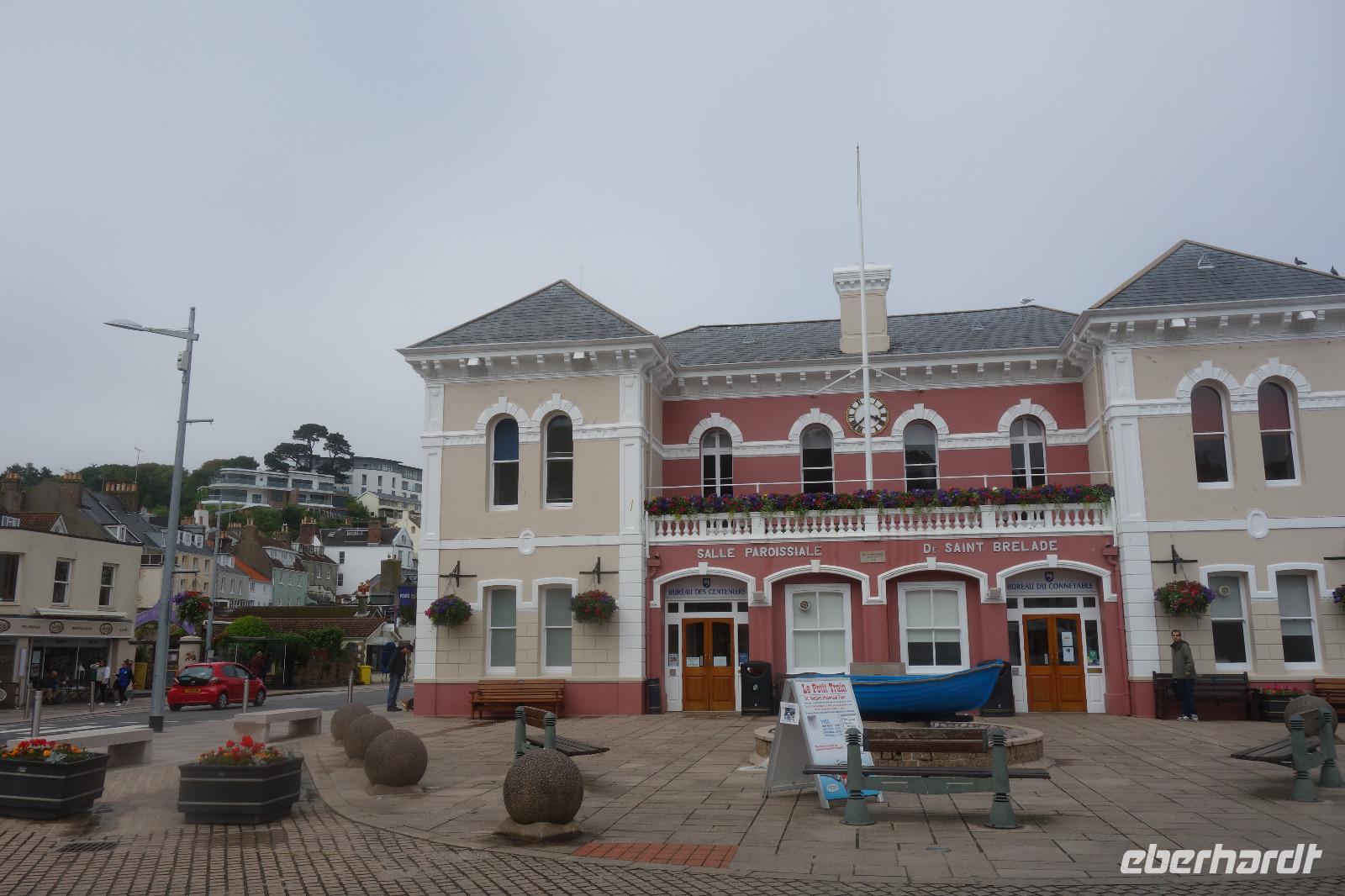 Auf die kurze Nacht sollte ein herrlicher Tag folgen: Heute ging es für uns 13 Reisebegeisterte nach Jersey. Mit der Hälfte der Gruppe flog ich ab Dresden über Düsseldorf, die andere Hälfte sollte ein wenig Zeitversetzt direkt ab Berlin fliegen. So kamen alle in den Genuss, einmal mit einer kleinen Propellermaschine zu fliegen. Unser erstes kleines Erlebnis! Nach der Ankunft checkten wir ein, bezogen die ersten Zimmer, die bereits fertig waren und setzten uns dann in die Lounge, um die ersten Reisedetails durchzugehen. Viele hatten vorher schon Geld getauscht und waren müde, den anderen bot ich an, gemeinsam in der Stadt nach einem Geldautomaten zu suchen. Es stellte sich heraus, dass es auch wirklich nicht schwer war. An der Rezeption bekamen wir eine Stadtkarte und los ging die kleine Erkundungstour.