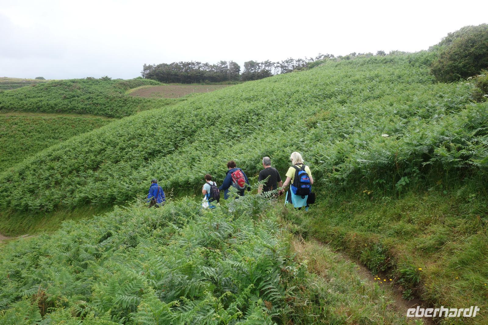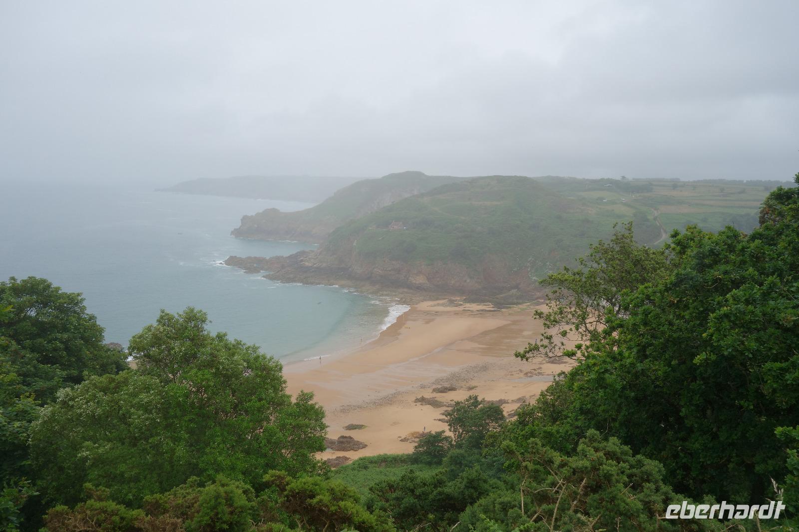 Unsere erste anspruchsvollere Wanderung begann am Grosnez Castle. Normalerweise sollte man von hier aus Guernsey und Sark erkennen können, aber um diese Uhrzeit war es noch ein bisschen zu diesig. Zusammen mit Eberhard, unserem Wanderreiseleiter, liefen wir an den Klippen bergauf und bergab zur idyllisch gelegenen Bucht Creve de Lecq, wo wir uns mit einem typischen Jersey Eis belohnen konnten und sogar Heidi, die Reiseleiterin der Rundreisegruppe, kurz trafen.