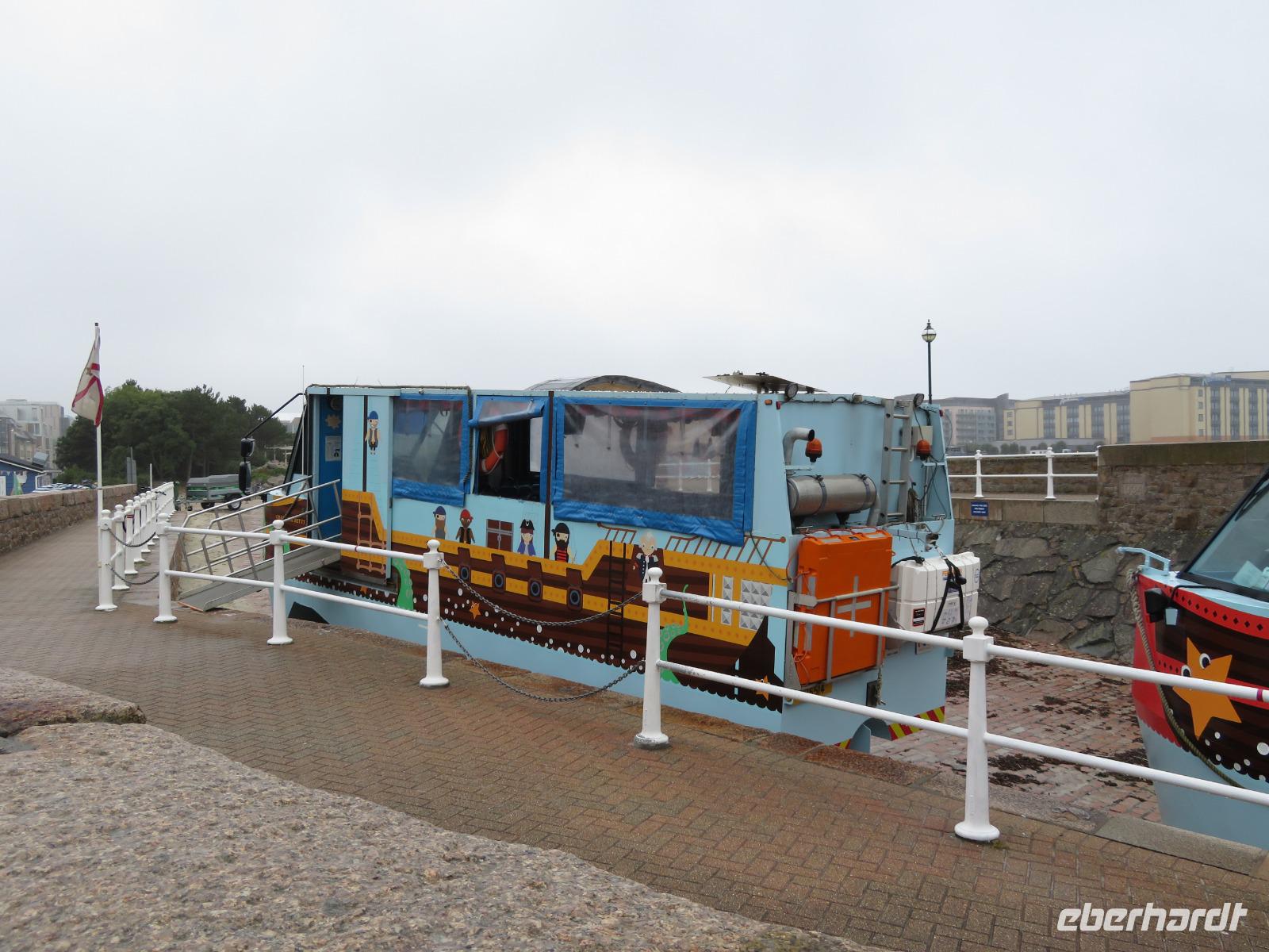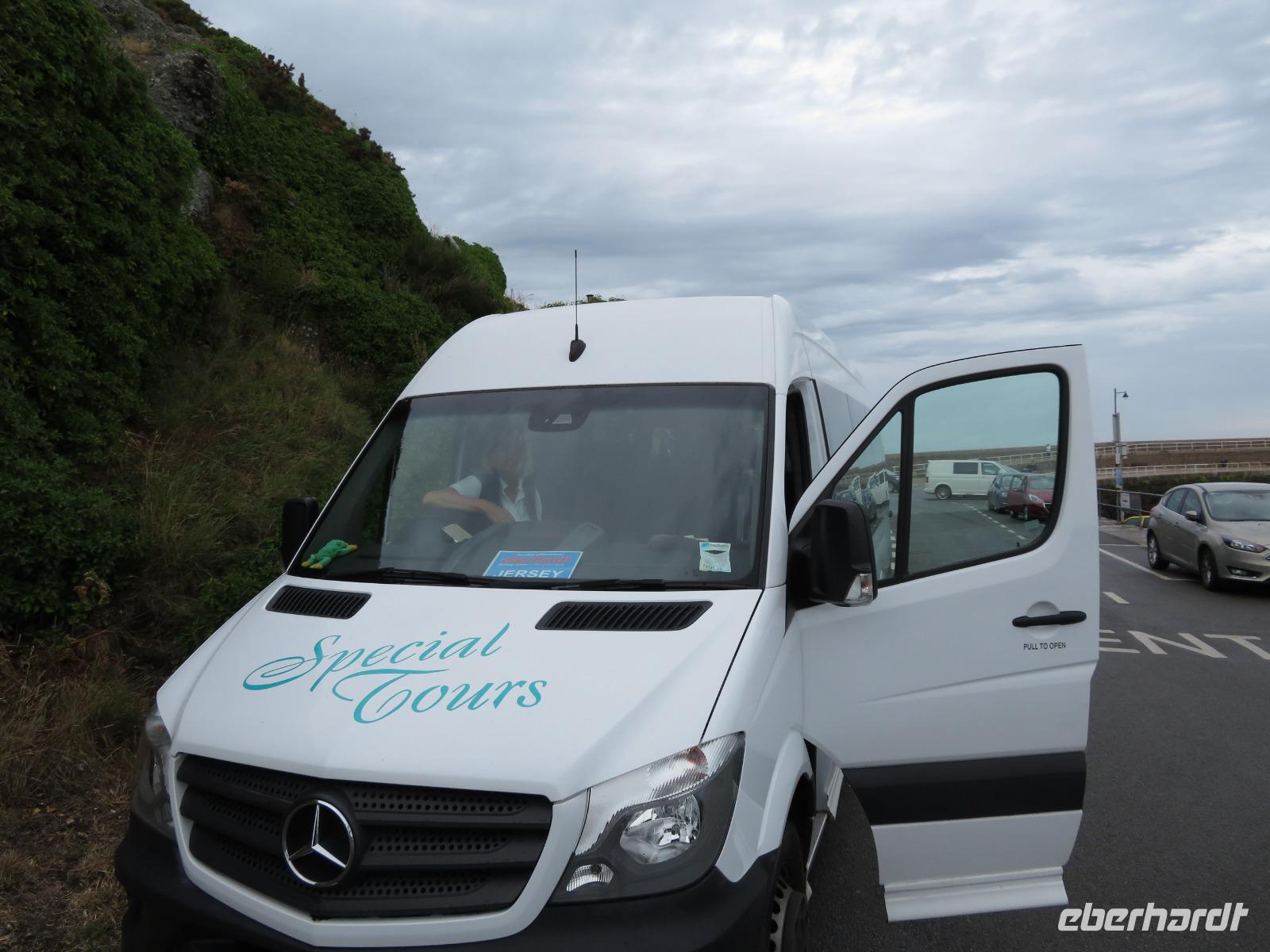 Am Morgen um 09.30 Uhr startete unsere Inselrundfahrt. Sie führte uns vorbei an Gorey zur St. Catherine's Bay. Das Wetter war windig und kühl, eine willkommene Abwechslung zum heißen Sommer in Deutschland.