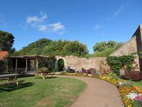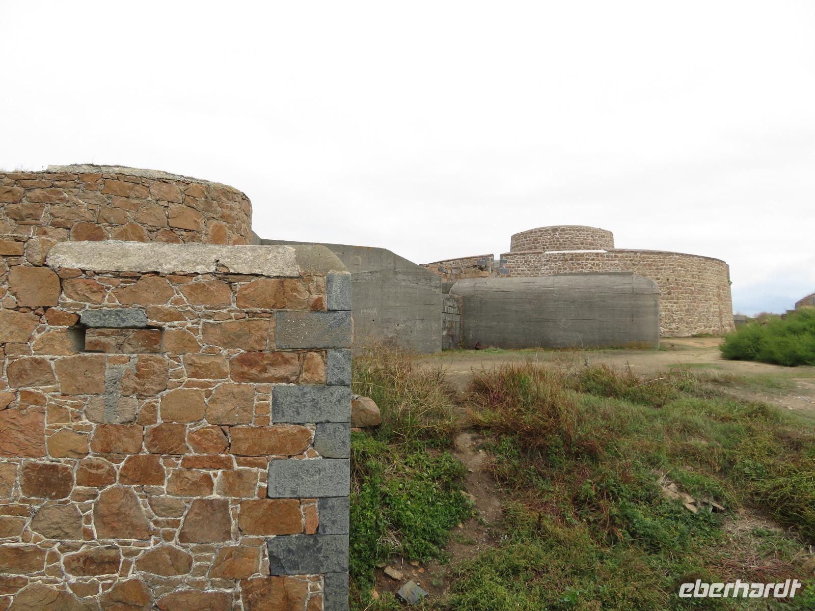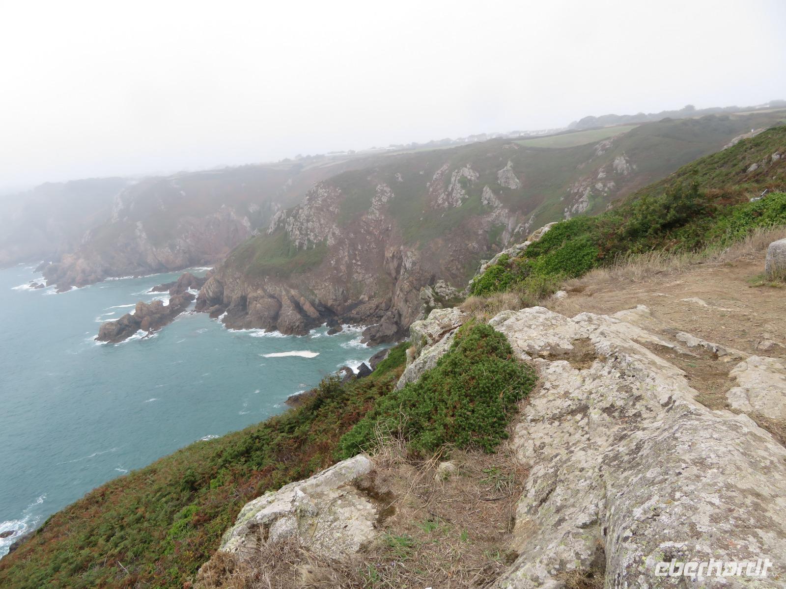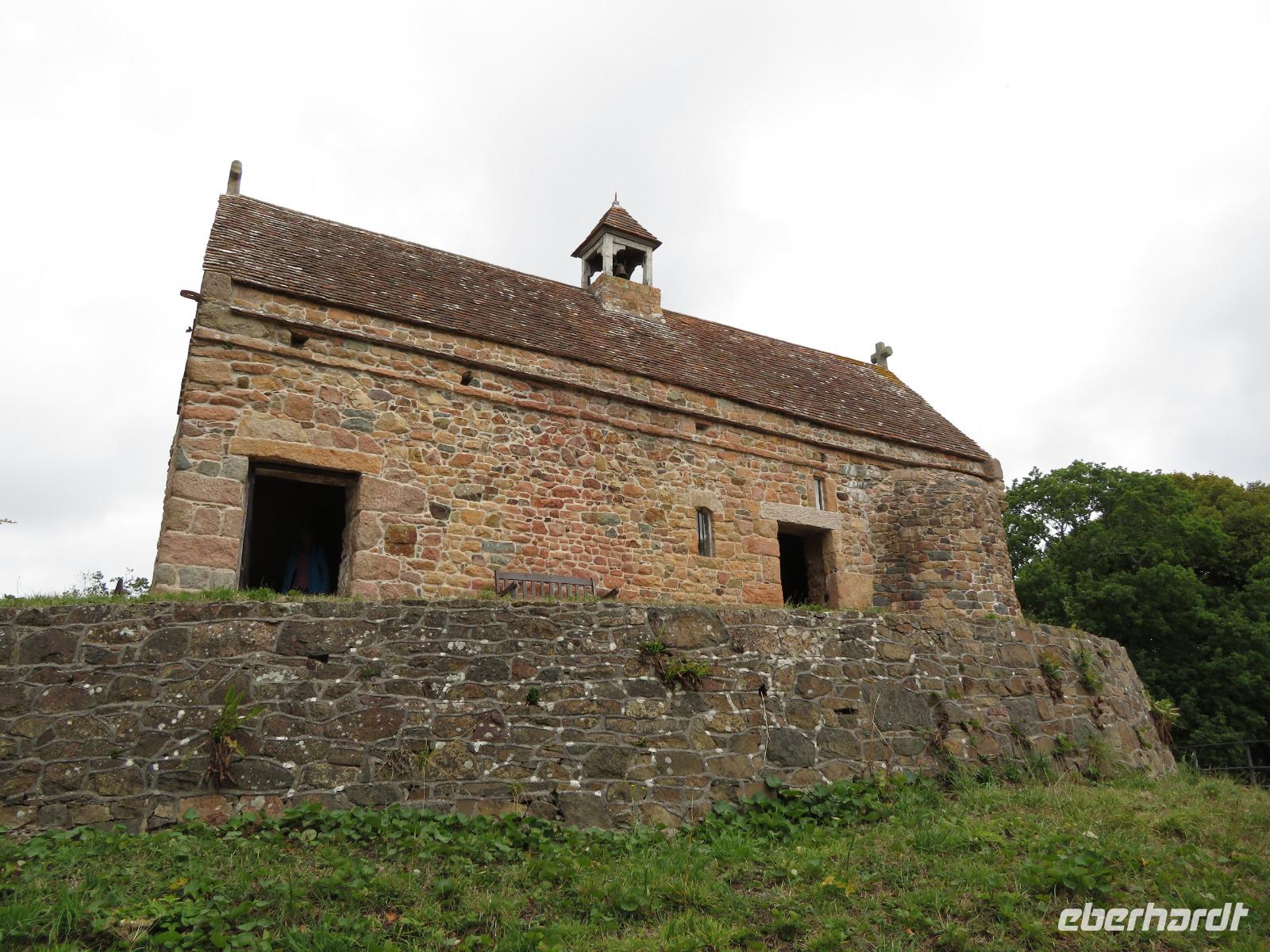 Am Grosnez Castle im Nordwesten der Insel hielt der Minibus für den nächsten Fotostopp. Leider fing es kräftig an zu regnen, sodass wir die Nachbarinseln leider nicht sehen konnten. Entlang der St. Ouen's Bay mit kurzen Stopp zum Kartoffelkauf fuhren wir über den Cobiere Leuchtturm zur Fisherman's Chapel in der St. Brelades Bay. Der Eingang war von einer Hochzeit schön mit weißen Rosen geschmückt und auch der Friedhof mit seinen alten Grabsteinen war interessant anzuschauen.