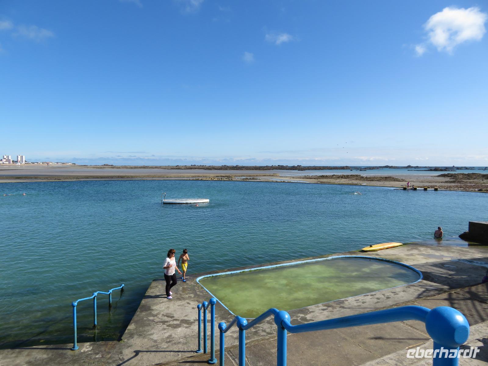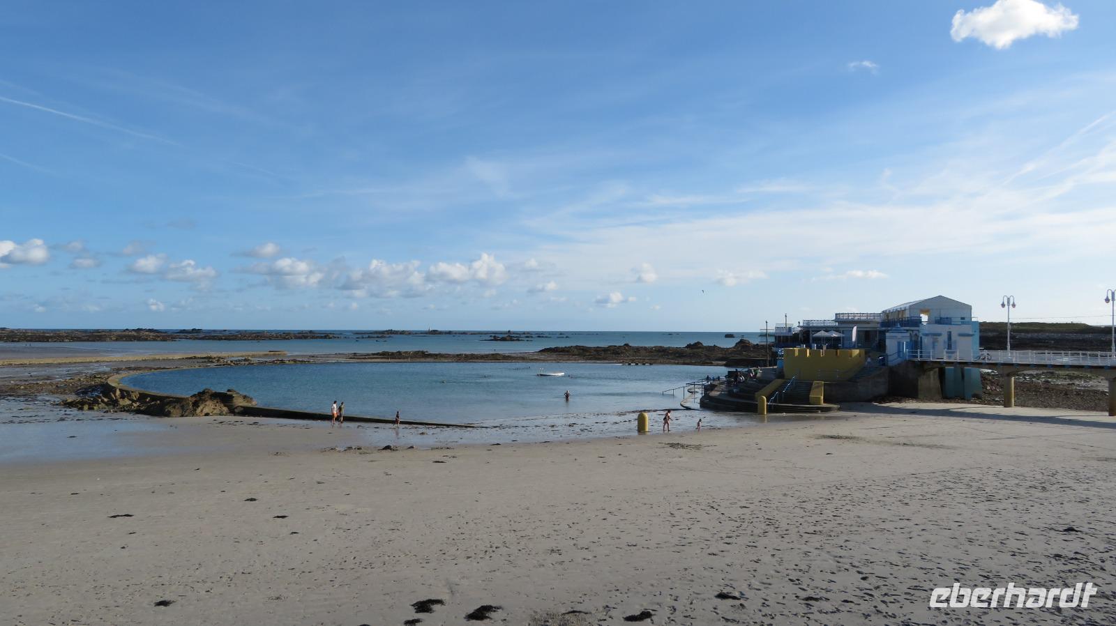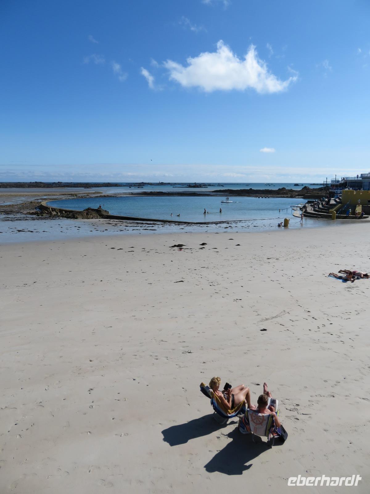 In St. Aubin teilte sich unsere Gruppe: Ein Teil lief weiter, einige fuhren zurück entlang der Küste zum Hotel, andere mit dem Bus nochmals in die Gegenrichtung und besichtigten den Portelet Beach, ein wunderschöner Sandstand mit kristallblauem Wasser.