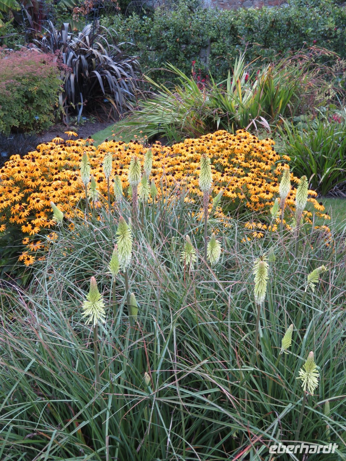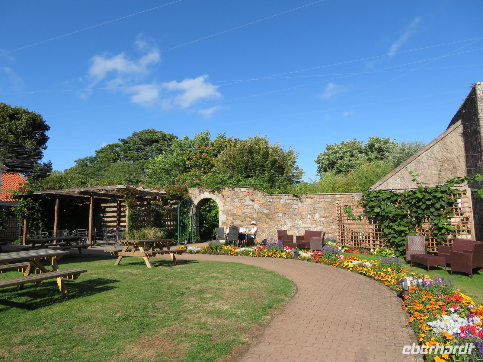 Danach fing es leider an zu regnen, sodass eine Überfahrt zum Elizabeth Castle aufgrund der schlechten Sichtbedingungen nicht möglich war. Einige Gäste gingen daher ins Maritime Museum, andere fuhren mit mir in den Botanischen Garten, wo wir wiederum viele Pflanzen bestaunten und den Japanischen Garten besichtigten.