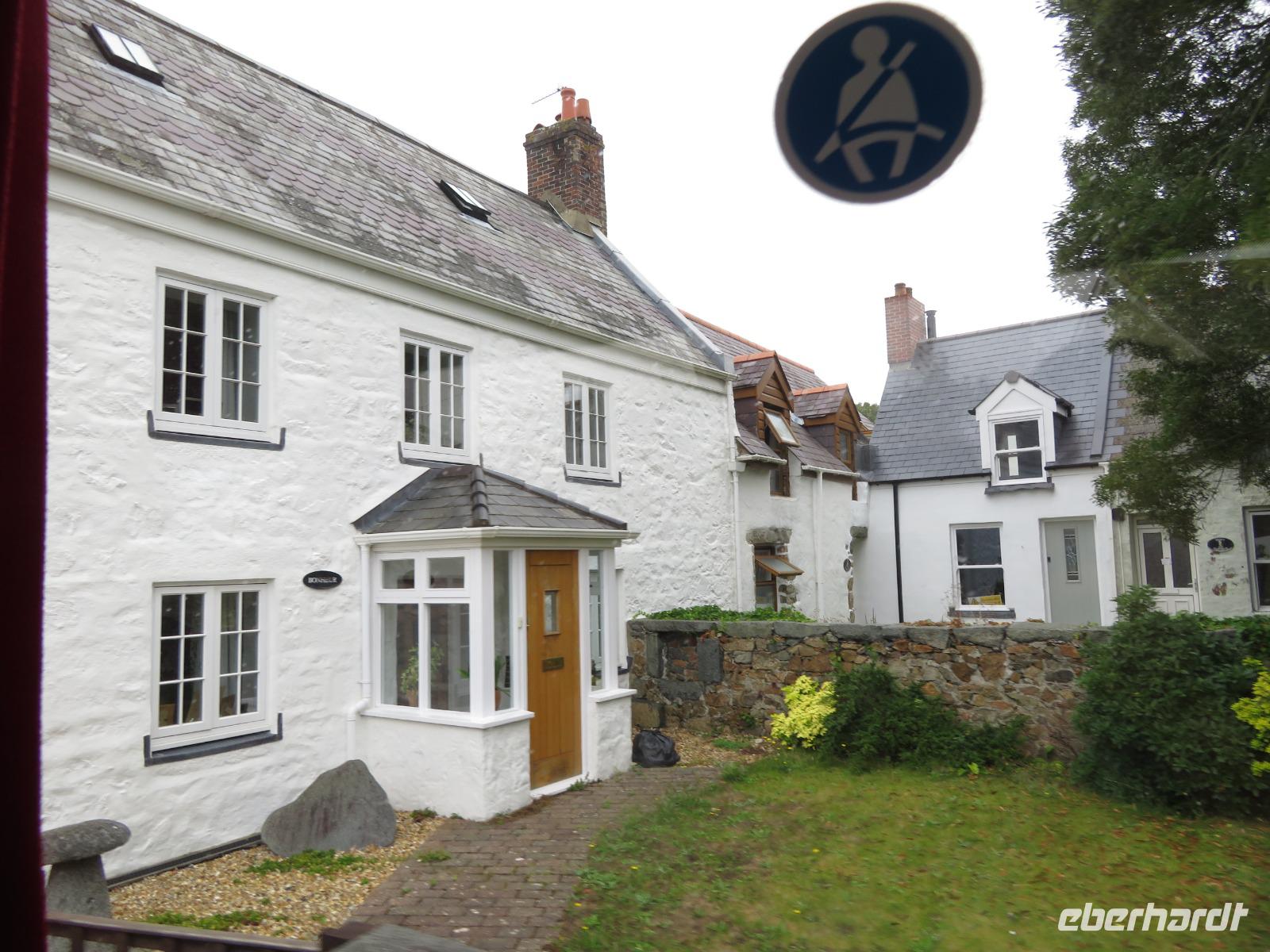 Unser örtlicher Bus wartete bereits auf uns und wir fuhren zunächst in den Süden der Insel, wo wir eine Klippenwanderung unternahmen. Die weitere Fahrt führte uns am Flughafen vorbei nach St. Andrews. Wir sahen Guernsey-Kühe und besichtigten die kleinste Kapelle der Welt.