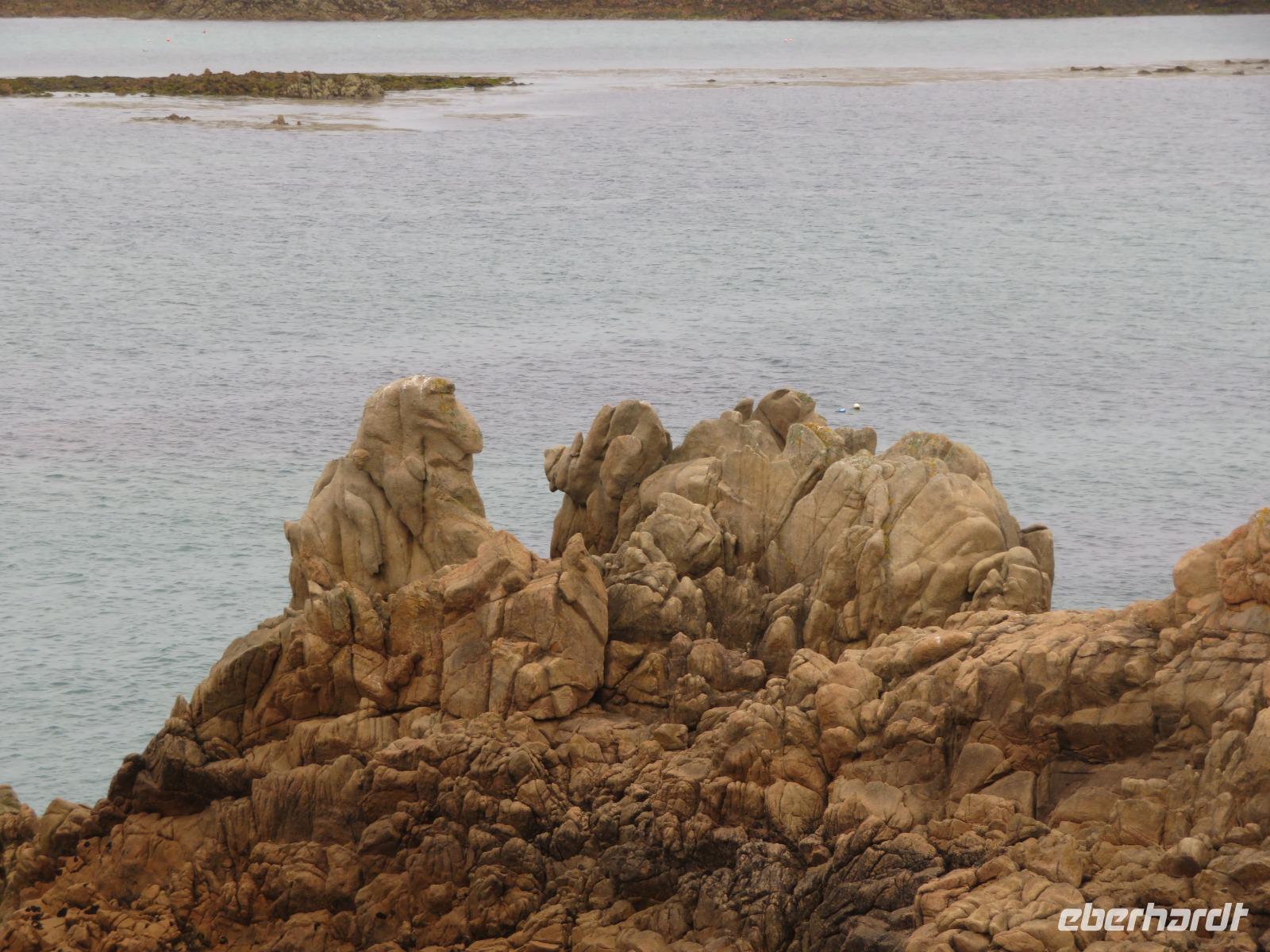 Wir fuhren weiter in Richtung Norden und aßen Soljanka und Pilzcremesuppe zum Mittag. Nach Besichtigung einer weiteren kleinen Festung mit Bunkern fuhren wir am „Zoo" vorbei. Dies ist eine Felsformation mit einem steinernen Affen, einem Kamel und einem Löwen. In der Inselhauptstadt St. Peter Port hatten wir anschließend noch ein wenig Freizeit für Erkundungen und Souvenirs. Am späten Nachmittag brachte uns die Fähre zurück nach Jersey.