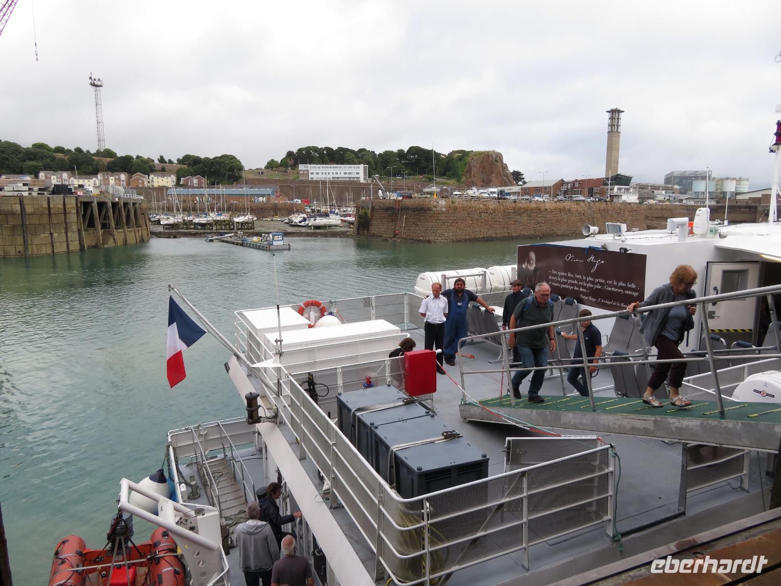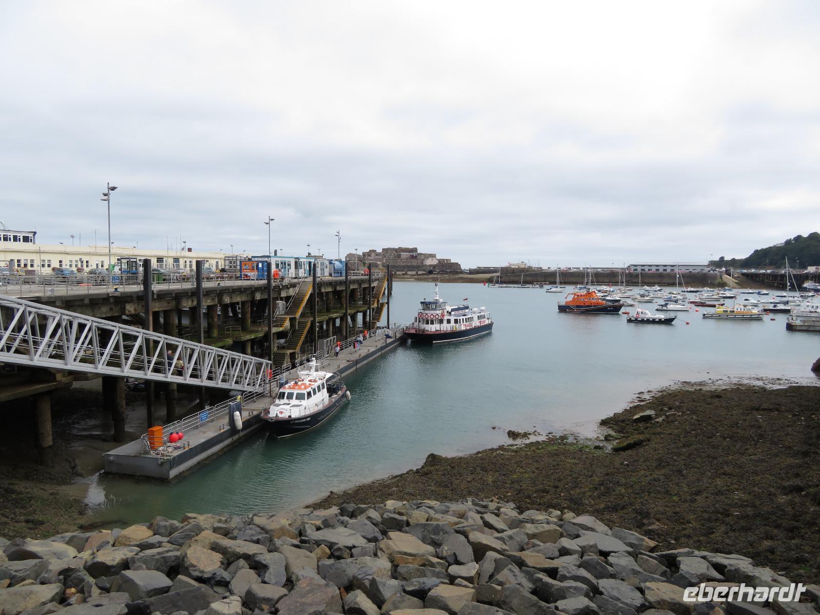 Nach dem Frühstück brachte uns Heidis Ehemann Ernst zum Hafen von St. Helier. Von hier begann unsere Überfahrt nach Guernsey. Leider war der Wellengang recht stark, sodass einige Gäste froh waren, als nach 80 Minuten die Überfahrt beendet war.