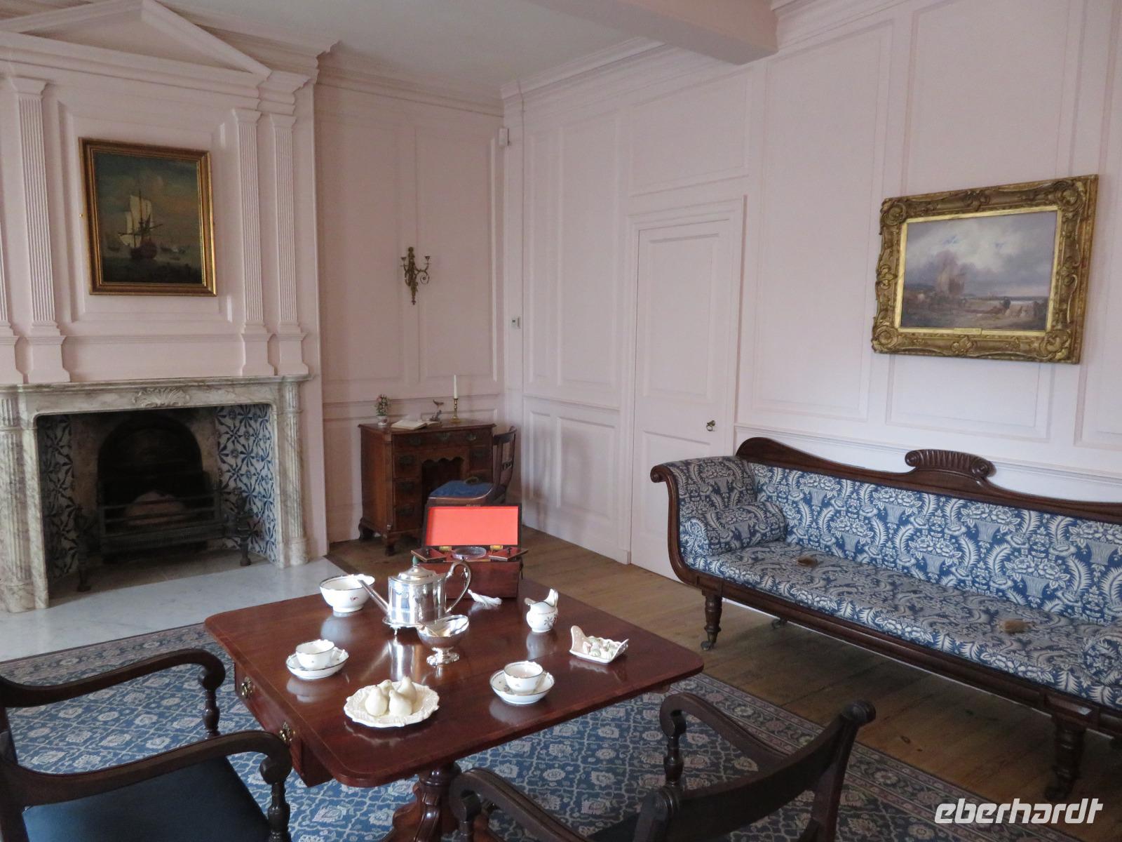 Der Wetterbericht für diesen Tag sah leider nicht so gut aus. Trotzdem traf sich ein Teil unserer Gruppe wie immer um 09.30 Uhr an der Rezeption. Es war ein kleiner Rundgang mit dem Besuch einiger Museen geplant. Zunächst besichtigten wir den Rosengarten und die Kriegsgräberstätte im Howard Davis Park. Im Anschluss schauten wir ein gregorianisches Haus aus dem 18. Jahrhundert an. Die Erklärung in der Küche und das Haus mit seinen Zimmern und Einrichtungsgegenständen fanden alle sehr interessant.