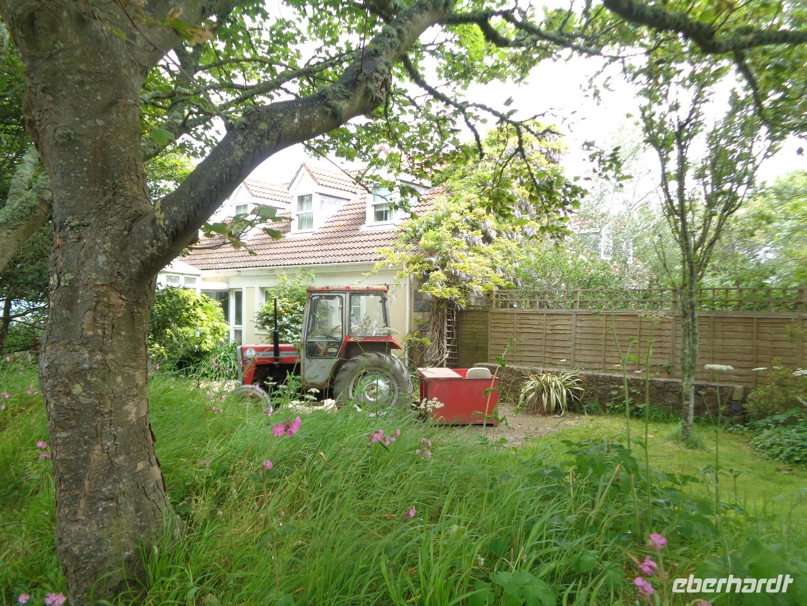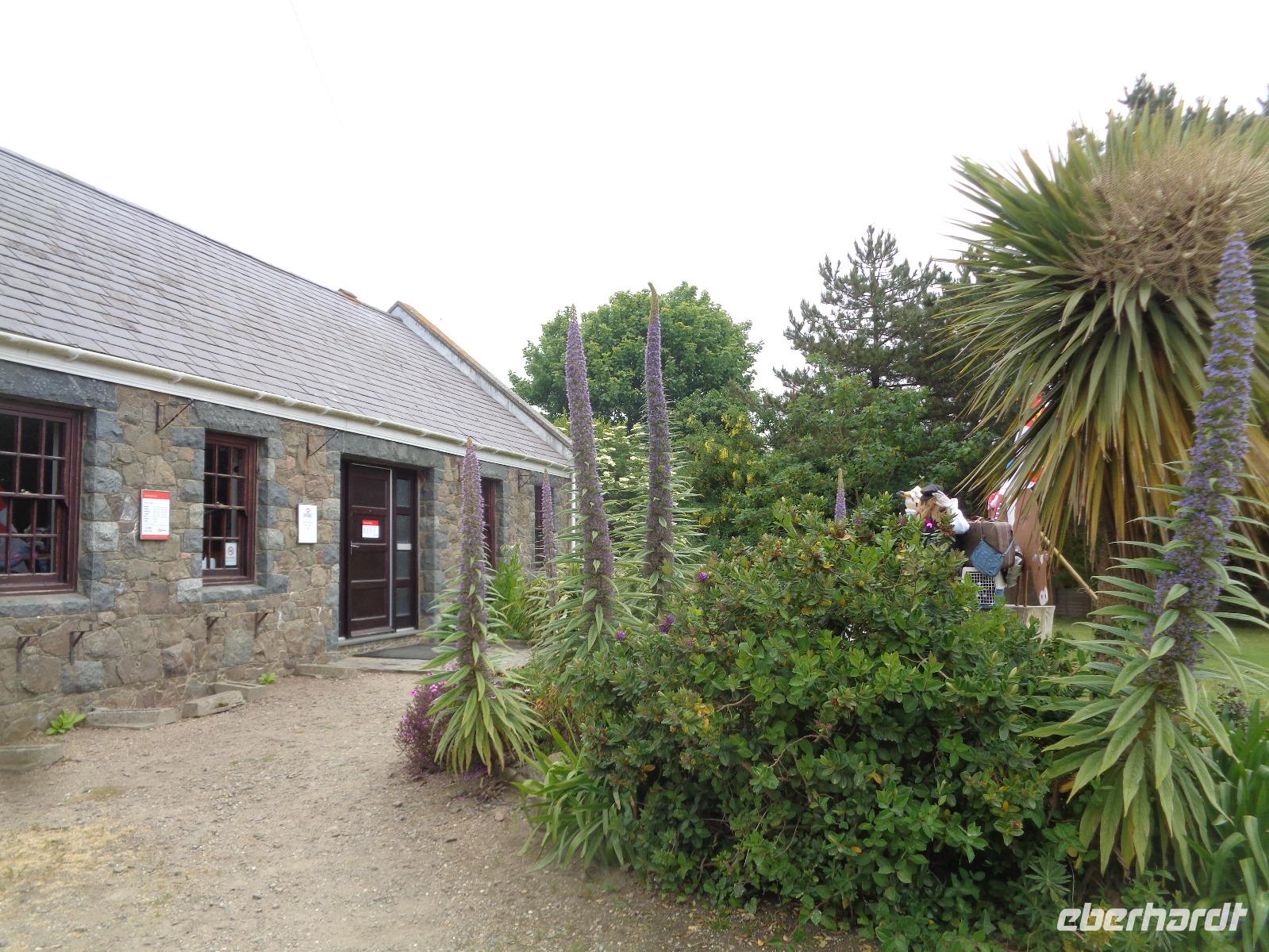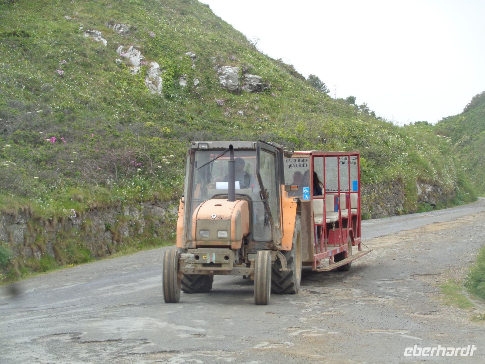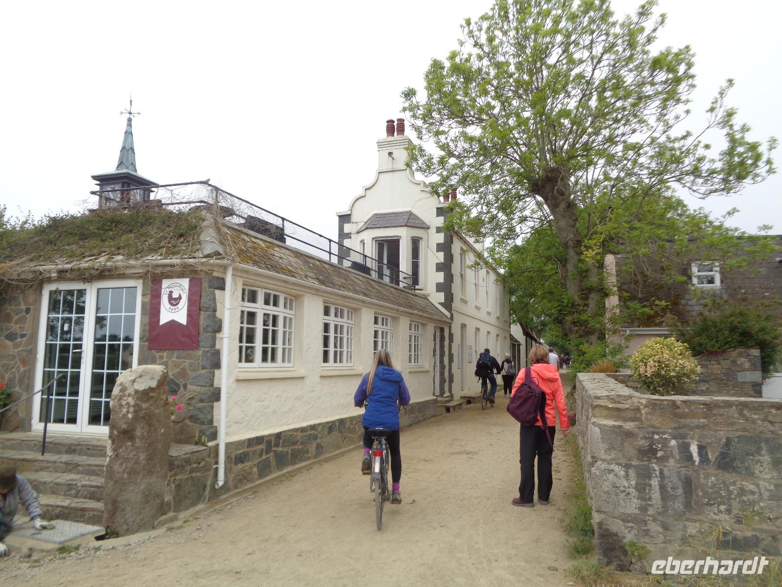 Nach dem Frühstück erwartet uns heute gleich der erste Höhepunkt der Reise, unser Ausflug nach Sark. Heidi bringt uns zur Fähre und wir schippern ca. 1 Stunde über den Ärmelkanal. Abenteuerlich geht es mit dem Traktor zur Avenue. Wir amüsieren uns über diese Bezeichnung der einzigen bemerkenswerten Geschäftsstraße auf der Insel mit dörflichen Strukturen, sind aber froh für diesen Service, den der Weg nach oben ist - wie immer - ziemlich steil. Dann spazieren wir gemeinsam zur Seigneurie.