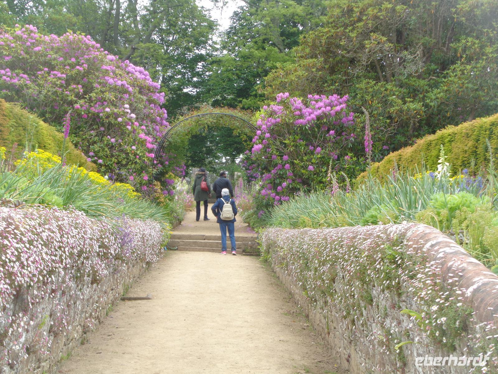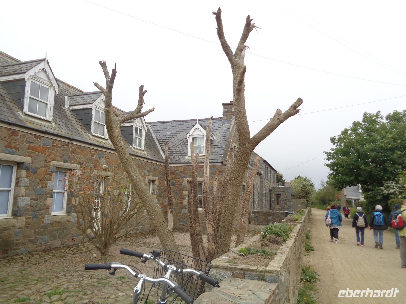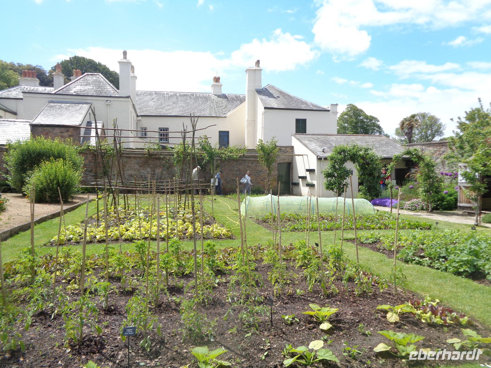 Die Gartenanlage ist ein Traum und zu jeder Jahreszeit sehenswert. Selbst das Gemüse und die Kräuter sind eine Augenweide. Alles gedeiht prächtig und jeder Garteninteressierte weiß, wieviel Arbeit da drin steckt. Die Fotoapparate klicken pausenlos, bis das Signal zur Mittagspause kommt. Auf dem Rückweg kommen wir beim Inselarzt vorbei, der mit Traktor oder Fahrrad zu seinen Patienten unterwegs ist, denn Autos dürfen hier überhaupt nicht fahren. Wir spazieren bis zum kleinen Gefängnis aus der Mitte des 19. Jhd., in das nur 2 Spitzbuben passten. Viel mehr gab es auf der Insel auch nicht, schließlich kannte jeder jeden.