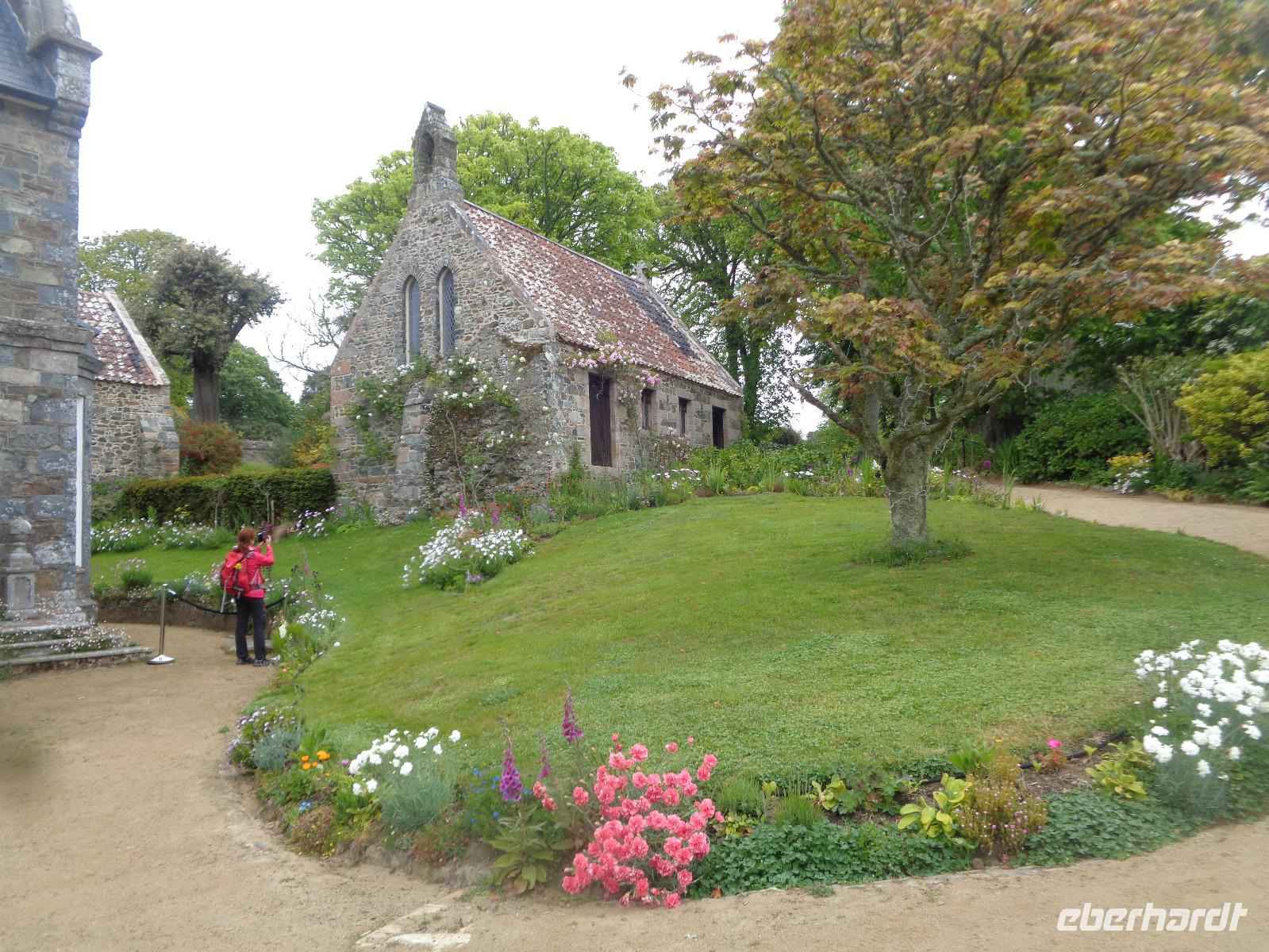 Heute wird wieder zeitig gefrühstückt, denn Heidi möchte uns rechtzeitig zur Fähre nach Guernsey transferieren. Alle Gäste nehmen teil und staunen nicht schlecht über den heutigen Wellengang. Im Hafen von St. Peter Port wartet unser Inselbus zur Tour auf der zweitgrößten Kanalinsel. Zum Bailiwick of Guernsey gehören auch Alderney, Sark, Herm und einige unbewohnte Felsen, die bei den Seevögeln begehrte Nistplätze sind. Auf Guernsey selbst leben 65.000 Einwohner auf 65 km², 1/3 davon in der Hauptstadt. Die Südküste der Insel besticht durch fast 100 m hohe Steilküsten und fällt zum Norden hin ab. Im Südosten gibt es malerische Buchten und im Nordosten flache, wunderschöne Sandstrände wie die Vazon Bay oder Cobo Bay. Wir unternehmen eine kleine Wanderung an der Steilküste und fahren dann nach St. Andrew, um die zauberhafte Little Chapel zu besichtigen. Bruder Déodat hatte den Traum, eine kleine Kopie der Grotten und der Basilika von Lourdes zu bauen und begann im März 1914 mit seinem Projekt. Als der Bischof von Portsmouth nicht durchpasste, demolierte er sein Werk 1923 wieder und baute neu. Wir bewundern die heutige Version inmitten einer ländlichen Gegend mit den berühmten Guernsey-Kühen. Sie gehören zu einer milchbetonten Rasse mit hellem und braunem Fell und ihre fette, goldgelbe Milch soll besonders geschmackvoll mit hohem Beta-Carotin-Gehalt sein. Die Jersey-Kühe sind aber hübscher, meint nicht nur Ernst. Aber dann gibt es da noch die goldenen Ziegen auf Guernsey. Wir können eine „liebevolle Rivalität" zwischen den Bewohnern von Jersey und Guernsey nicht überhören. Die Jersianer bezeichnen die Guernseyer auch gern mal als „donkeys", aber Esel haben wir auf der Insel nicht gesehen. Dafür blühende Wiesen, grünes Weideland und Blumen überall. An der Rocquaine Bay legen wir unsere Mittagspause ein und kehren in das Strandlokal „Guernsey Pearl" ein. Es ist genügend Zeit, um auch das angrenzende Schmuckgeschäft zu besuchen oder am Strand das Fort Grey, das heute ein Museum über gestrandete Schiffe an der Westküste beherbergt, zu sehen. Weiter geht es zum Fotostopp am Fort Hommet, das mit seinen noch erhaltenen Bunkern und Kasematten, einem Martello-Turm und Mauern aus der viktorianischen Zeit ein hervorragendes Motiv vor blauem Wasser, blauem Himmel und gelben Blüten bietet. Vorbei an kleinen Orten, vereinzelten Höfen mit Gebäuden aus Stein und sogar einigen Dolmen fahren wir wieder nach St. Peter Port, um noch etwas Freizeit zu genießen. Unser Busfahrer lässt uns an den Candie Gardens raus und wir schlendern durch den Park, vorbei an der Statue von Königin Victoria und dem Denkmal von Victor Hugo, der 15 Jahre lang auf Guernsey im Exil lebte. Wir erreichen die Einkaufsmeile der Hauptstadt, die an der St. Peter´s Town Church endet und in kleine Seitengassen mündet. Jeder gestaltet sich seine Freizeit und alle treffen sich wieder zur Abfahrt der Fähre. Die Rückfahrt verläuft ruhiger und das Abendessen ist wieder ein abschließender Höhepunkt des Tages.