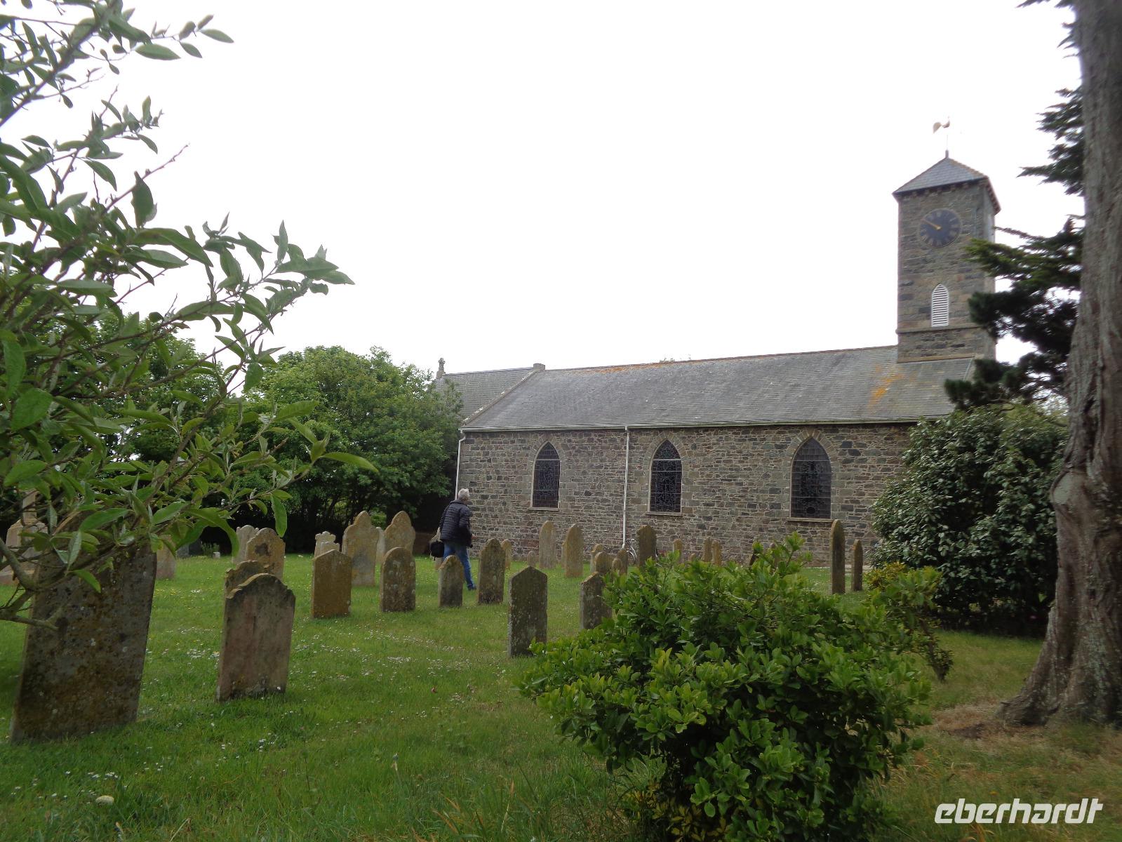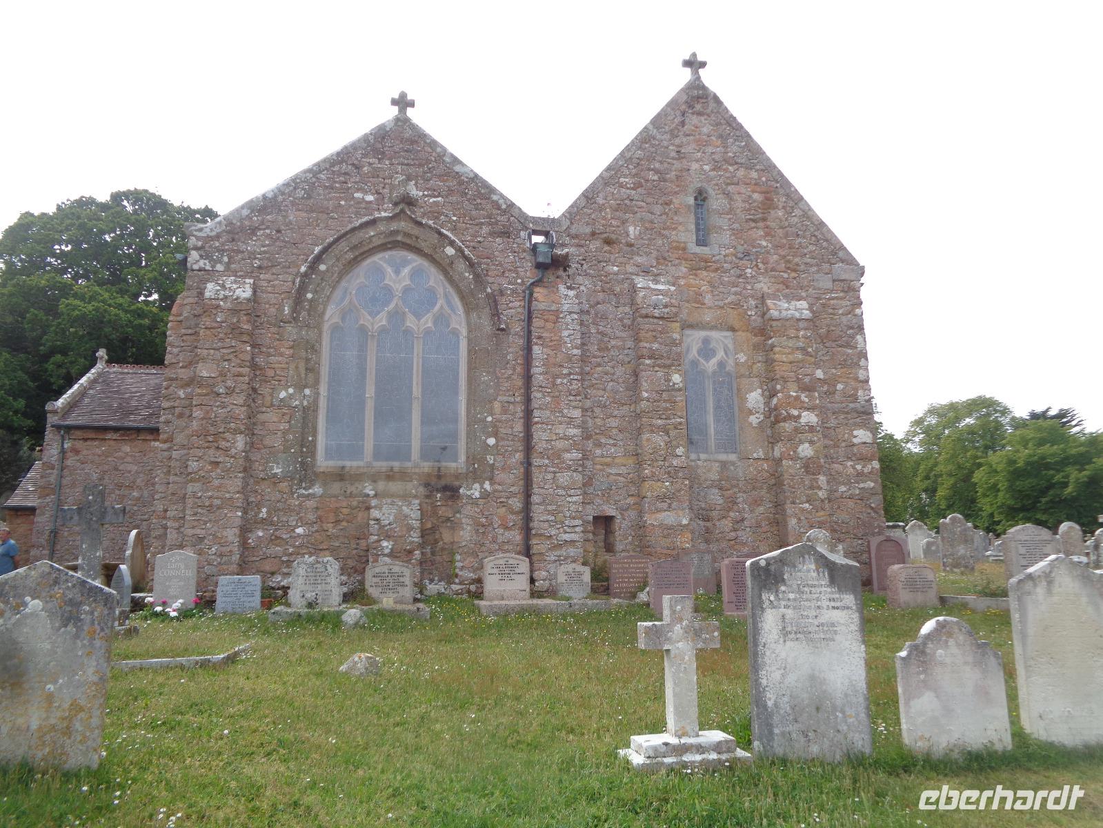 Nach diesem schönen Vormittag haben wir uns eine gute Mittagspause verdient und fahren zu einem typischen Pub in der Portelet Bay. Nachdem wir uns gestärkt haben, hat Ernst noch ein Bonbon für uns parat, die Besichtigung der Matthew's Glass Church. Der französische Glaskünstler René Lalique hat hier 1934 ein Unikat geschaffen und die 1840 geweihte anglikanische Kirche in eine Glaskirche verwandelt, die heute ein Besuchermagnet in St. Lawrence ist.