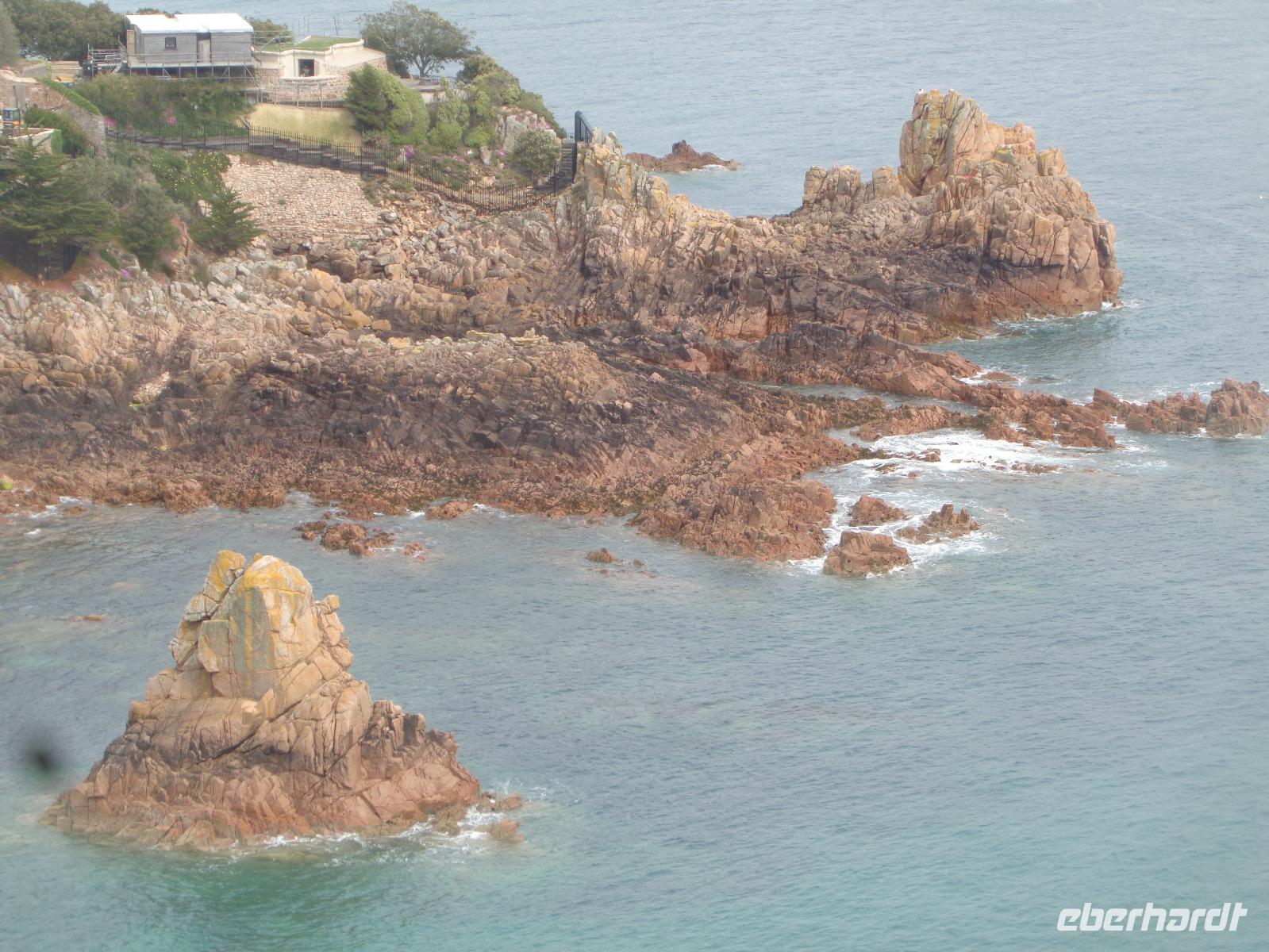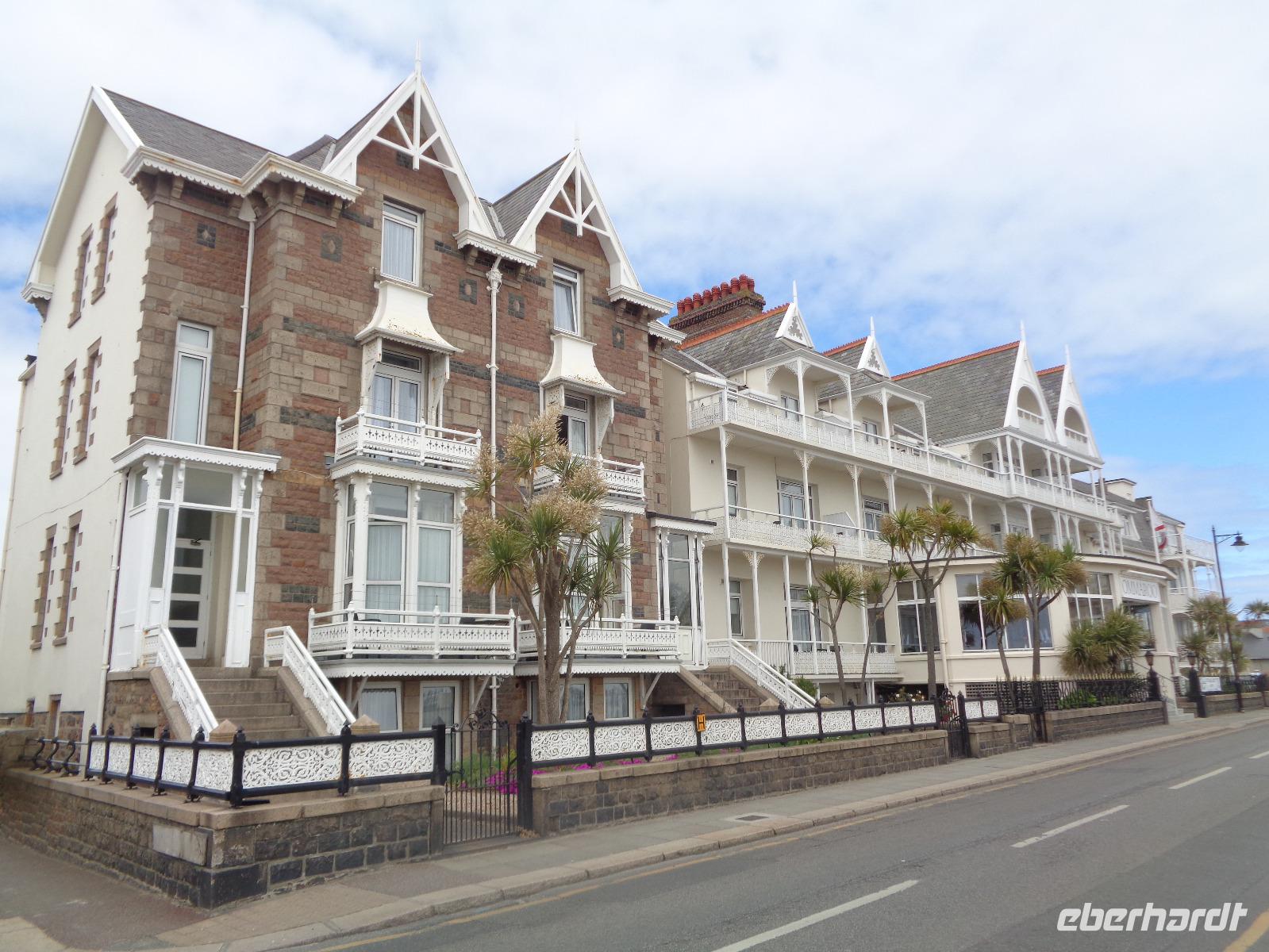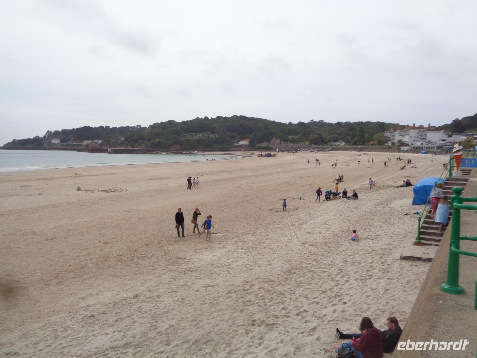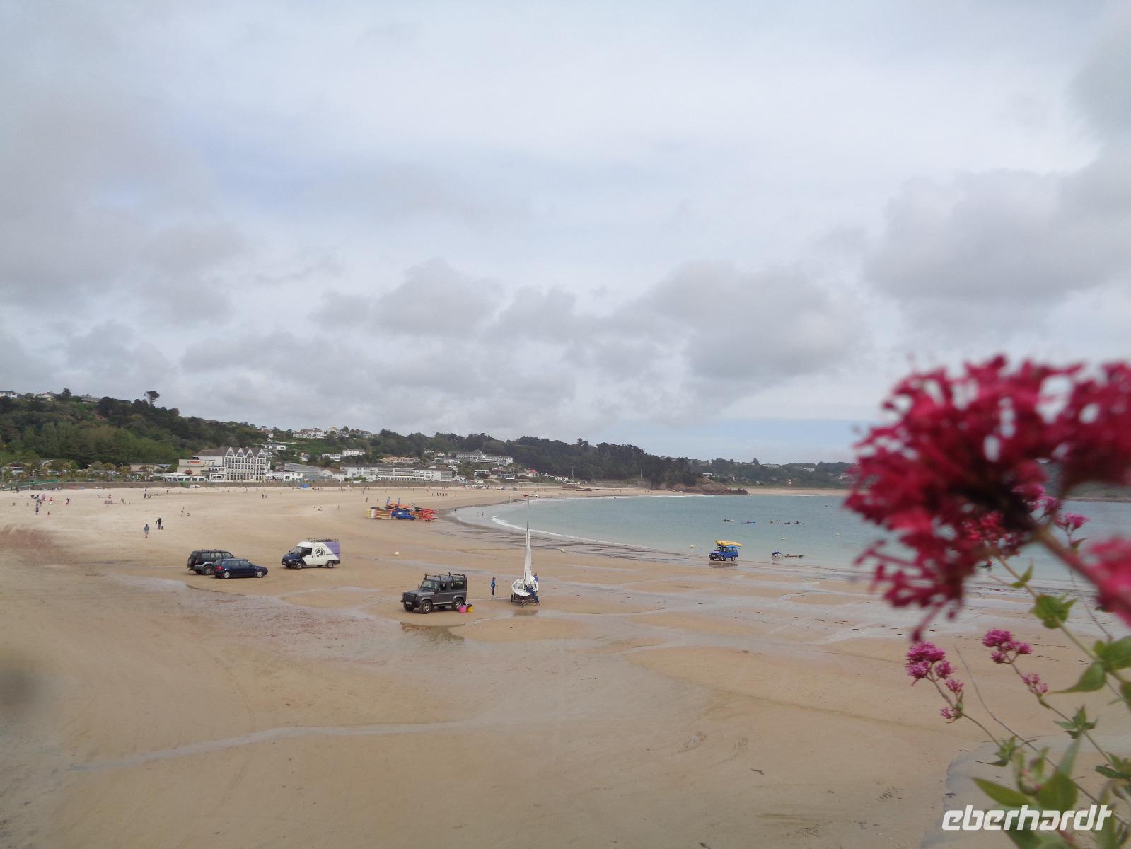 Heute machen wir eine Inselfahrt mit Ernst. Zunächst muss man sich erst einmal daran gewöhnen, dass wir links fahren. Wir beginnen direkt vor dem Hotel und fahren entlang der Greve d' Azette, passieren den Hexenstein der Parish Saint Clement, eine der 12 Gemeinden von Jersey, und erfahren einiges über den Aberglauben und die Sportbegeisterung auf der Insel. Jersey verfügt über drei 18-Loch-Golfplätze und Clubmitglied zu werden, ist fast unmöglich. Unser erster Halt ist in Gorey, wo sich die erste Verteidigungsburg auf dem Mont Orgueil befindet. Bouley Bay, St. John's Bay, Bonne Nuit Bay folgen, bis wir zur Greve de Lecq Bucht mit einem traumhaften Badestrand kommen. Hier verbringen wir unsere Mittagspause und das eine oder andere Souvenir wechselt den Besitzer. Dann geht es weiter Richtung Norden. Ernst erzählt uns viel über soziale und wirtschaftliche Bedingungen für die Jersianer, ihre Arbeits- und Lebensbedingungen und die Lieblingsbeschäftigungen der Insulaner. Von der Liebe zur Natur zeugt der Palmenpark mit Azaleen und Rhododendren in allen Farben, aber auch der Zoo in der Gemeinde Trinity, in dem man sich sehr erfolgreich um den Erhalt bedrohter Arten bemüht. Die Jersianer sind sich ihrer Umweltverantwortung bewusst und kümmern sich ganz selbstverständlich um Schönheit und Sauberkeit auf ihrer Insel. Wir erfahren viel über die Familien de Carteret und Martell, Cognac und Martello-Türme, über Geschichte und neue Entwicklungen auf der Insel. Es geht vorbei an der Pferdegaloppbahn und dem Gefängnis für bis zu 180 Insassen, bevor wir die nächsten Fotostopps am Grosnez Castle, dem Corbière Leuchtturm von 1783 und der bezaubernden Beauport Badebucht machen. Wir halten inne an der St. Brelade's Parish Church und der Fishermen's Chapel, in der früher die Kanone aufbewahrt wurde, die jede Gemeinde haben musste. Dann machen wir eine Pause an der wohl schönsten Sandbucht St. Brelade's Bay und genießen Kaffee oder Eis in der Sonne. Dann geht es zurück Richtung St. Aubin's Bay. Ernst berichtet uns, dass auch Karl Marx und Friedrich Engels hier waren und im „The Trafalgar" wohnten. Bis 1936 gab es hier noch eine Eisenbahn, doch als der Bahnhof abbrannte, wurde der Bahnverkehr eingestellt.