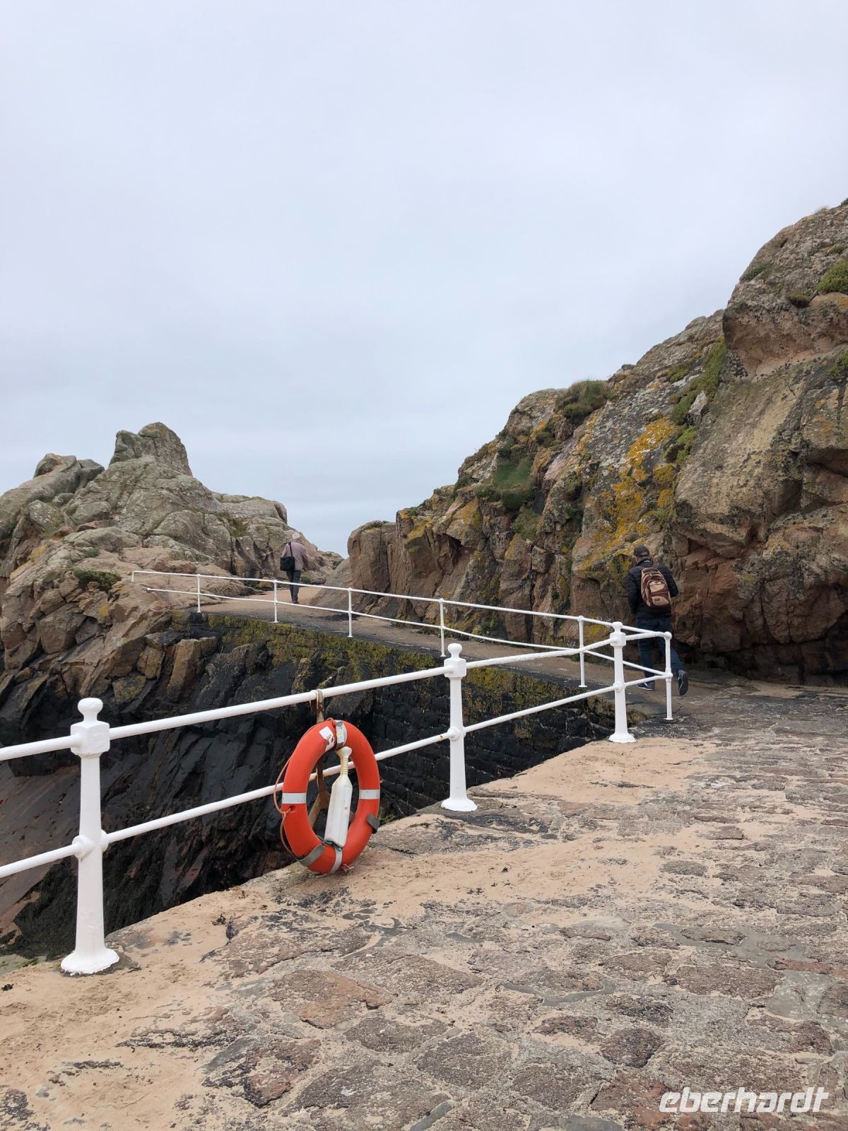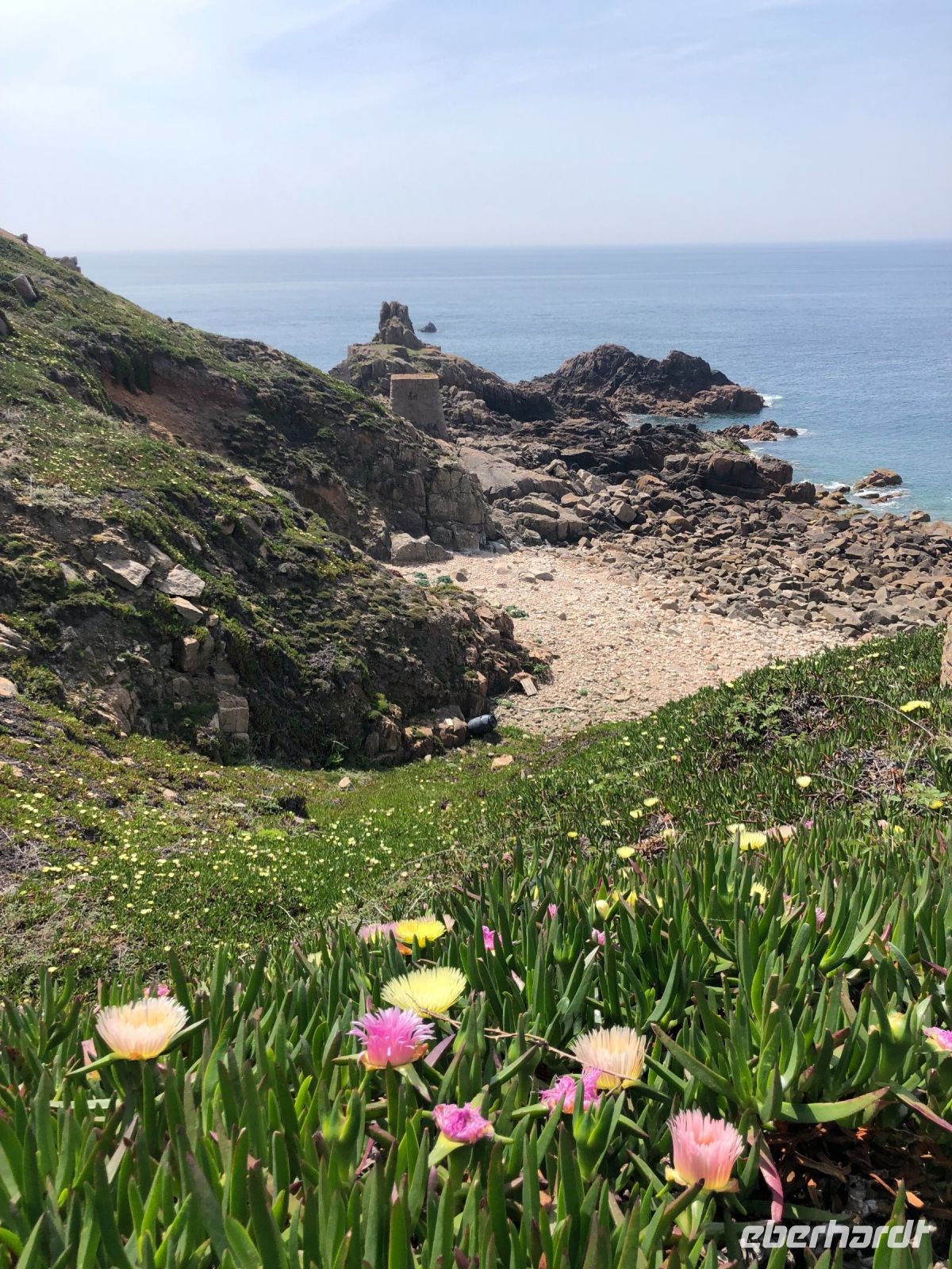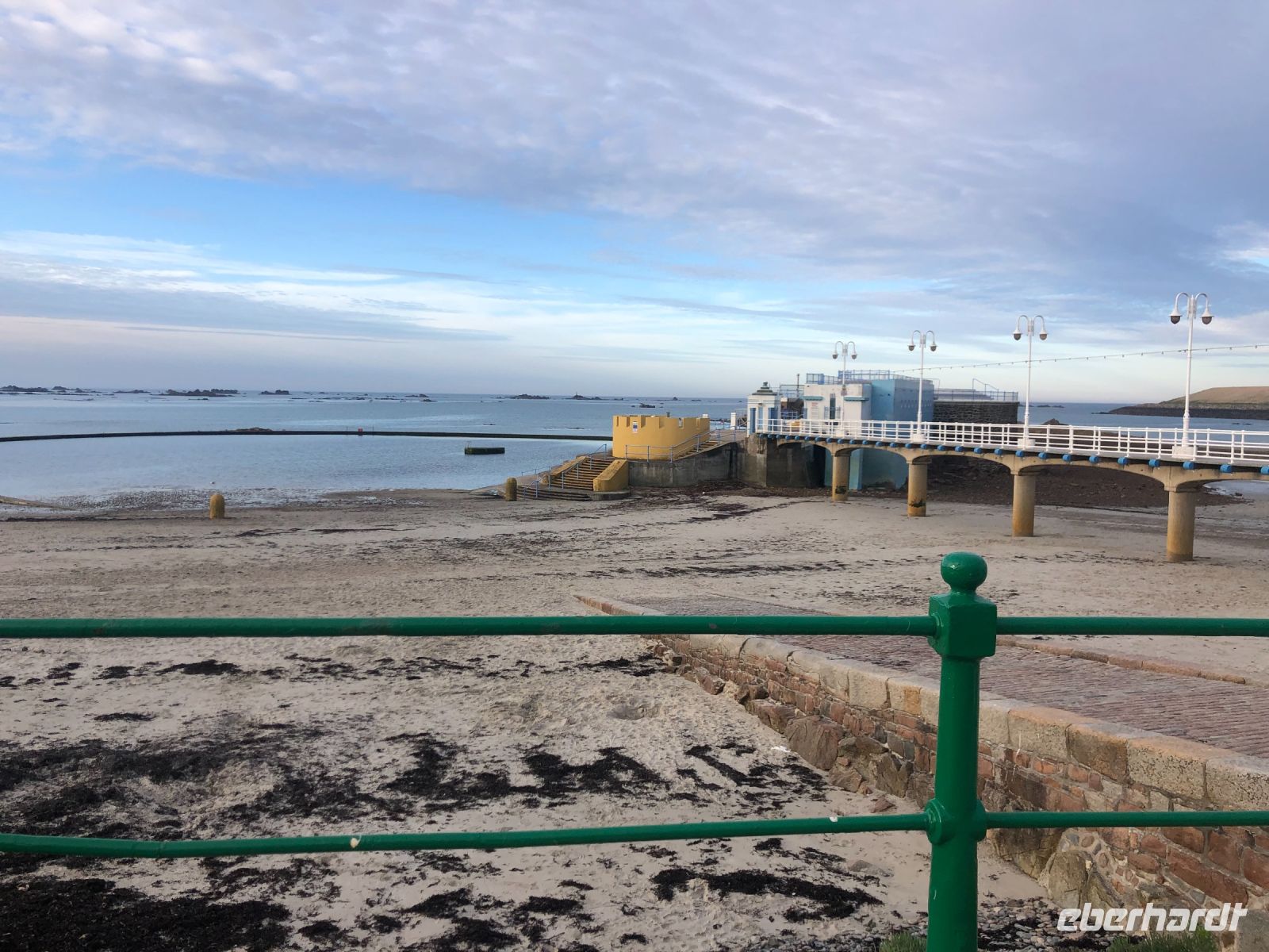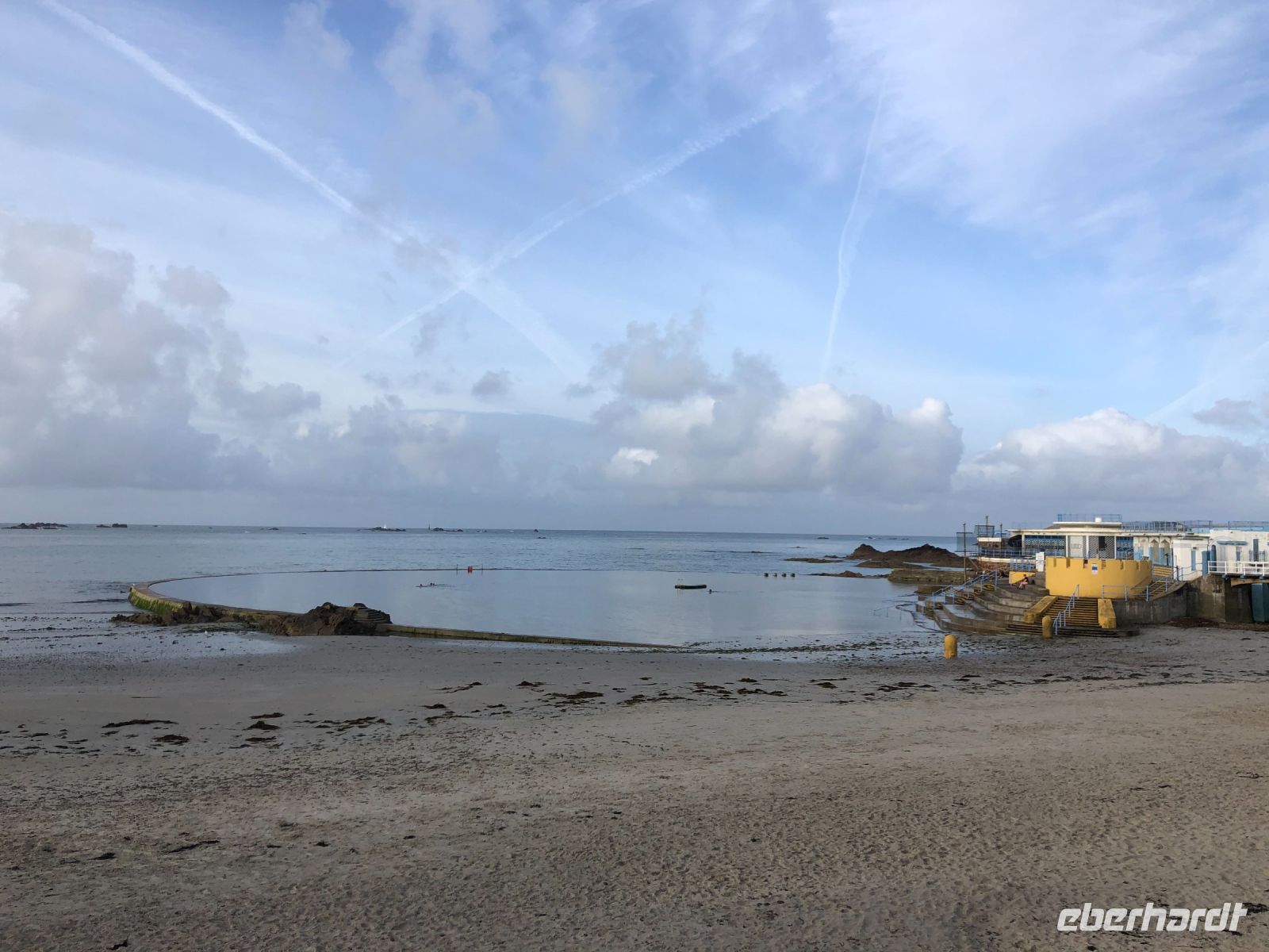 An Tag 3 unserer Kanalinsel Rundreise haben wir eine Wanderung zum Corbiere Leuchtturm mit dem Großteil der Gäste unternommen. Wir starteten unsere Wanderung an der St. Brelade Bay, liefen zunächst ein Stückchen an dem feinen weißen Sandstrand entlang und machten unseren ersten Stopp an der Fishermen‘s Chapel. Danach führte uns die Route etwas weiter in die Höhe hinauf. Der leicht anspruchsvolle Anstieg lohnte sich! Entlang unserer Route entdeckten wir eine Vielzahl bunt blühender Blumen, hatten eine großartige Sicht auf das strahlend blaue Meer und die tollen Sandbuchten der Südwestküste Jerseys. Um den ein oder anderen Fotostopp kamen wir auf unserer Wanderung also nicht herum. Gegen Mittag erreichten wir den Corbiere Leuchtturm und machten hier eine Mittagspause, um unsere Energiereserven wieder aufzutanken, bevor die Wanderung weiter nach St. Aubin ging. Wir folgten Ernst entlang der alten Eisenbahnstrecke und erreichten nach insgesamt 14 km dann endlich unser Ziel St. Aubin. Im Anschluss an die Tour trauten sich einzelne Reisende in den Gezeitenpool vor unserem Hotel. Diejenigen Gäste, die nicht an der Wanderung teilgenommen haben, gestalteten Ihren freien Tag ganz individuell. Am Abend trafen wir uns wieder zum köstlichen 3-Gang Menü im Hotel. Gegen 22.30 Uhr wurde allen dann ein ordentlicher Schrecken eingejagt, der Feueralarm ging an und tönte lautstark durch die Räumlichkeiten des Hotels. Alle mussten das Gebäude verlassen und trafen sich draußen auf dem Parkplatz- Zum Glück nur ein Fehlalarm. Danach konnten wir dann mehr oder weniger beruhigt schlafen gehen.
