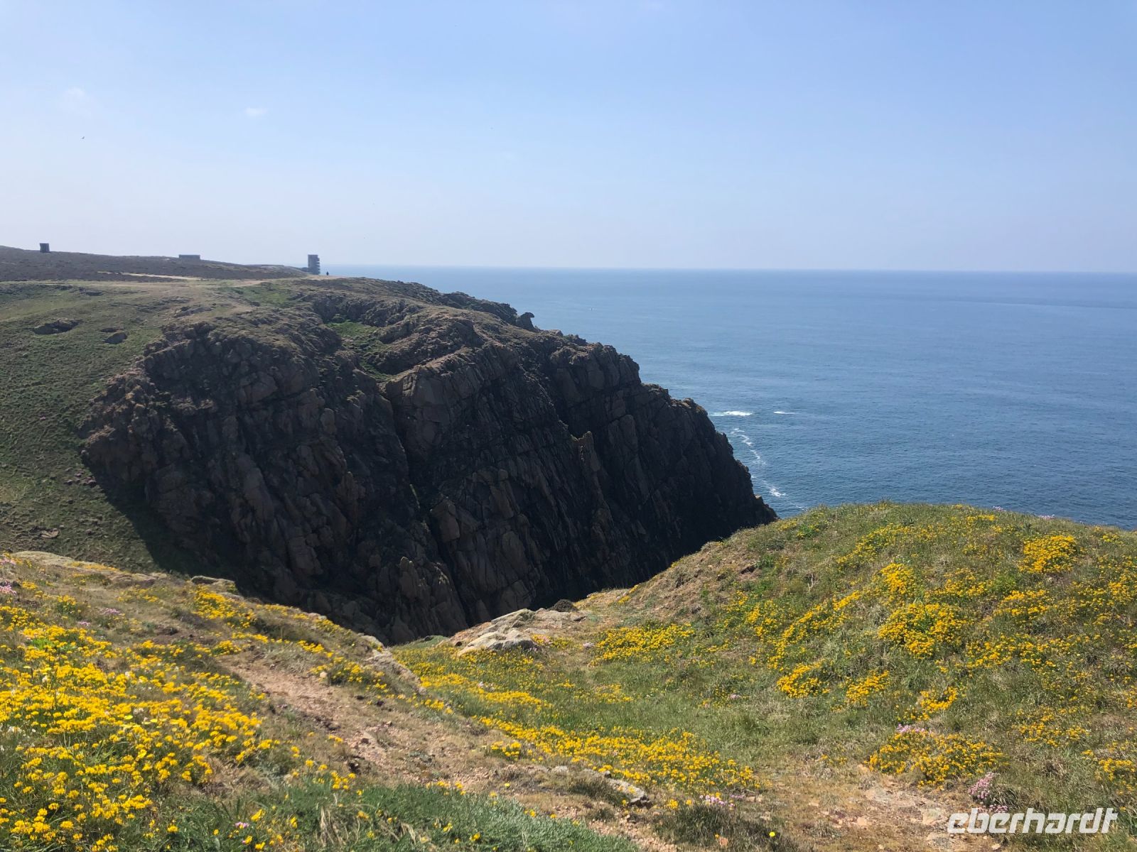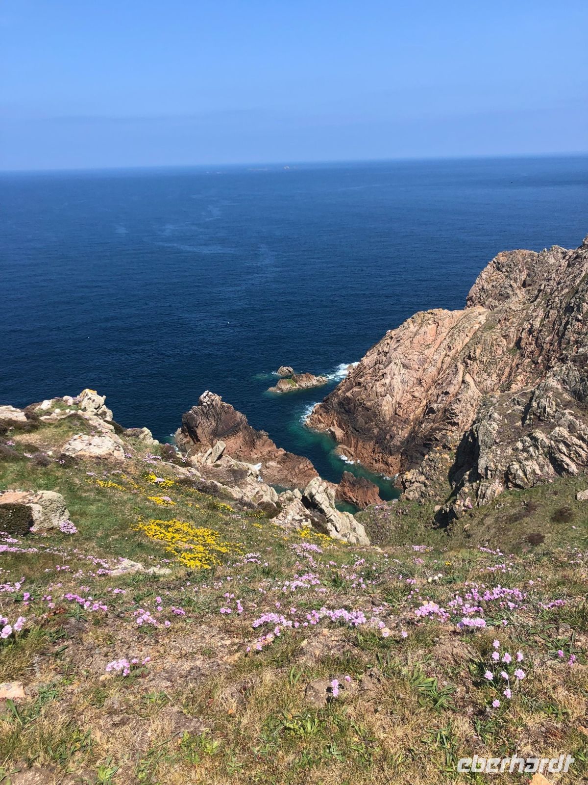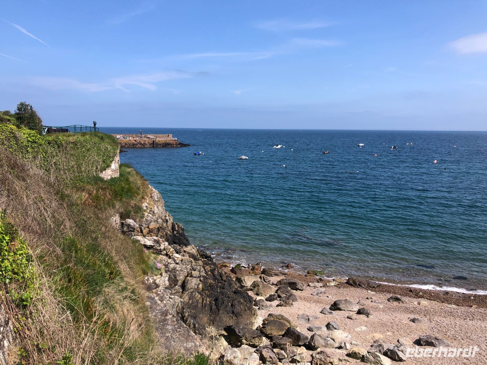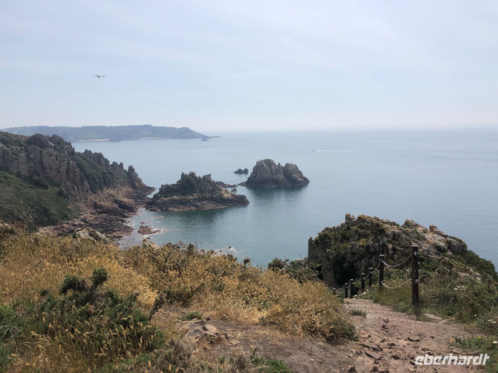 An Tag 3 unserer Kanalinsel Rundreise haben wir eine Wanderung zum Corbiere Leuchtturm mit dem Großteil der Gäste unternommen. Wir starteten unsere Wanderung an der St. Brelade Bay, liefen zunächst ein Stückchen an dem feinen weißen Sandstrand entlang und machten unseren ersten Stopp an der Fishermen‘s Chapel. Danach führte uns die Route etwas weiter in die Höhe hinauf. Der leicht anspruchsvolle Anstieg lohnte sich! Entlang unserer Route entdeckten wir eine Vielzahl bunt blühender Blumen, hatten eine großartige Sicht auf das strahlend blaue Meer und die tollen Sandbuchten der Südwestküste Jerseys. Um den ein oder anderen Fotostopp kamen wir auf unserer Wanderung also nicht herum. Gegen Mittag erreichten wir den Corbiere Leuchtturm und machten hier eine Mittagspause, um unsere Energiereserven wieder aufzutanken, bevor die Wanderung weiter nach St. Aubin ging. Wir folgten Ernst entlang der alten Eisenbahnstrecke und erreichten nach insgesamt 14 km dann endlich unser Ziel St. Aubin. Im Anschluss an die Tour trauten sich einzelne Reisende in den Gezeitenpool vor unserem Hotel. Diejenigen Gäste, die nicht an der Wanderung teilgenommen haben, gestalteten Ihren freien Tag ganz individuell. Am Abend trafen wir uns wieder zum köstlichen 3-Gang Menü im Hotel. Gegen 22.30 Uhr wurde allen dann ein ordentlicher Schrecken eingejagt, der Feueralarm ging an und tönte lautstark durch die Räumlichkeiten des Hotels. Alle mussten das Gebäude verlassen und trafen sich draußen auf dem Parkplatz- Zum Glück nur ein Fehlalarm. Danach konnten wir dann mehr oder weniger beruhigt schlafen gehen.