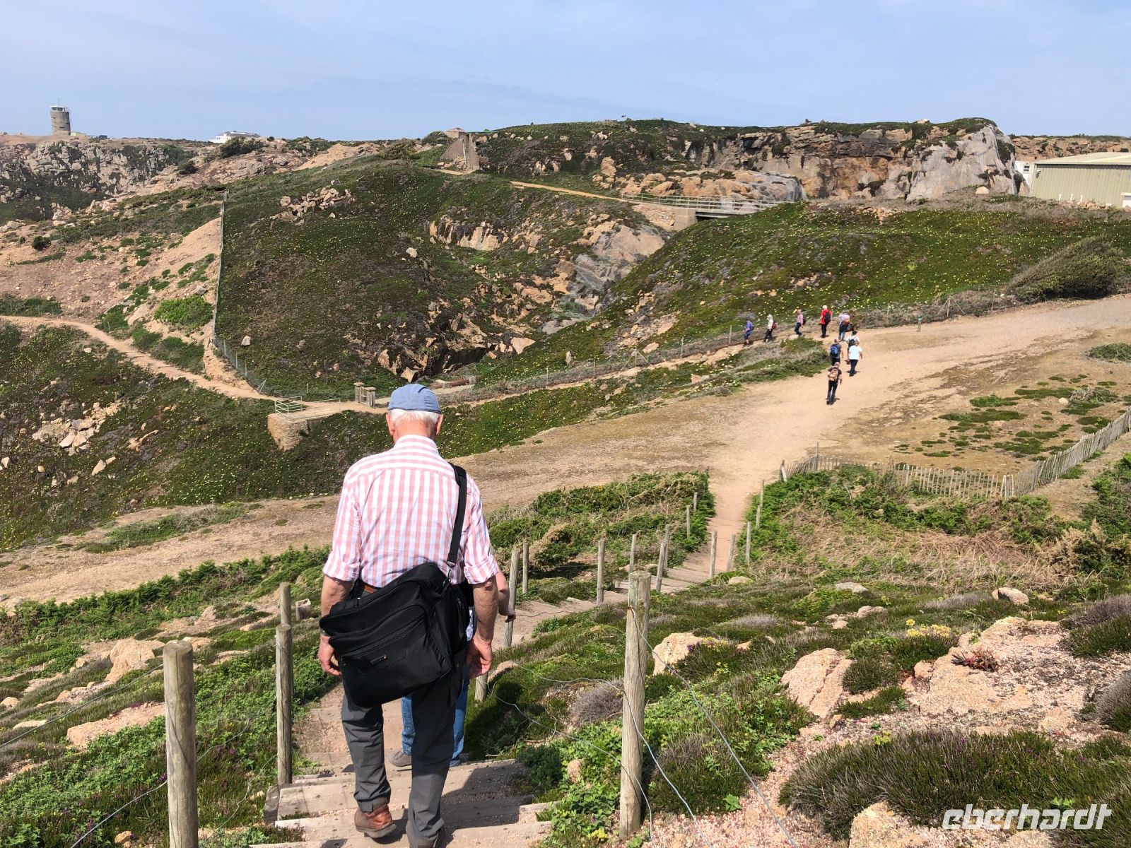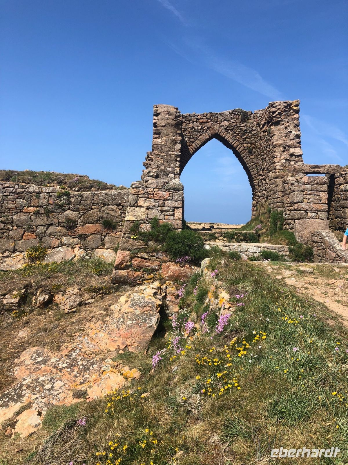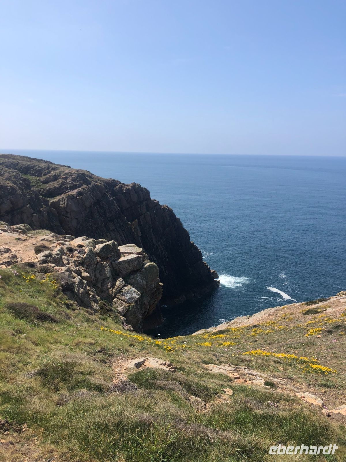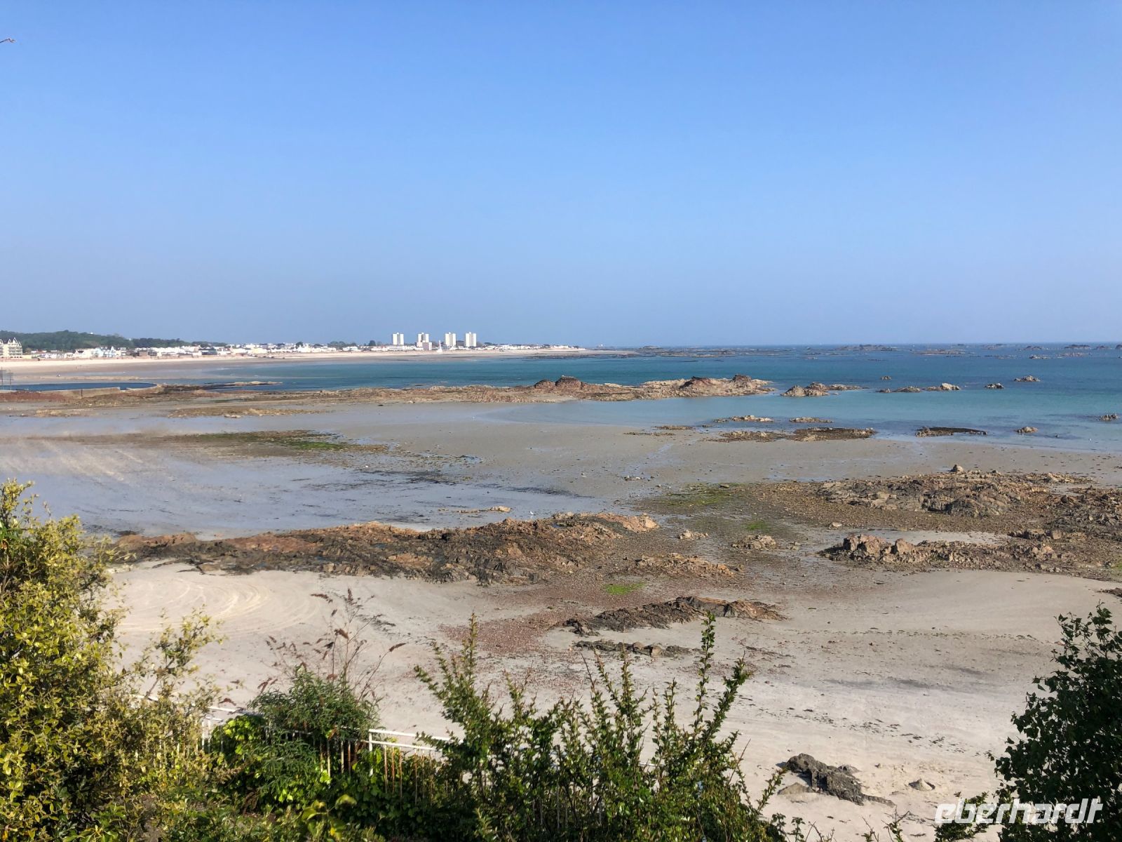 An Tag 3 unserer Kanalinsel Rundreise haben wir eine Wanderung zum Corbiere Leuchtturm mit dem Großteil der Gäste unternommen. Wir starteten unsere Wanderung an der St. Brelade Bay, liefen zunächst ein Stückchen an dem feinen weißen Sandstrand entlang und machten unseren ersten Stopp an der Fishermen‘s Chapel. Danach führte uns die Route etwas weiter in die Höhe hinauf. Der leicht anspruchsvolle Anstieg lohnte sich! Entlang unserer Route entdeckten wir eine Vielzahl bunt blühender Blumen, hatten eine großartige Sicht auf das strahlend blaue Meer und die tollen Sandbuchten der Südwestküste Jerseys. Um den ein oder anderen Fotostopp kamen wir auf unserer Wanderung also nicht herum. Gegen Mittag erreichten wir den Corbiere Leuchtturm und machten hier eine Mittagspause, um unsere Energiereserven wieder aufzutanken, bevor die Wanderung weiter nach St. Aubin ging. Wir folgten Ernst entlang der alten Eisenbahnstrecke und erreichten nach insgesamt 14 km dann endlich unser Ziel St. Aubin. Im Anschluss an die Tour trauten sich einzelne Reisende in den Gezeitenpool vor unserem Hotel. Diejenigen Gäste, die nicht an der Wanderung teilgenommen haben, gestalteten Ihren freien Tag ganz individuell. Am Abend trafen wir uns wieder zum köstlichen 3-Gang Menü im Hotel. Gegen 22.30 Uhr wurde allen dann ein ordentlicher Schrecken eingejagt, der Feueralarm ging an und tönte lautstark durch die Räumlichkeiten des Hotels. Alle mussten das Gebäude verlassen und trafen sich draußen auf dem Parkplatz- Zum Glück nur ein Fehlalarm. Danach konnten wir dann mehr oder weniger beruhigt schlafen gehen.