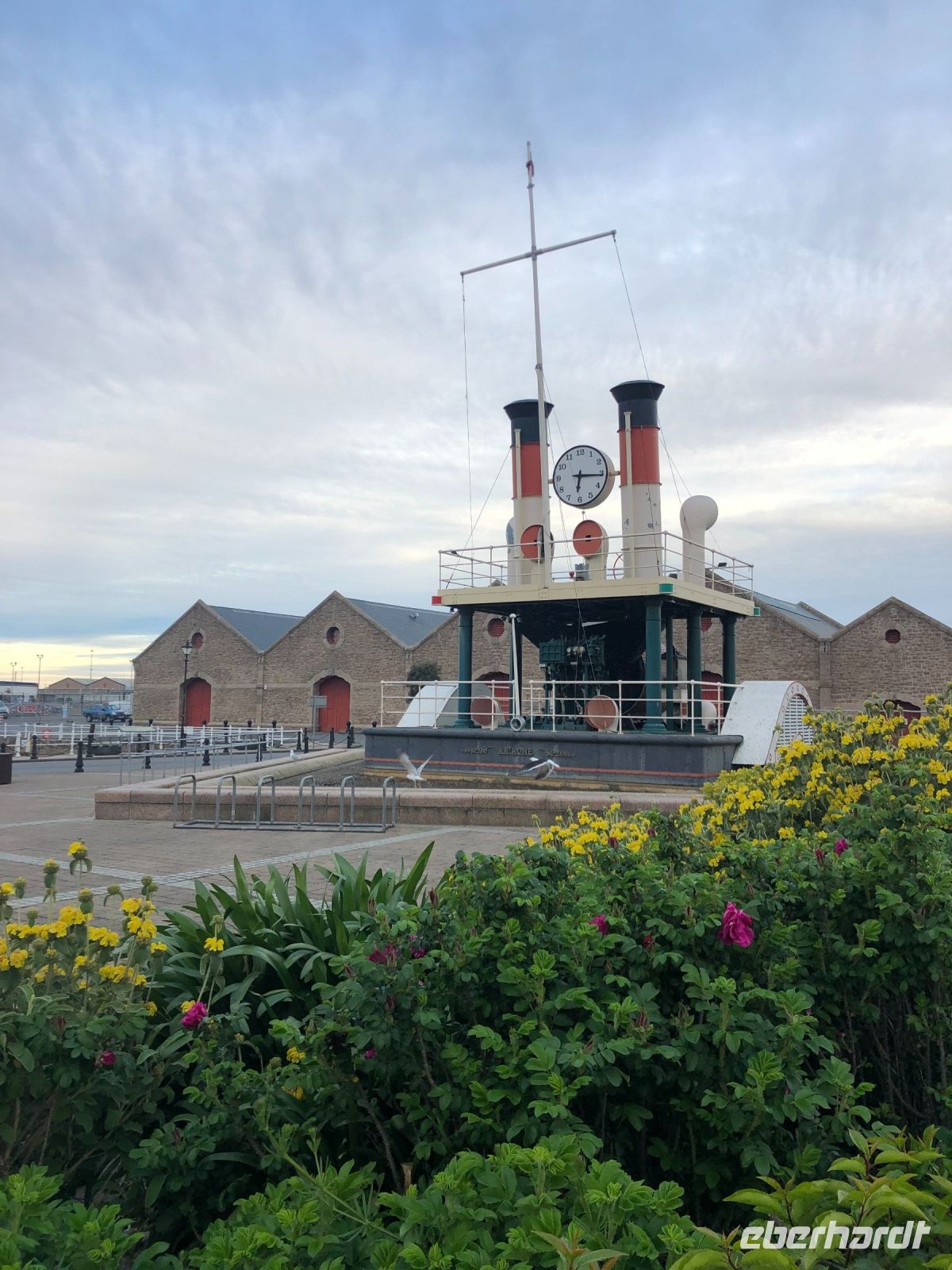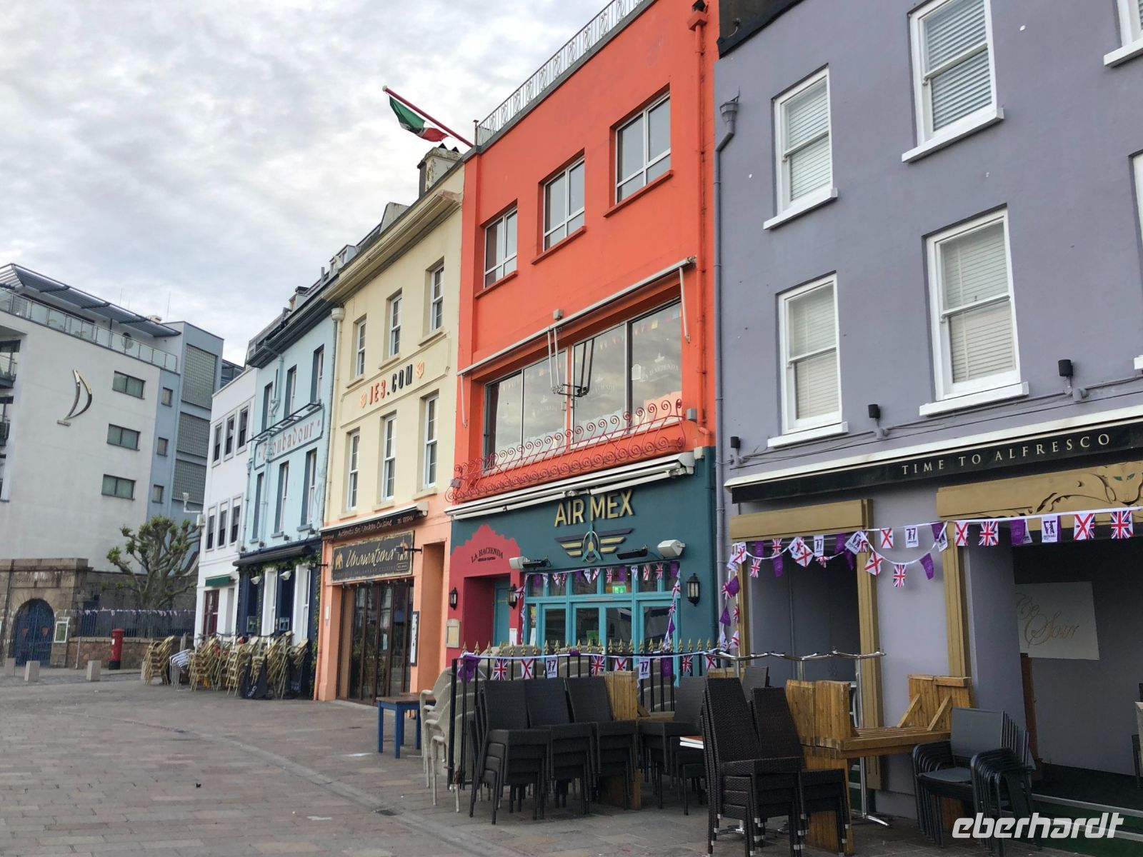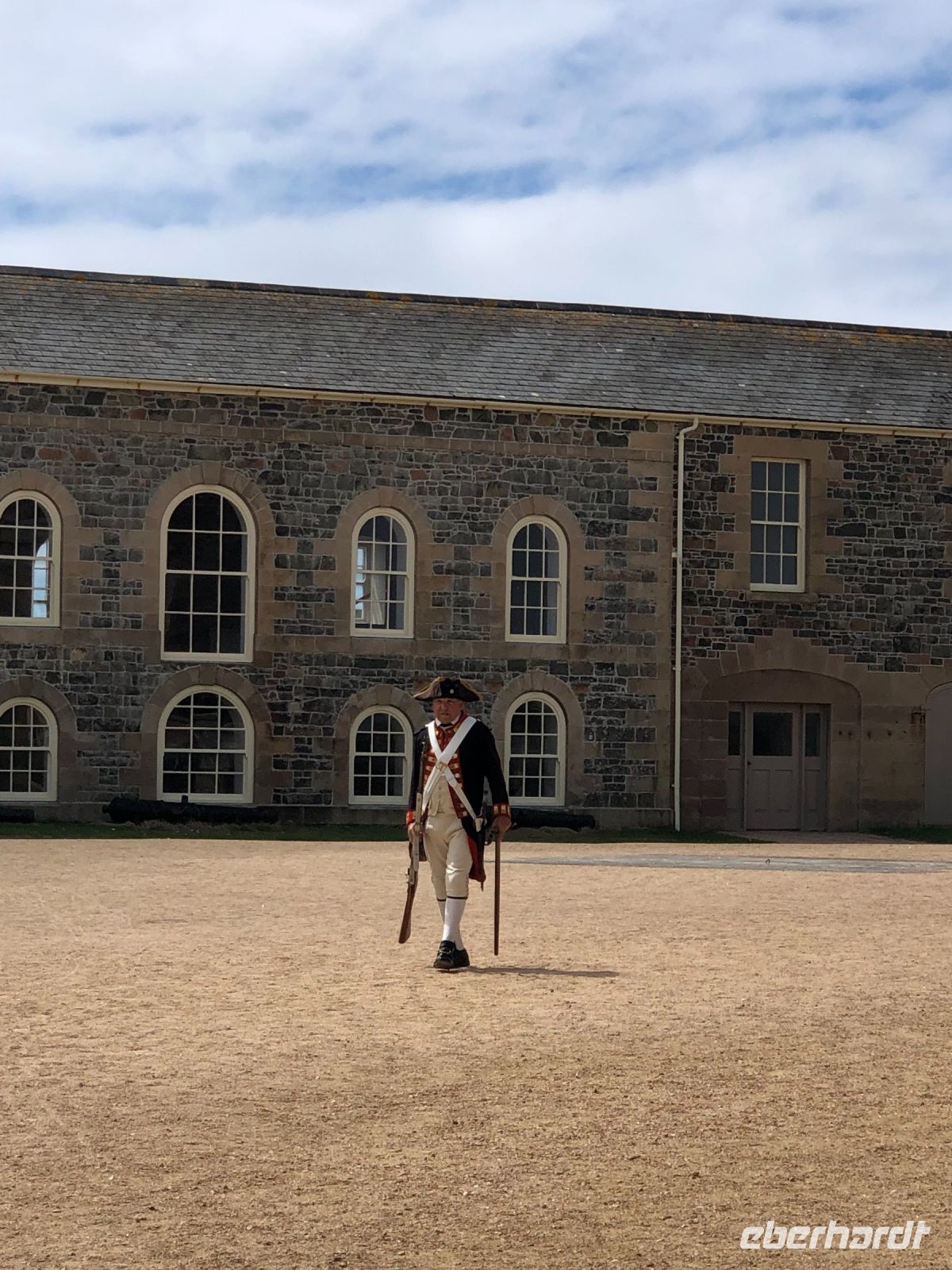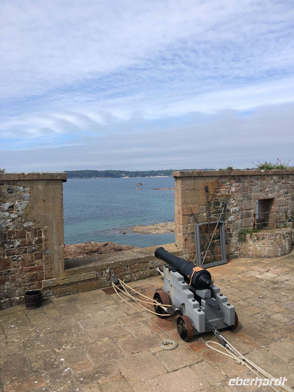 An unserem zweiten freien Tag besuchten wir mit dem Großteil der Gäste die Festung Elizabeth Castle, welche sich auf der vorgelagerten Gezeiteninsel Jerseys befindet. Der Weg dahin führte uns zunächst entlang der Küste und im Anschluss am Hafen vorbei. Ein sogenanntes Amphibienfahrzeug, also eine Kombination aus Schiff und Auto, beförderte uns auf die 24 Hektar große Festungsinsel. Alle Reisenden liefen selbstständig durch die Burganlage und entdeckten die vielen historischen Räumlichkeiten und Ausstellungen des Castles. Gegen Mittag fand eine Parade aus freiwilligen Teilnehmern auf dem großen Paradeplatz statt. Einer unserer Gäste nahm trotz fehlender Englischkenntnisse erfolgreich an der Parade teil und marschierte auf den davor liegenden Platz, wo abschließend ein lauter Böllerschuss aus einer zum Meer gerichteten Kanone gefeuert wurde. Das Amphibienfahrzeug fuhr uns auf dem Rückweg bei Flut zurück nach St. Helier. Von hier aus starteten wir unseren Spaziergang zu der viktorianischen Markthalle im Zentrum der Stadt. Neben dem Shoppen von Souvenirs, genehmigten sich einige Reisenden auch einen kleinen Snack an einem der zahlreichen kulinarischen Stände. Ein typisches Souvenir ist hier auf Jersey vor allem die sogenannte Black Butter, diese hat mit der herkömmlichen Butter allerdings nicht viel zutun, sondern ist viel mehr ein Aufstrich aus Äpfeln, Cider und Gewürzen. Der andere Teil der Gruppe genoss einen weiteren Tag, der Ihnen zur freien Verfügung stand und unternahm zum Beispiel Erkundungen per Inselbus oder Spaziergänge entlang der weitläufigen Sandbuchten. Am Abend saßen wir noch mit einigen Reisenden im White Horse Pub um die Ecke zusammen und haben uns bei ein paar Getränken noch etwas unterhalten und besser kennengelernt.