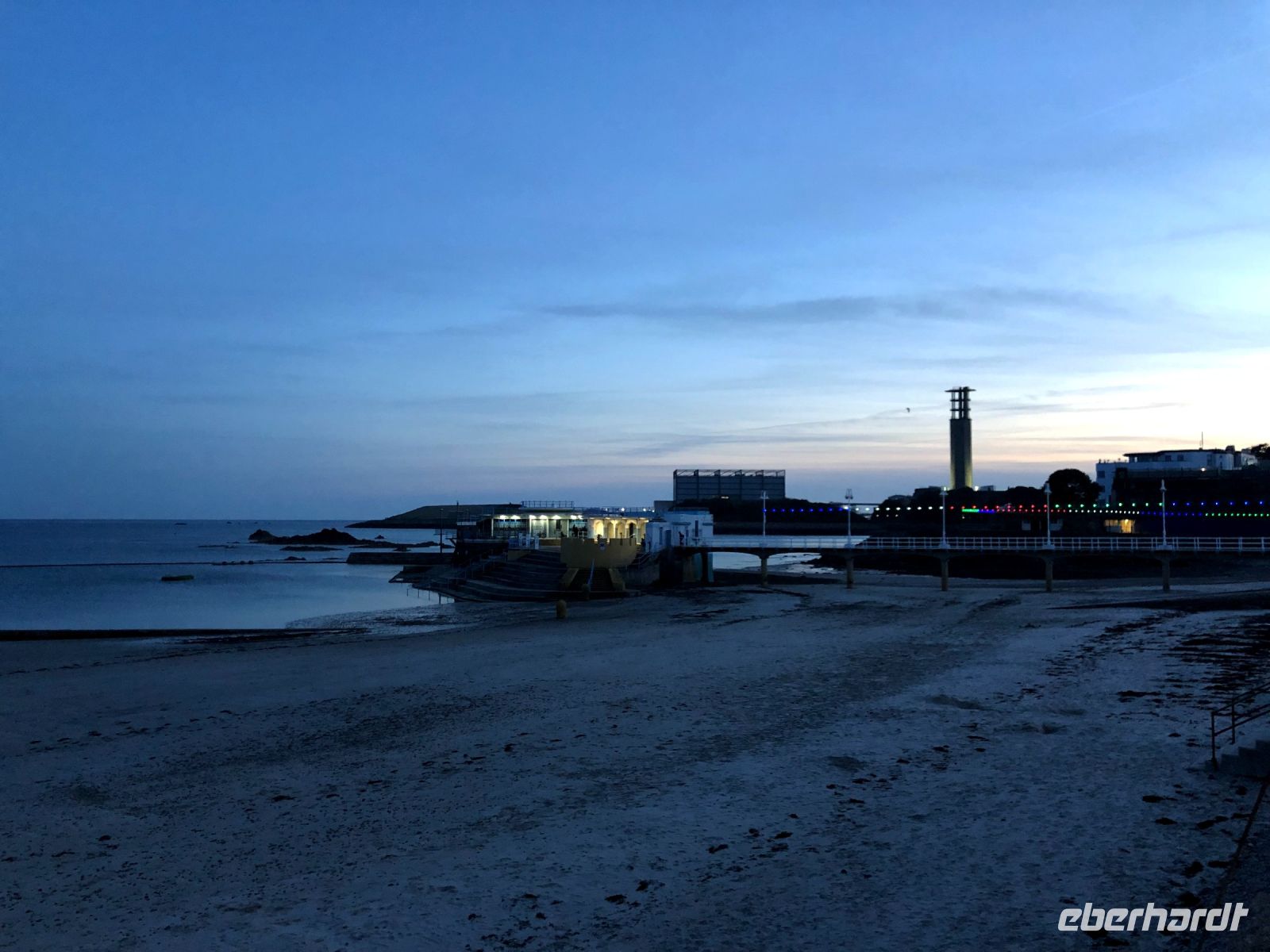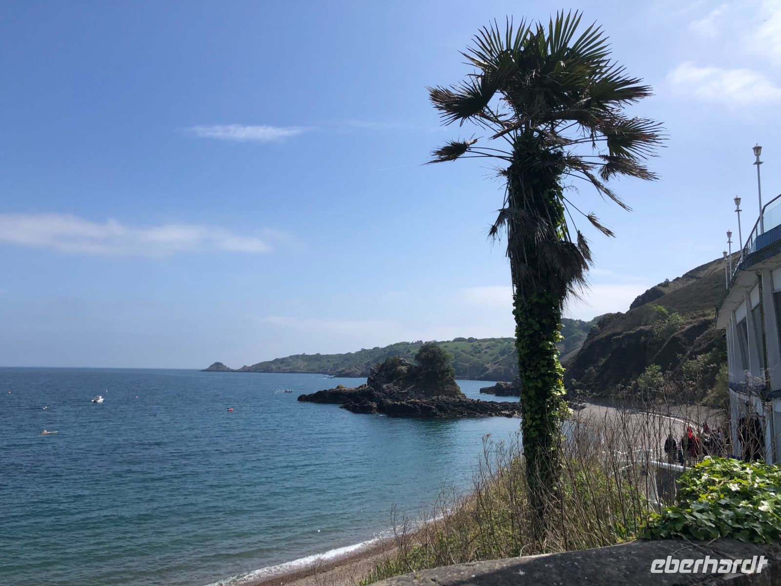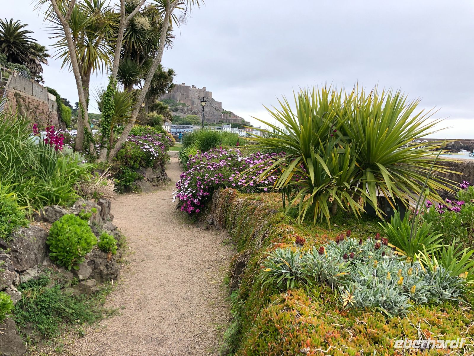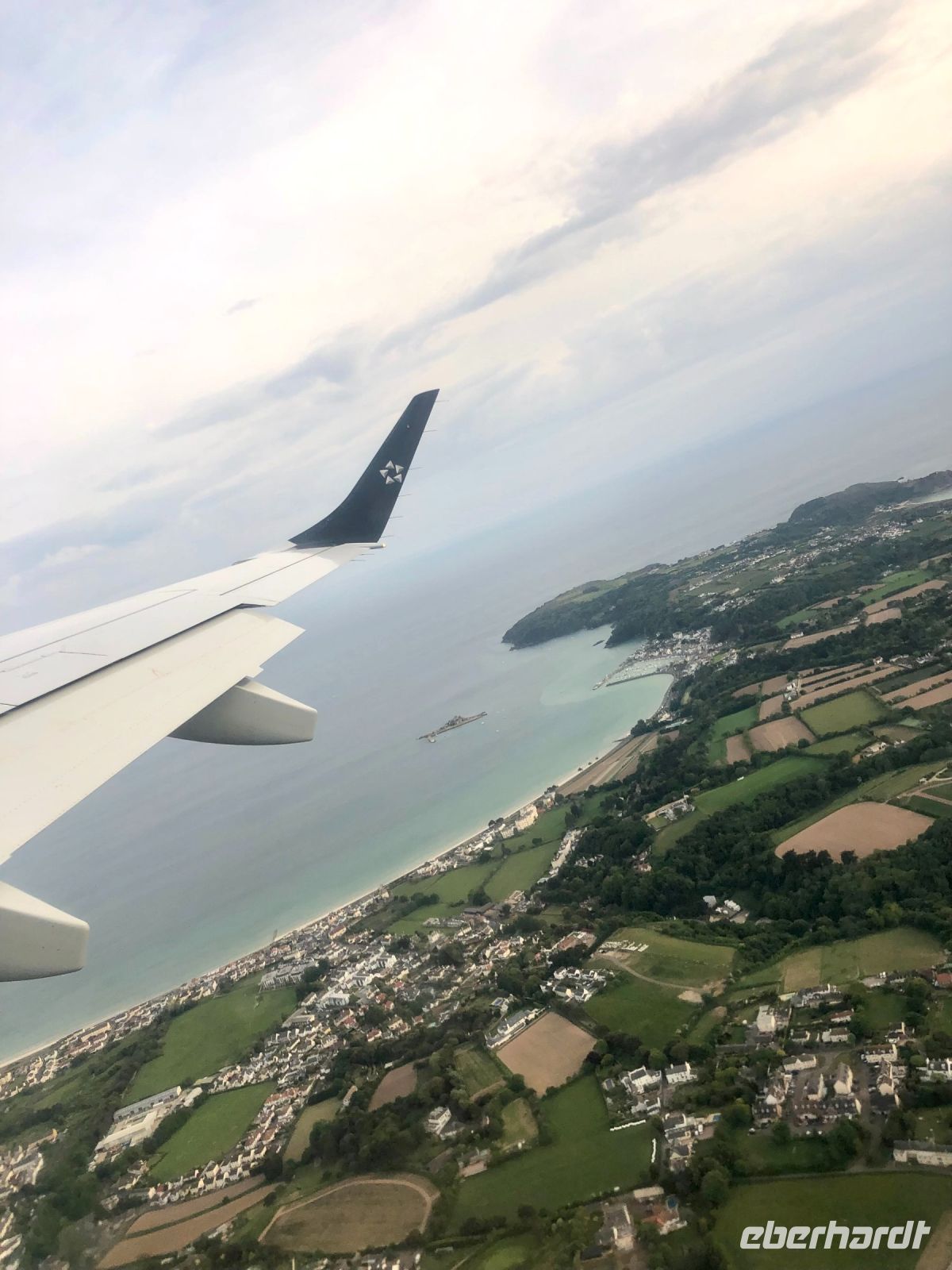 Unser Tag startete heute bereits um 08.00 Uhr. Nach dem Check-In am Fährterminal in St. Helier, betraten wir die große Condor Fähre nach Guernsey. Nach einer schaukeligen Fahrt erreichten wir dann den Hafen der zweitgrößten Kanalinsel und wurden schon von unserem örtlichen Busfahrer in Empfang genommen. Auf dem Weg nach hinauf entstand eine herrliche Kulisse mit den Kanalinseln Sark, Herm & Jethou im Hintergrund und der Burg Castle Cornet im Vordergrund. Stopp Nr. 1 der Inselrundfahrt machten wir bei der wohl kleinste Kirche der Welt, der Little Chapel- Eine von innen & außen mit Muscheln und bemalten Porzellanscherben verkleidete Kirche in Miniaturform. Nächster Halt war am Fort Grey- Ein Matelloturm, der wegen seiner Form auch Tasse und Unterasse genannt wird. Gegenüber machten wir eine kleine Kaffeepause mit Blick auf den Turm. Entlang der vielen kleinen Granithäusern mit gepflegten und blühenden Gärten im Landesinneren, erreichten wir dann Pleinmont und machten einen Spaziergang an den bunt blühenden Steilküsten. Hier trafen wir auf den sogenannten Pleinmont Observation Tower, ein fünfstöckiger Turm, welcher der deutschen Marine zwischen 1942 und 1945 als Beobachtungsturm zur Seeverteidigung diente. Wir fuhren weiter an den verschiedenen Sandstränden der Westküste vorbei und konnten einige Wellenreiter und Strandspaziergänger beobachten. Unser Busfahrer fuhr diesmal eine andere Route und zeigte uns den Guernsey Zoo. Allerdings handelt es sich hierbei nicht um einen echten Zoo, sondern um Felsformationen, die mit viel Vorstellungskraft wie Tiere aussehen. Die Rundfahrt endete in der Inselhauptstadt St. Peters Port, wo wir noch Zeit zum Bummeln durch die gemütliche Einkaufsstraße und zum Spazieren entlang der Hafenstraße hatten. Gerade als es anfing zu regnen erreichten wir glücklicherweise das Fährterminal zurück nach Jersey- Was ein Timing! In Jersey angekommen, hatte es bereits aufgehört zu regnen, so dass wir unser Hotel am Nachmittag wieder trocken erreichten.