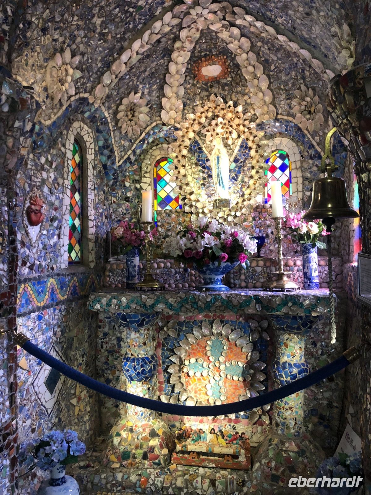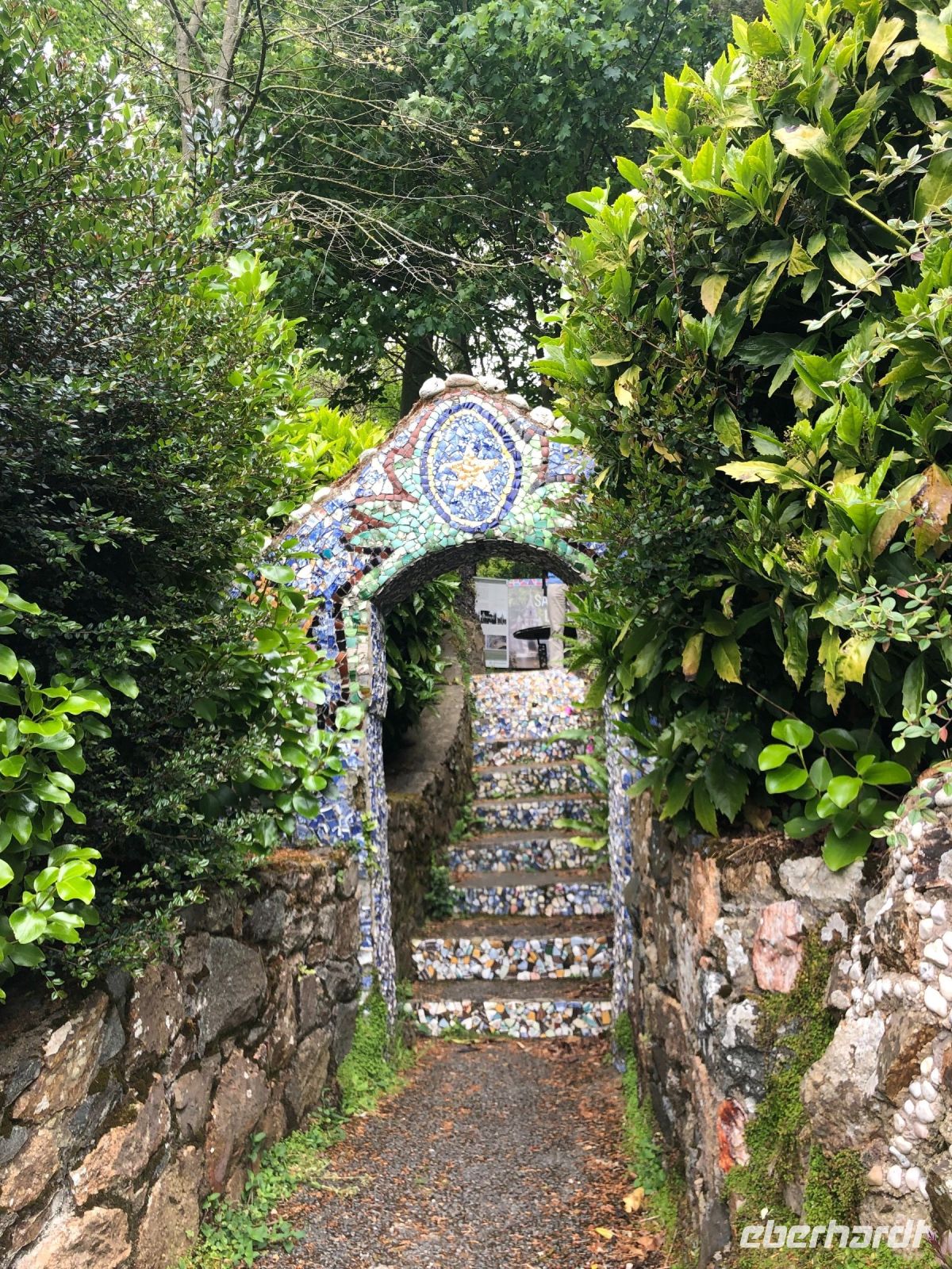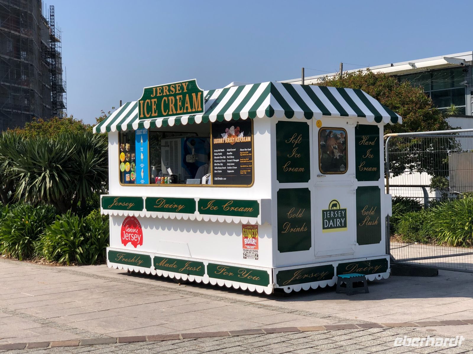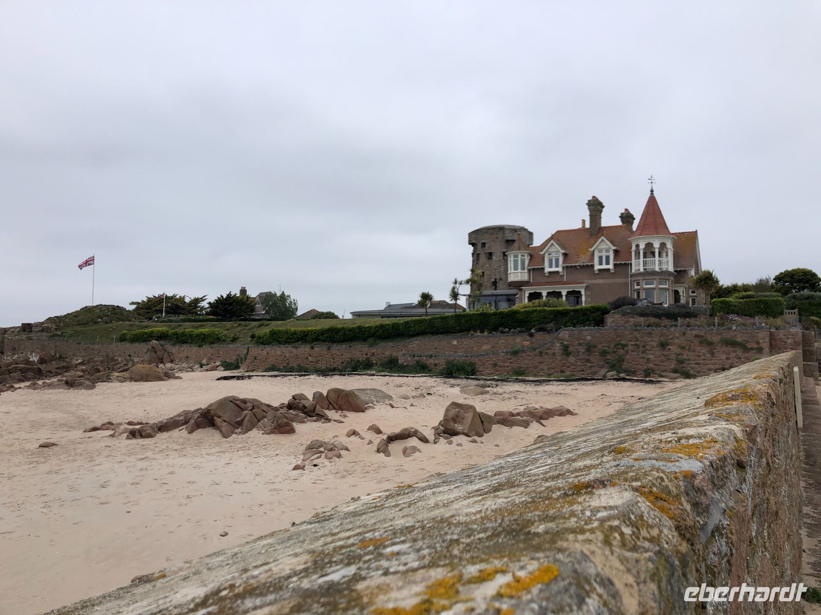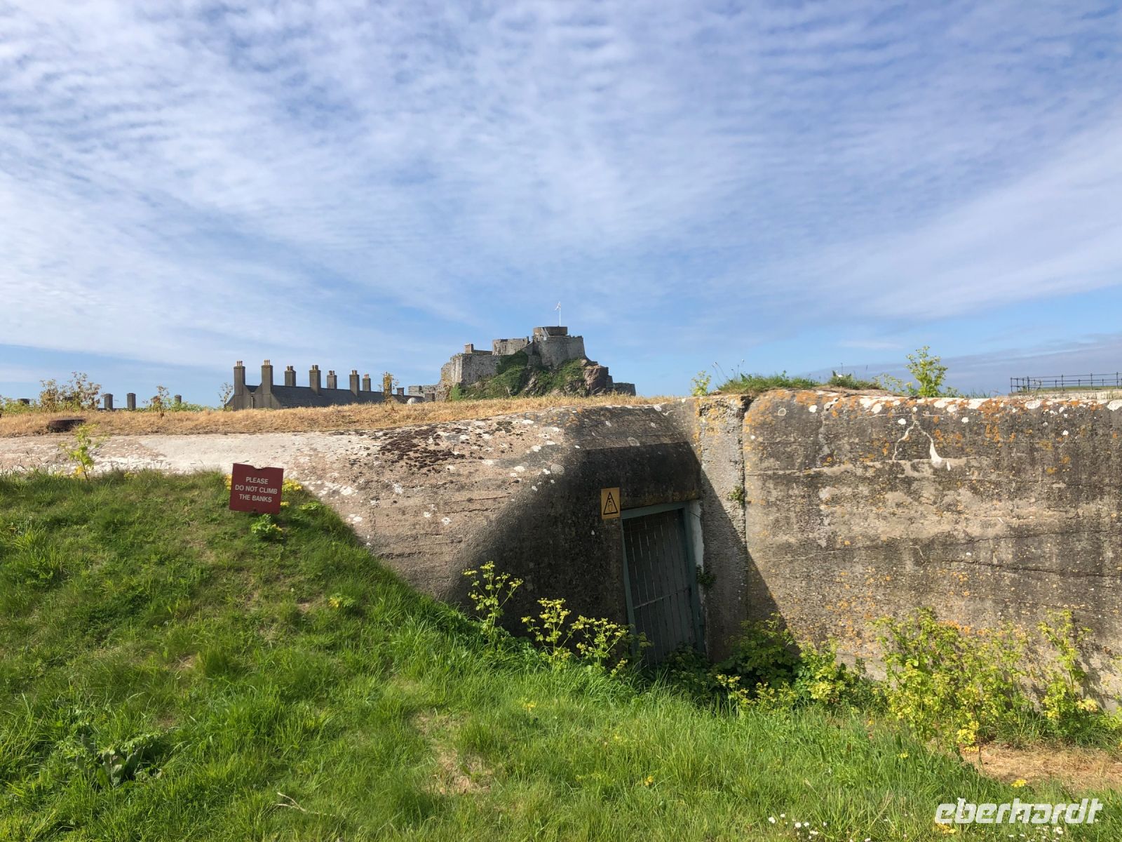 Unser Tag startete heute bereits um 08.00 Uhr. Nach dem Check-In am Fährterminal in St. Helier, betraten wir die große Condor Fähre nach Guernsey. Nach einer schaukeligen Fahrt erreichten wir dann den Hafen der zweitgrößten Kanalinsel und wurden schon von unserem örtlichen Busfahrer in Empfang genommen. Auf dem Weg nach hinauf entstand eine herrliche Kulisse mit den Kanalinseln Sark, Herm & Jethou im Hintergrund und der Burg Castle Cornet im Vordergrund. Stopp Nr. 1 der Inselrundfahrt machten wir bei der wohl kleinste Kirche der Welt, der Little Chapel- Eine von innen & außen mit Muscheln und bemalten Porzellanscherben verkleidete Kirche in Miniaturform. Nächster Halt war am Fort Grey- Ein Matelloturm, der wegen seiner Form auch Tasse und Unterasse genannt wird. Gegenüber machten wir eine kleine Kaffeepause mit Blick auf den Turm. Entlang der vielen kleinen Granithäusern mit gepflegten und blühenden Gärten im Landesinneren, erreichten wir dann Pleinmont und machten einen Spaziergang an den bunt blühenden Steilküsten. Hier trafen wir auf den sogenannten Pleinmont Observation Tower, ein fünfstöckiger Turm, welcher der deutschen Marine zwischen 1942 und 1945 als Beobachtungsturm zur Seeverteidigung diente. Wir fuhren weiter an den verschiedenen Sandstränden der Westküste vorbei und konnten einige Wellenreiter und Strandspaziergänger beobachten. Unser Busfahrer fuhr diesmal eine andere Route und zeigte uns den Guernsey Zoo. Allerdings handelt es sich hierbei nicht um einen echten Zoo, sondern um Felsformationen, die mit viel Vorstellungskraft wie Tiere aussehen. Die Rundfahrt endete in der Inselhauptstadt St. Peters Port, wo wir noch Zeit zum Bummeln durch die gemütliche Einkaufsstraße und zum Spazieren entlang der Hafenstraße hatten. Gerade als es anfing zu regnen erreichten wir glücklicherweise das Fährterminal zurück nach Jersey- Was ein Timing! In Jersey angekommen, hatte es bereits aufgehört zu regnen, so dass wir unser Hotel am Nachmittag wieder trocken erreichten.
