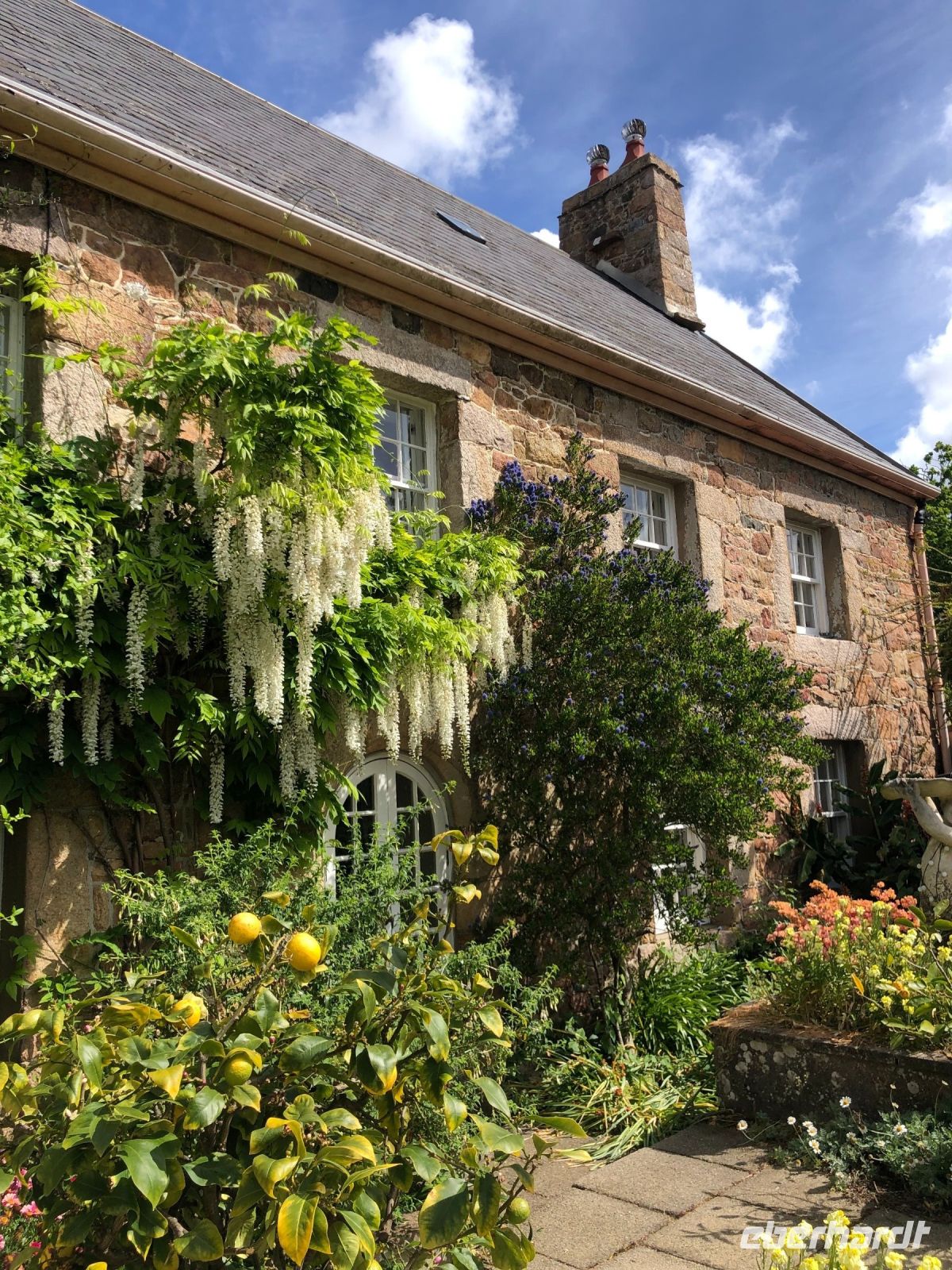 Der heutige Tag stand ganz unter dem Motto „Flower-Power“. Wir besuchten zunächst einen privaten Garten im Landesinneren der Insel. Unser Bus fuhr eine unauffällige Auffahrt hinauf, hinter der sich ein schönes Bauernhaus aus Granit und einer unglaublichen Parkanlage drum herum befand. Die Besitzerin des Gartens führte uns über das vielfältige, bunt blühende und idyllische Grundstück. Um uns herum flitzten ihre beiden Hunde, die ganz aufgeregt über unseren Besuch waren. Der nächste Privatgarten den wir besuchten ist schon seit dem Jahr 1921 im Familienbesitz der Familie Miles. Von der Straße aus, wie auch schon beim Haus davor, wirkte die Auffahrt zum Grundstück sehr unscheinbar. Aber hinter den Mauern eröffnete sich erneut eine riesige Parkanlage, die sich im Stil allerdings noch mal sehr stark vom vorigen Garten unterschied. Mr. Miles führte uns durch seinen exotischen Garten, um das edle Anwesen herum und teilte dabei viele Informationen über die verschiedenen Pflanzen- und Blumenarten sowie über die Geschichte des Gartens. Beeindruckt von den Impressionen des heutigen Tages, kehrten wir im Anschluss an die Besichtigungen für eine Mittagspause im urigen Pub, Old Portelet Inn, an der Steilküste der Portelet Bay ein. Als nächstes stand der Besuch der Eric Young Orchid Foundation auf dem Plan. Hier bestaunten wir ca. 30 Minuten lang die zahlreichen Orchideenarten mit verschiedensten Mustern und Farben. Am Nachmittag gab es eine kleine Überraschung für die Gäste, einen klassischen Cream Tea mit warmen Scones, auf der Sonnenterrasse des Chateau la Chaire. Mit schönen Erinnerungen an den Flower-Power Tag ging es dann wieder zurück ins Hotel. Am Abend trafen wir wieder zusammen und verbrachten ein schönes Abendessen im nahegelegenen Square Pub.