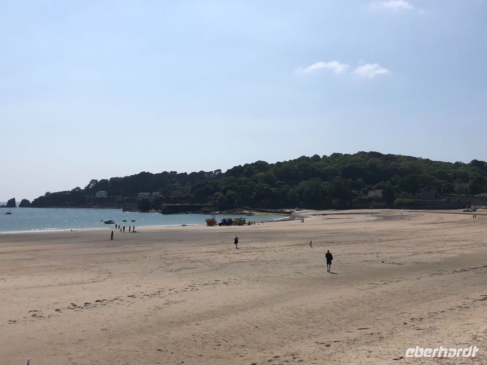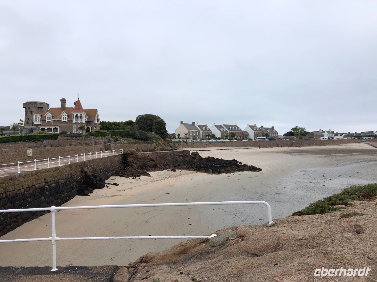 Nach einem typisch britischen Frühstücksbuffet trafen wir uns vor dem Hotel und warteten auf Heidi und Ernst, die uns mit dem kleinen Reisebus schon bei bester Laune für die anstehende Inselrundfahrt abholten. Das Wetter am Morgen hätte etwas besser sein können- Es war zunächst relativ frisch und windig. Wir machten unseren ersten Halt in La Rocque und schlenderten entlang der Hafenmole mit Blick auf die zahlreichen Felsformationen und den Rocque Turm, den man bei Ebbe sogar problemlos zu Fuß erreichen kann. Vorbei an den kleinen britischen Häuschen, die unterschiedlicher nicht sein können, fuhren wir weiter bis nach Gorey, eine kleinen Hafenstadt im Osten der Insel. Entlang der Küstenpromenade spazierten wir an verschiedensten Pflanzenarten und strahlenden Blumen in Richtung Gorey Castle vorbei. Im Anschluss zeigten Heidi und Ernst uns die beliebte Catherines Bay. An der schönen Bucht begegneten wir einem alten Bekannten unseres Reiseleiters Ernst. Er bemalte Muscheln und verkaufte diese für einen wohltätigen Zweck. Weiter in Richtung Norden fuhren wir durch die schmalen und kurvigen Straßen des Landesinneren, den es normalen Reisebussen nicht gestattet ist entlangzufahren- Unserem Kleinbus schon. Mittlerweile war auch die Sonne rausgekommen und versorgte uns den restlichen Tag mit perfektem Wetter, so dass sich einige Gäste sogar trotz Sonnencreme einen kleinen Sonnenbrand holten. Im Norden angekommen kehrten wir für eine Mittagspause im Pub Les Fontaines Tavern ein. Hier gab es für unsere hungrigen Gäste unter anderem das traditionelle Gericht Fish & Chips, leckere Shrimps oder saftige Steaks. Nachdem wir die Les Landes Pferderennbahn passierten, erwartete uns am nordwestlichsten Punkt der Insel bereits eine spektakuläre Aussicht auf die blühenden Steilküsten und die Burgruine Grosnez Castle. Wir hatten bereits mehr als die Hälfte der Rundfahrt hinter uns und fuhren an der Westküste entlang der weitläufigen Sandbucht, der St. Ouens Bay, wieder Richtung Süden. Am weißen Corbiere Leuchtturm machten wir den nächsten und damit vorletzten Zwischenstopp unserer Inselrundfahrt. Bei Ebbe kann man den kleinen Leuchtturm auch zu Fuß erreichen, was einige der Gäste im Laufe der Woche noch geplant hatten. Etwas später erreichten wir den beliebtesten Strand an der St. Brelades Bay, in der gleichnamigen Gemeinde St. Brelade, die zur wohlhabendsten Gegend der Insel zählt. Am Strand gingen einige von uns mit den Füßen in das noch frische Meerwasser, andere genossen die Sonne bei einem Spaziergang oder sammelten Muscheln. Vom Strand aus hatte man Blick auf die zahlreichen modernen Wohnkomplexe an den Küsten der Bucht. Durch das kleine Örtchen St. Aubin fuhren wir wieder zurück nach St. Helier. Einige Gäste stiegen zum Bummeln bereits am zentralen Liberation Square aus und der andere Teil der Gruppe wurde zurück ins Hotel gebracht.