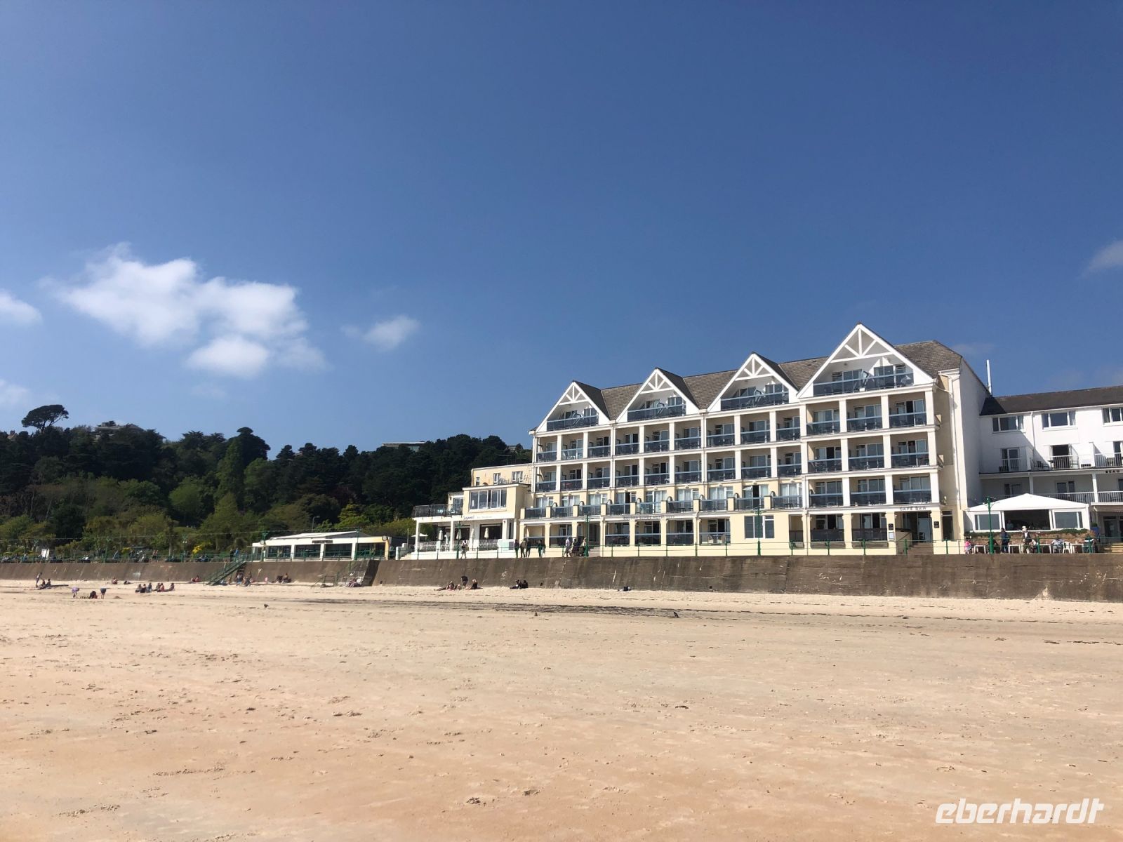 Für die meisten unserer Reisenden startete der Tag bereits in den frühen Morgenstunden. Von insgesamt vier verschiedenen Flughäfen deutschlandweit, sind unsere Gäste nach München angereist. Von hier aus ging die Reise dann mit der vollständigen Gruppe weiter auf die wunderschöne Insel Jersey. Nach einer langen Anreise und zusätzlichen Verspätung unseres Fluges landeten wir gegen 17.30 Uhr und wurden dort herzlich von unseren örtlichen Reiseleitern Ernst & Heidi in Empfang genommen und zum Hotel gebracht. Die Sonne schien, alles um uns herum blühte und strahlte in einem saftigen grün. Wir wurden im Hotel bereits von dem netten und hilfsbereiten Hotelpersonal erwartet und bezogen die gemütlichen Zimmer mit typisch britischem Flair. Aufgrund unserer Verspätung verschob sich der Zeitplan etwas nach hinten, so dass wir uns nur noch kurz frisch machten und uns dann auch schon wieder in dem großzügigen Speisesaal des Hotels zum Abendessen trafen. Alle waren müde und erschöpft von dem langen und anstrengenden Anreisetag, so dass sich einige Gäste bereits nach dem Abendessen auf Ihre Zimmer begeben hatten. Andere von uns erkundeten noch ein wenig die Umgebung, bevor es ins Bett ging.