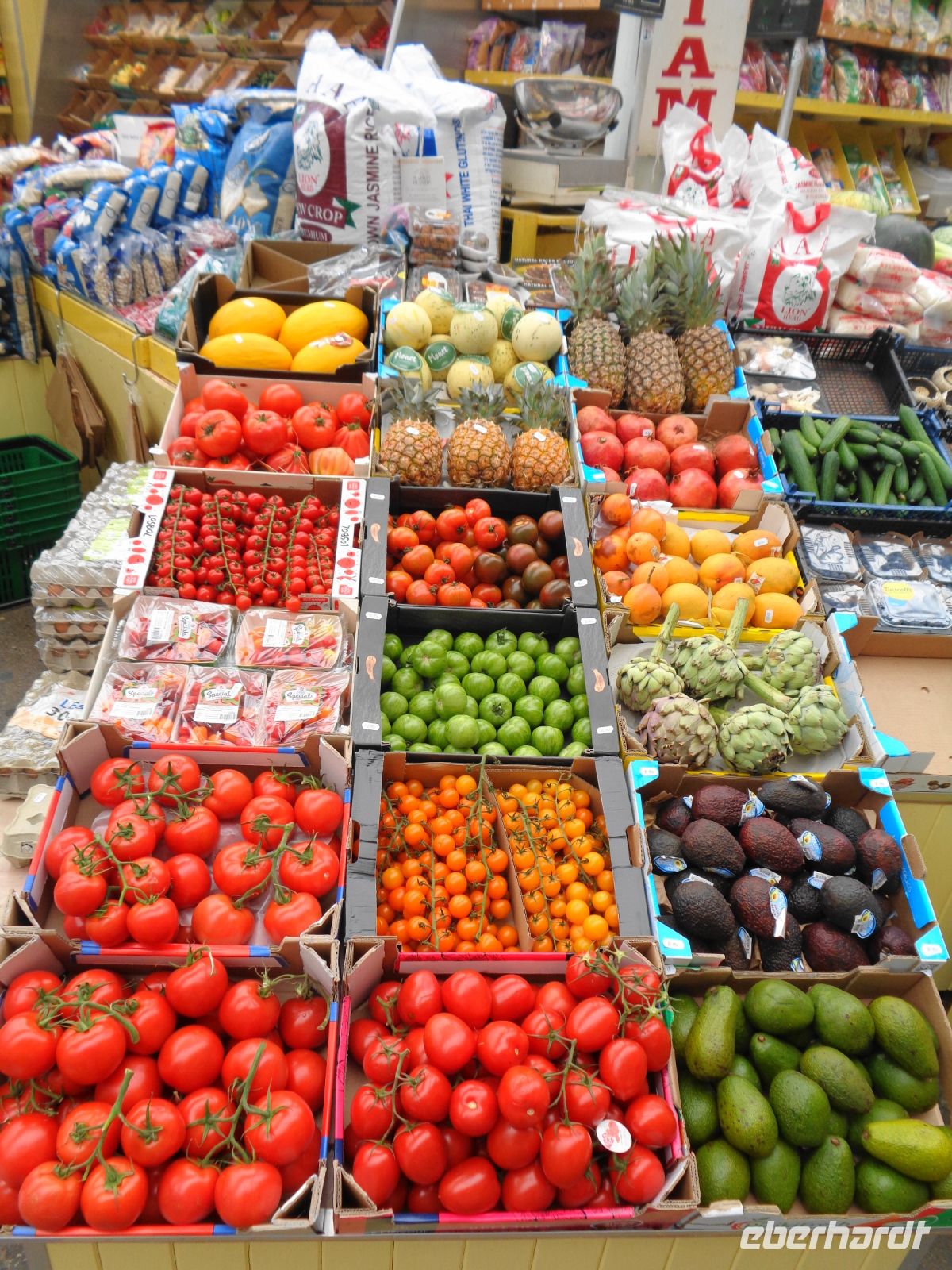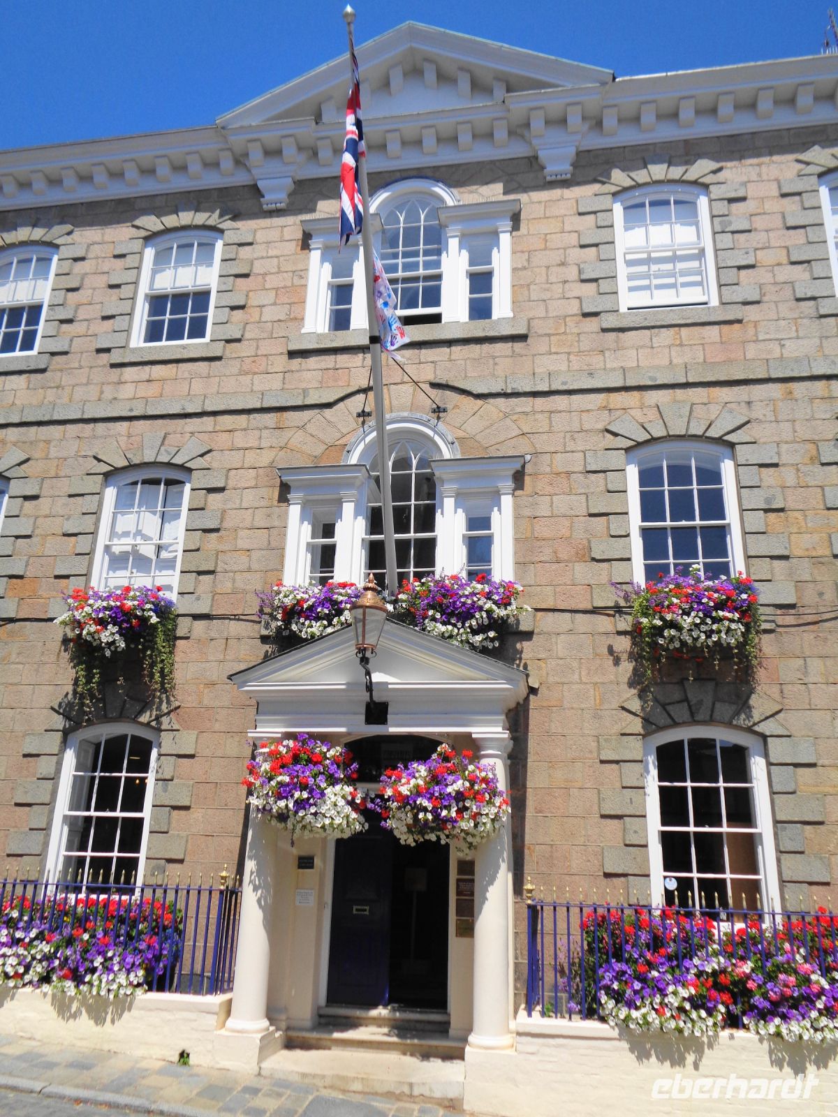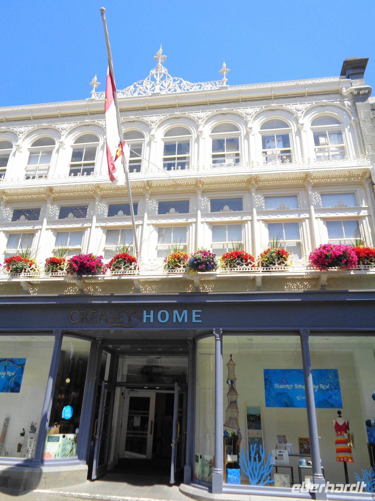 Entlang der schönen viktorianischen Häuserzeilen in Havre des Pas gelangt man über die Anhöhe ins Stadtzentrum. Hier empfiehlt sich natürlich ein Besuch der Markthalle mit ihren bunten Obst-, Gemüse- und Blumenständen. Im kleinen, aber feinen Fischmarkt kann man die fangfrischen Seefische und Meeresfrüchte bewundern, die wir in so exzellenter Weise im Hotel serviert bekommen sollten. Durch die geschäftige Fußgängerzone mit ihren einladenden Cafés und Ladengeschäften gelangt man zum historisch bedeutenden Royal Square und zur gotischen Parish Church, die einst direkt am Meer gelegen war.